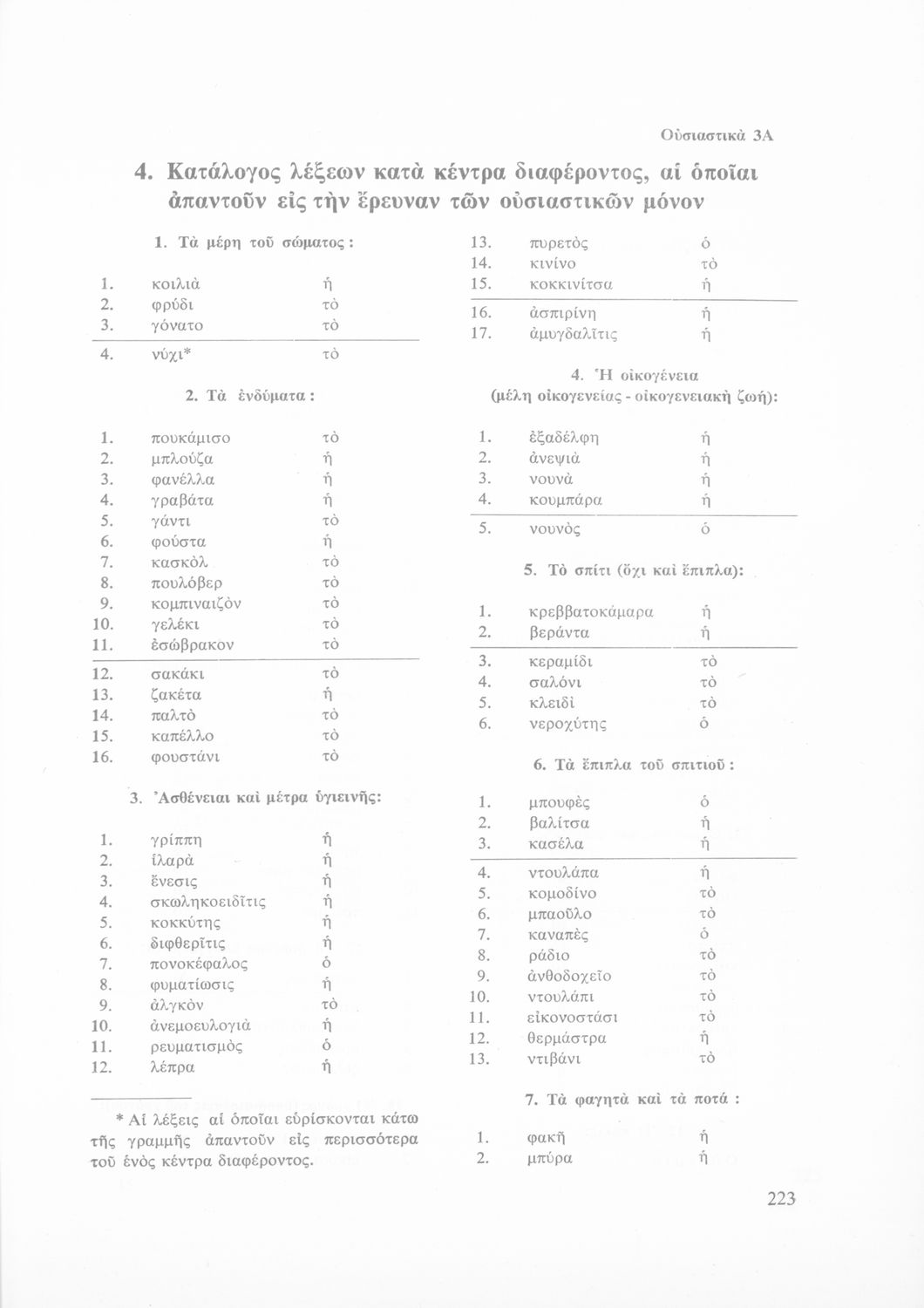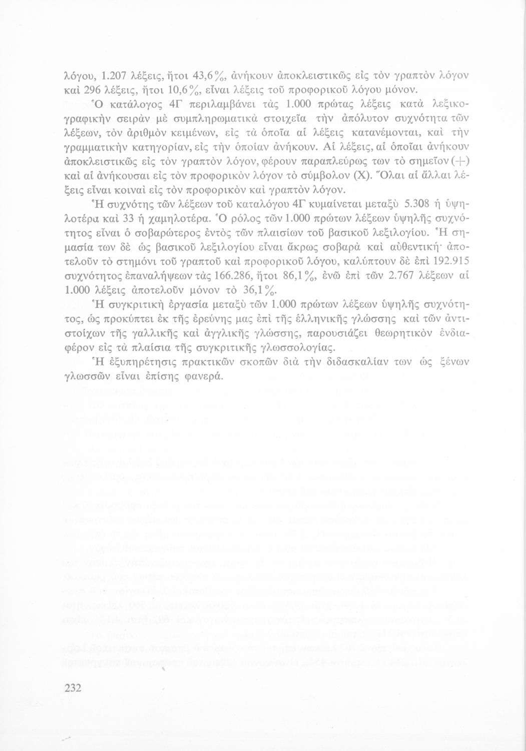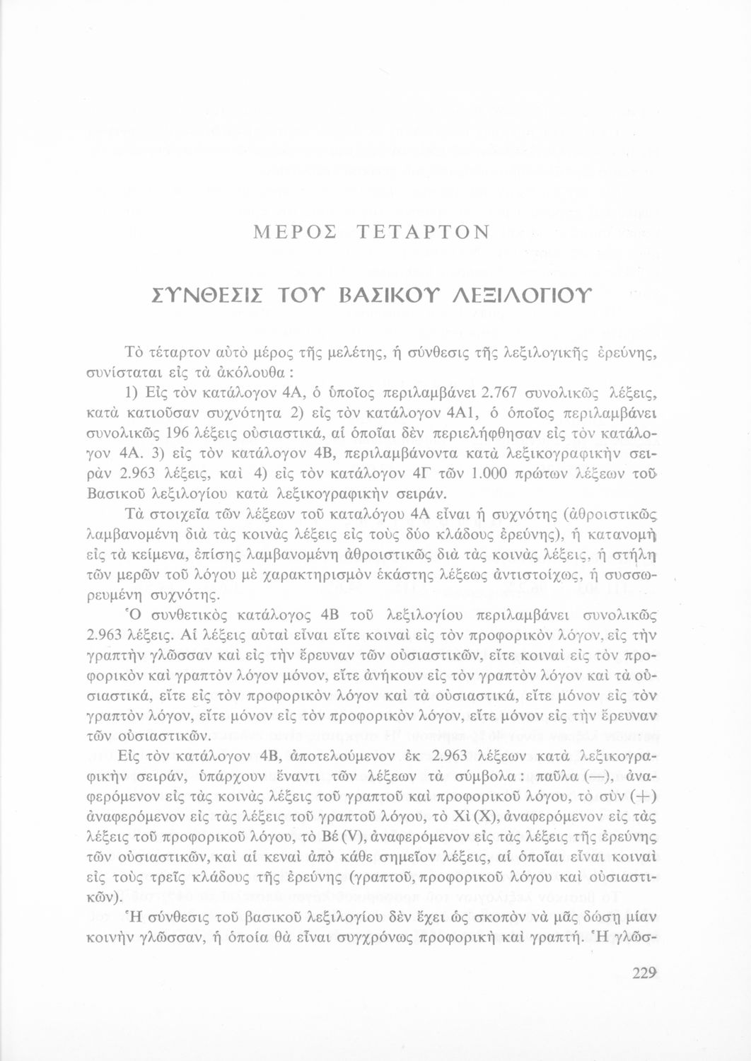 Έρευνα πάνω στη νέα ελληνική που αποσκοπεί στην κατάρτιση και διδασκαλία ενός βασικού λεξιλογίου και της ορθογραφίας του. Φέρει το σύμβολο της δικτατορίας.