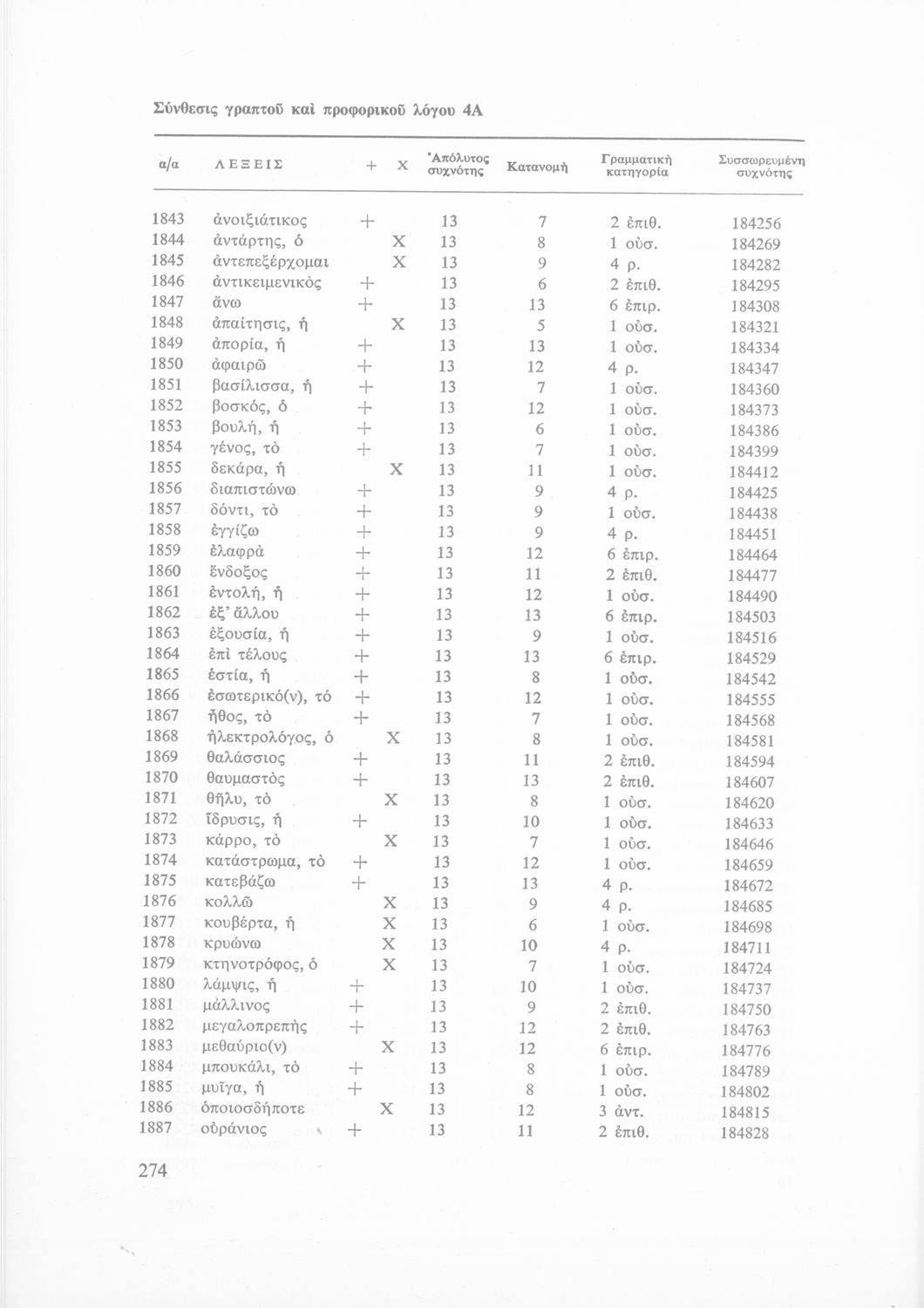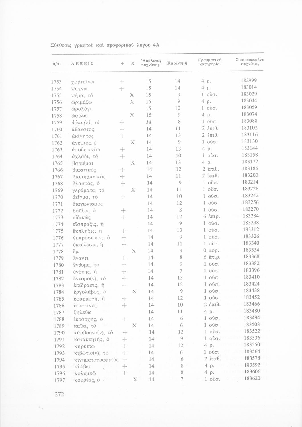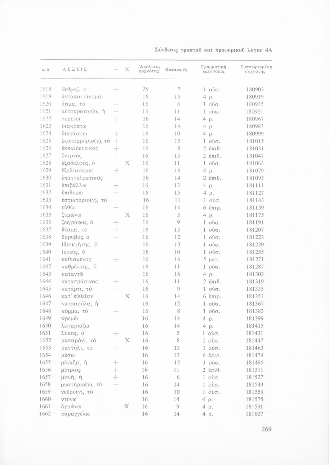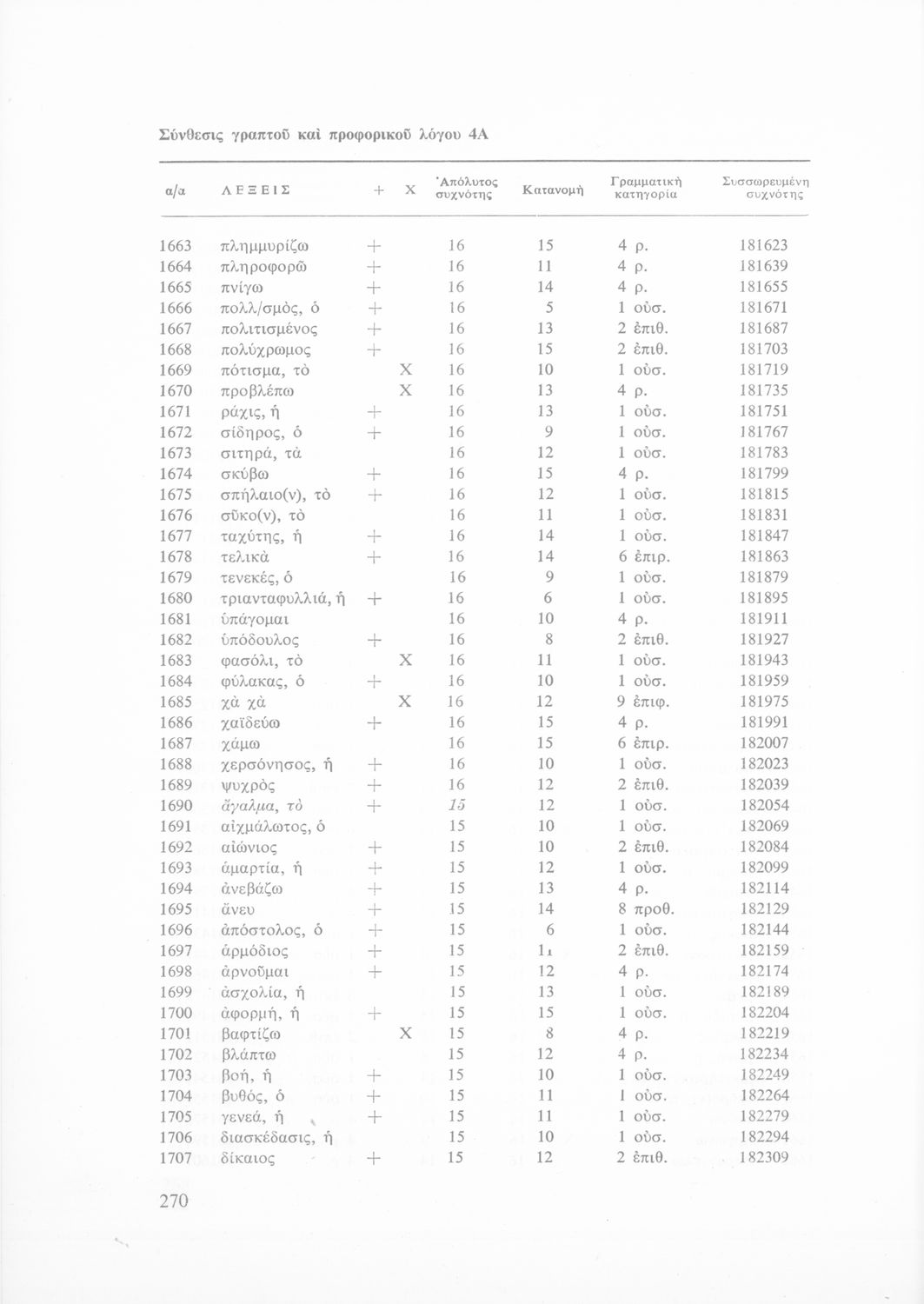 Έρευνα πάνω στη νέα ελληνική που αποσκοπεί στην κατάρτιση και διδασκαλία ενός βασικού λεξιλογίου και της ορθογραφίας του. Φέρει το σύμβολο της δικτατορίας.