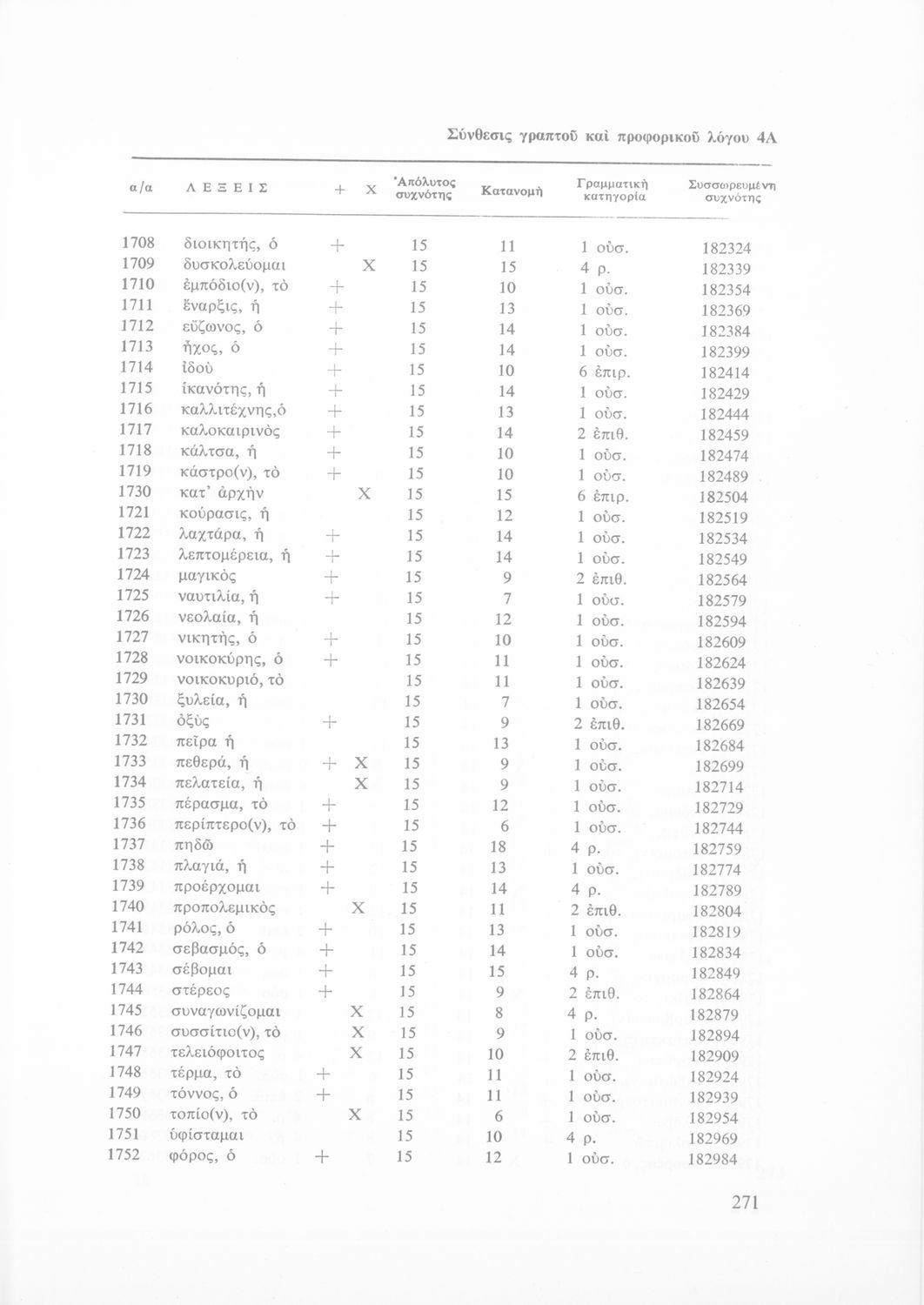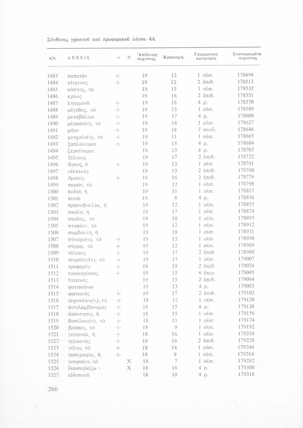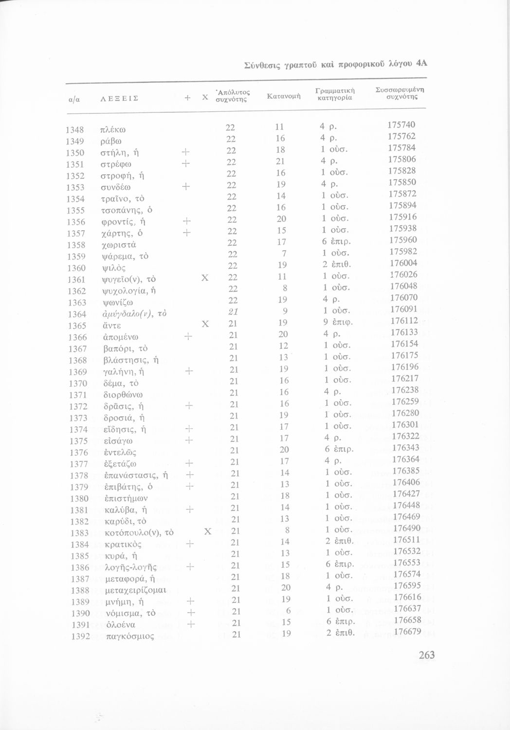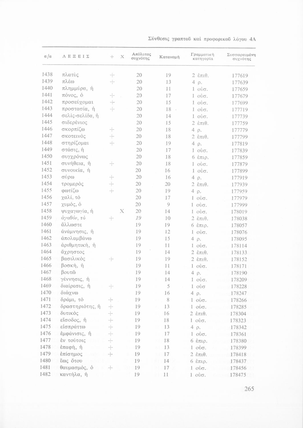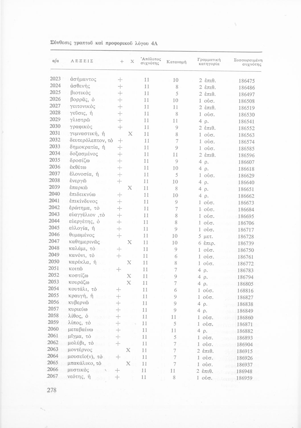 Έρευνα πάνω στη νέα ελληνική που αποσκοπεί στην κατάρτιση και διδασκαλία ενός βασικού λεξιλογίου και της ορθογραφίας του. Φέρει το σύμβολο της δικτατορίας.