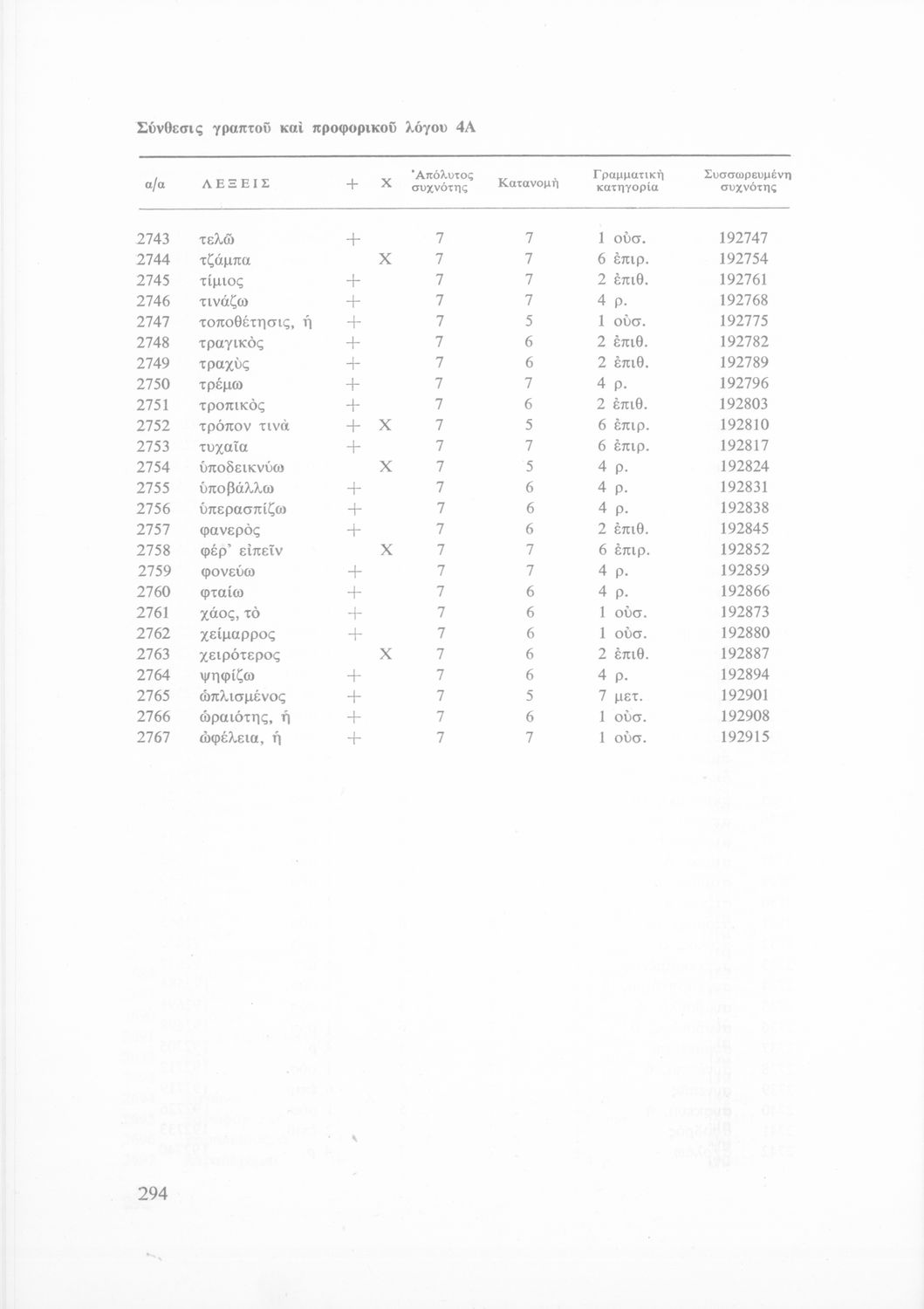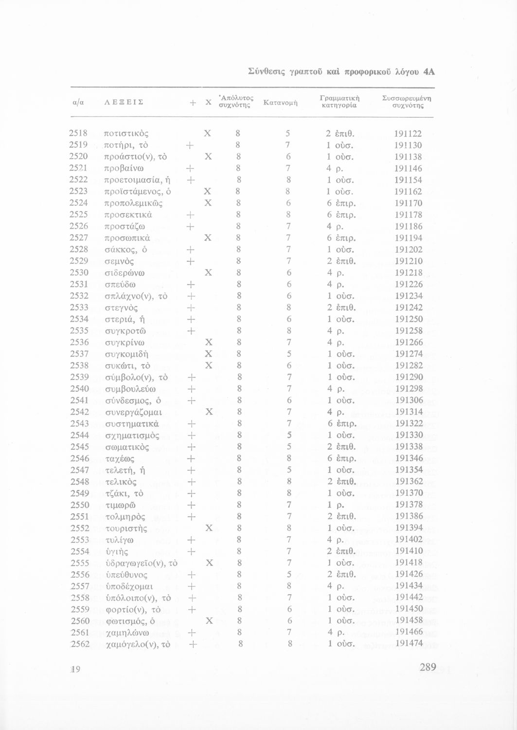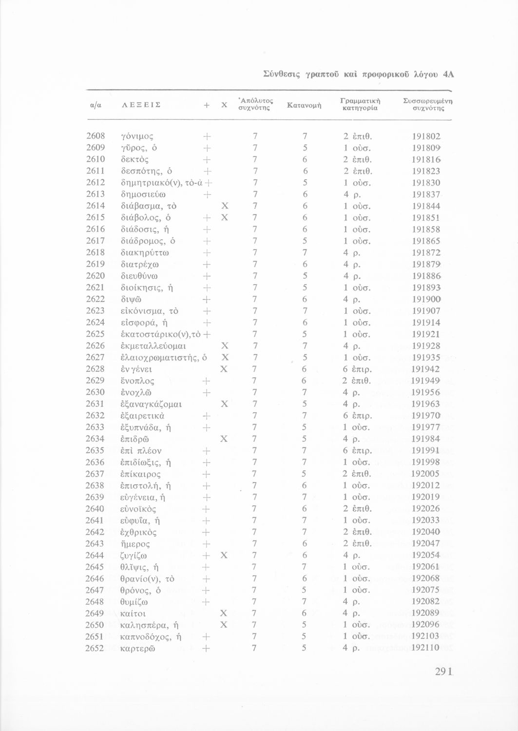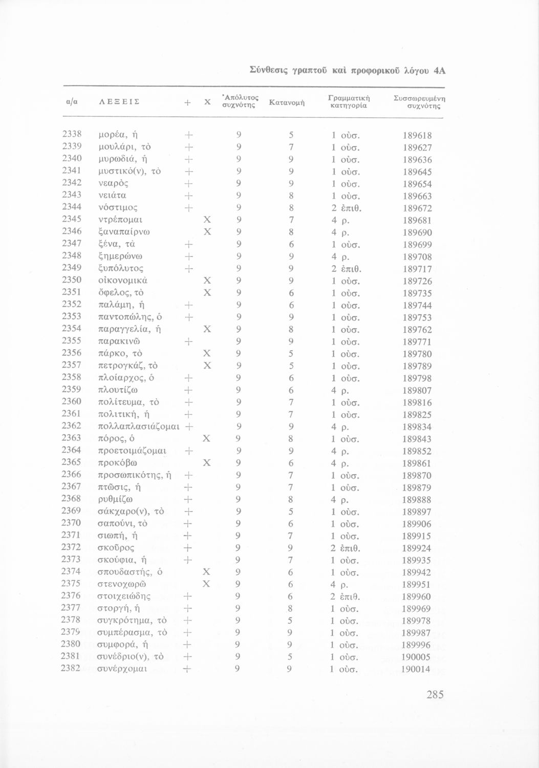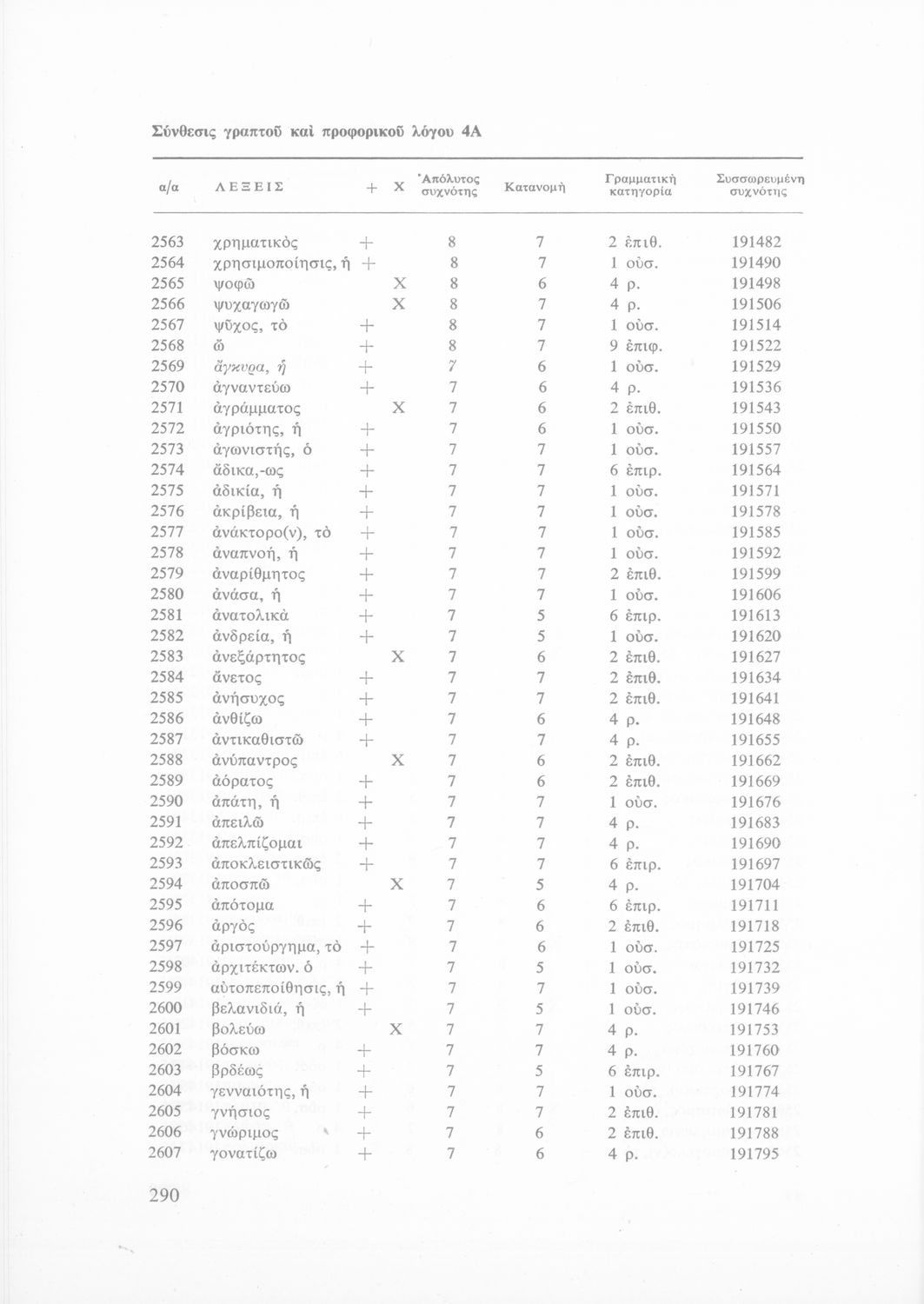 Έρευνα πάνω στη νέα ελληνική που αποσκοπεί στην κατάρτιση και διδασκαλία ενός βασικού λεξιλογίου και της ορθογραφίας του. Φέρει το σύμβολο της δικτατορίας.