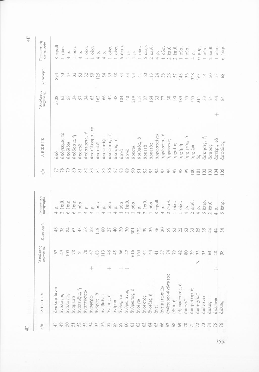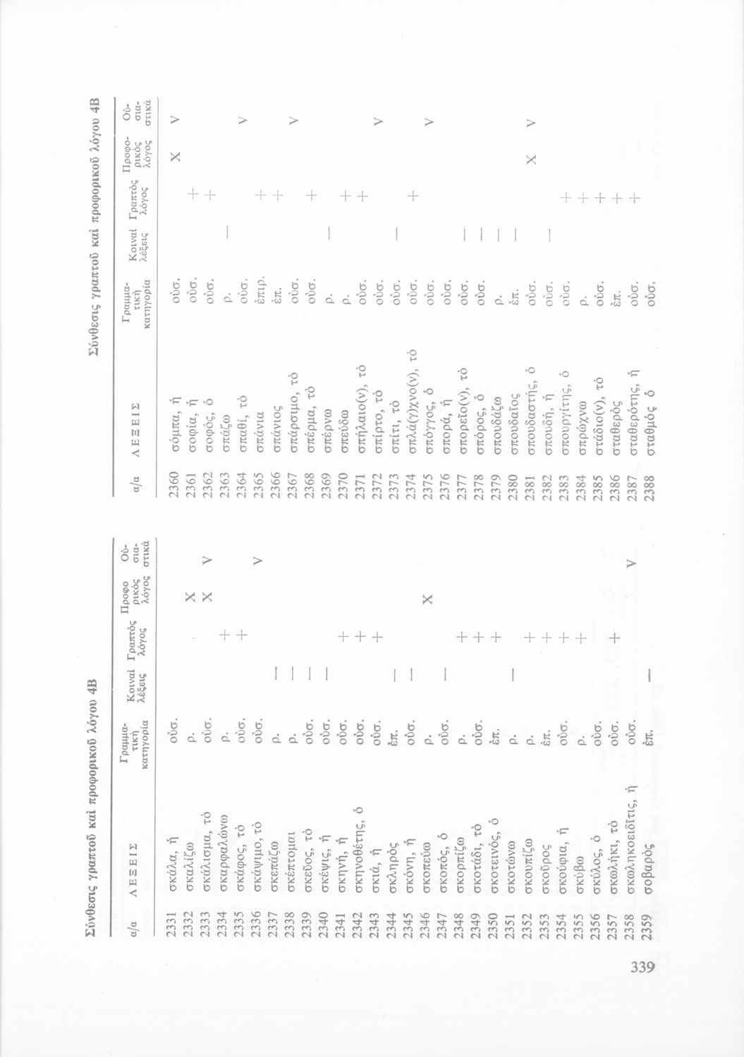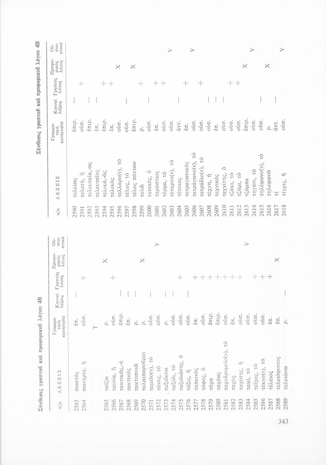Έρευνα πάνω στη νέα ελληνική που αποσκοπεί στην κατάρτιση και διδασκαλία ενός βασικού λεξιλογίου και της ορθογραφίας του. Φέρει το σύμβολο της δικτατορίας.