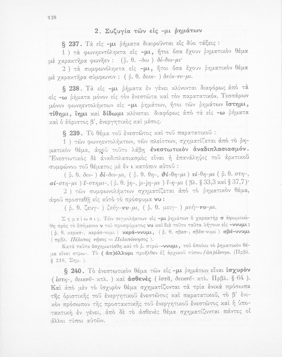 520 ## _aΣχολικό εγχειρίδιο Αρχαίων Ελληνικών Γυμνασίου που περιέχει τους κανόνες γραμματικής και είναι χωρισμένο σε φθογγολογικό, τυπολογικό και ετυμολογικό μέρος. Περιέχει και κατάλογο ανωμάλων ρημάτων.