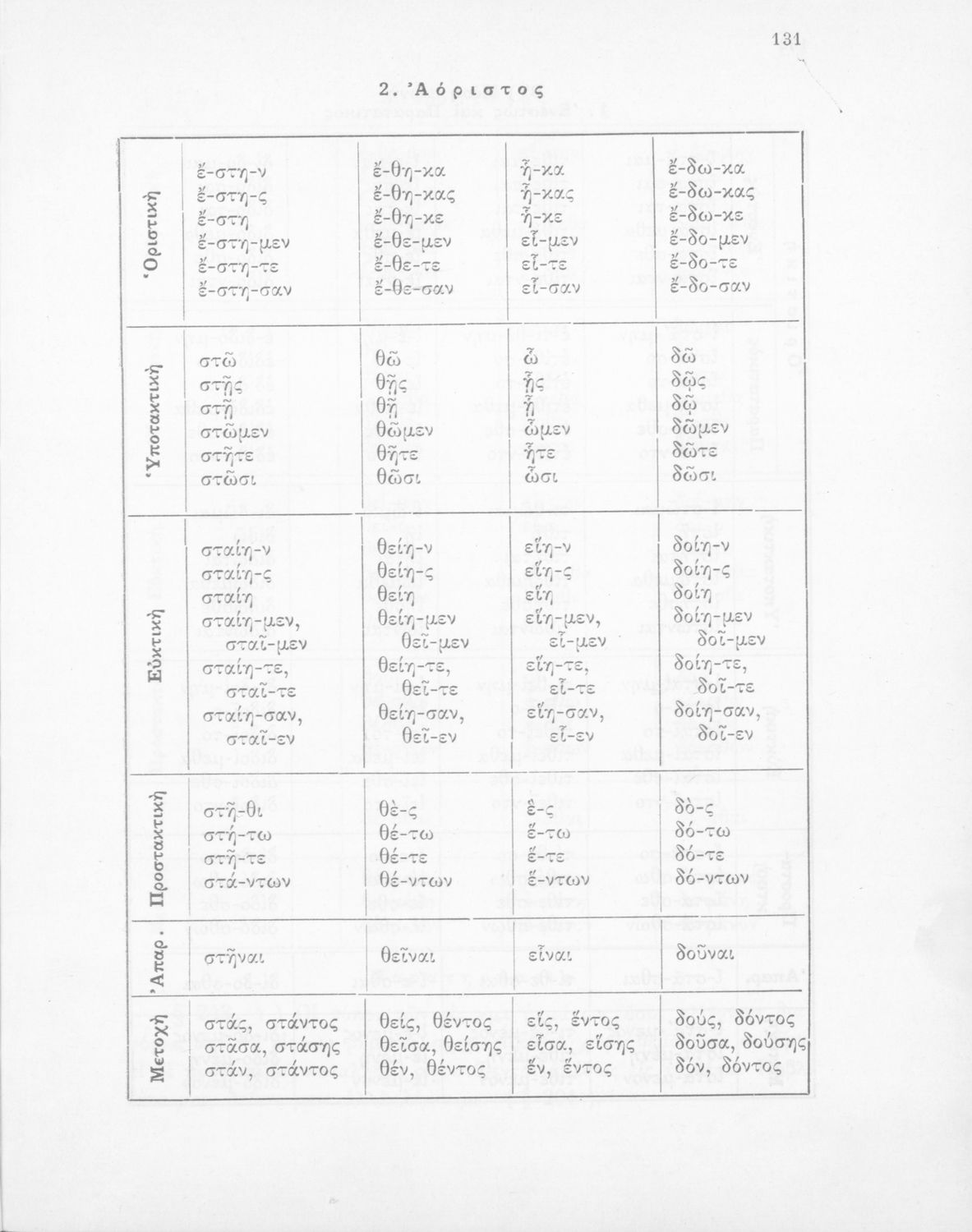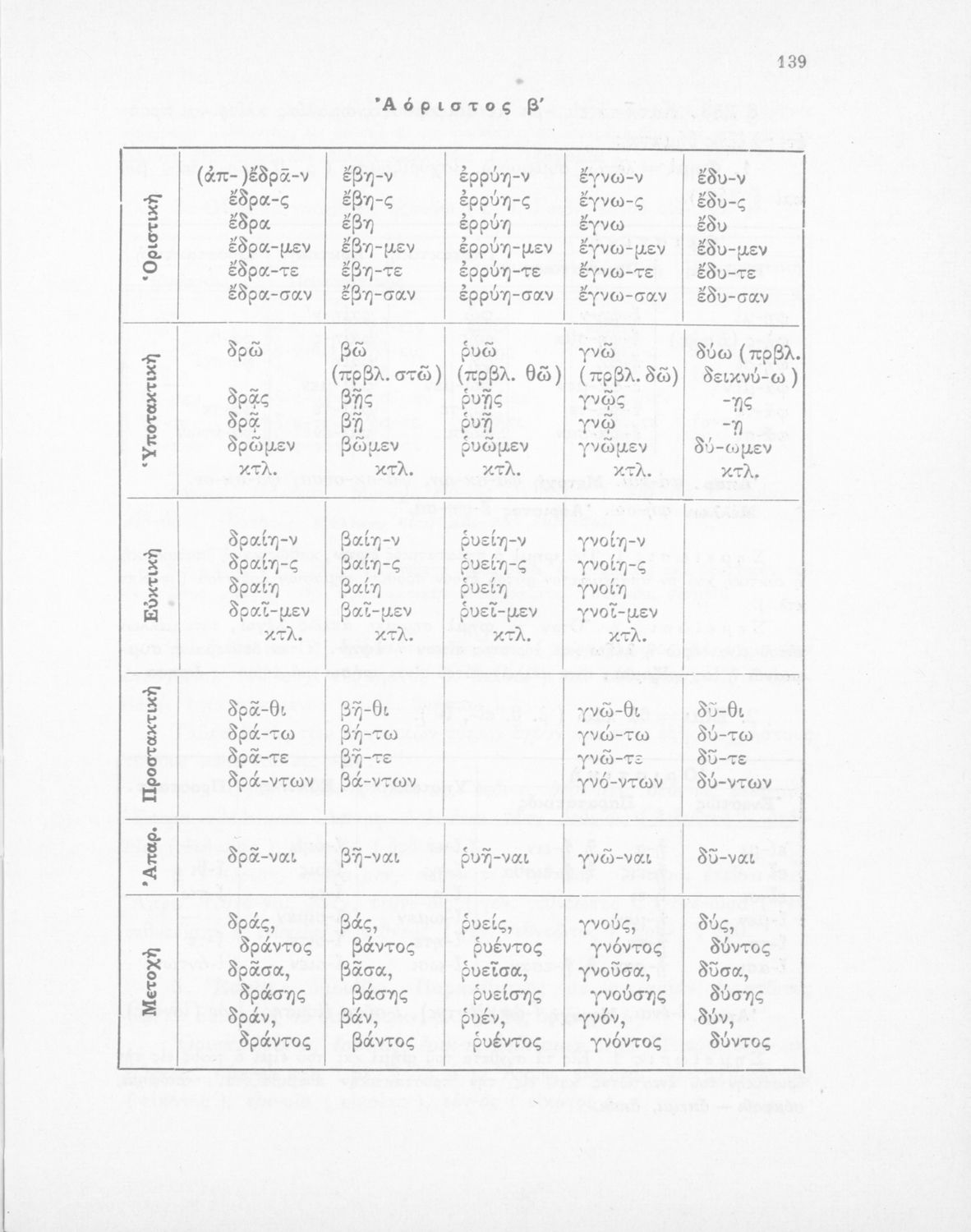 Σχολικό εγχειρίδιο Αρχαίων Ελληνικών Γυμνασίου που περιέχει τους κανόνες γραμματικής και είναι χωρισμένο σε φθογγολογικό, τυπολογικό και ετυμολογικό μέρος. Περιέχει και κατάλογο ανωμάλων ρημάτων.
