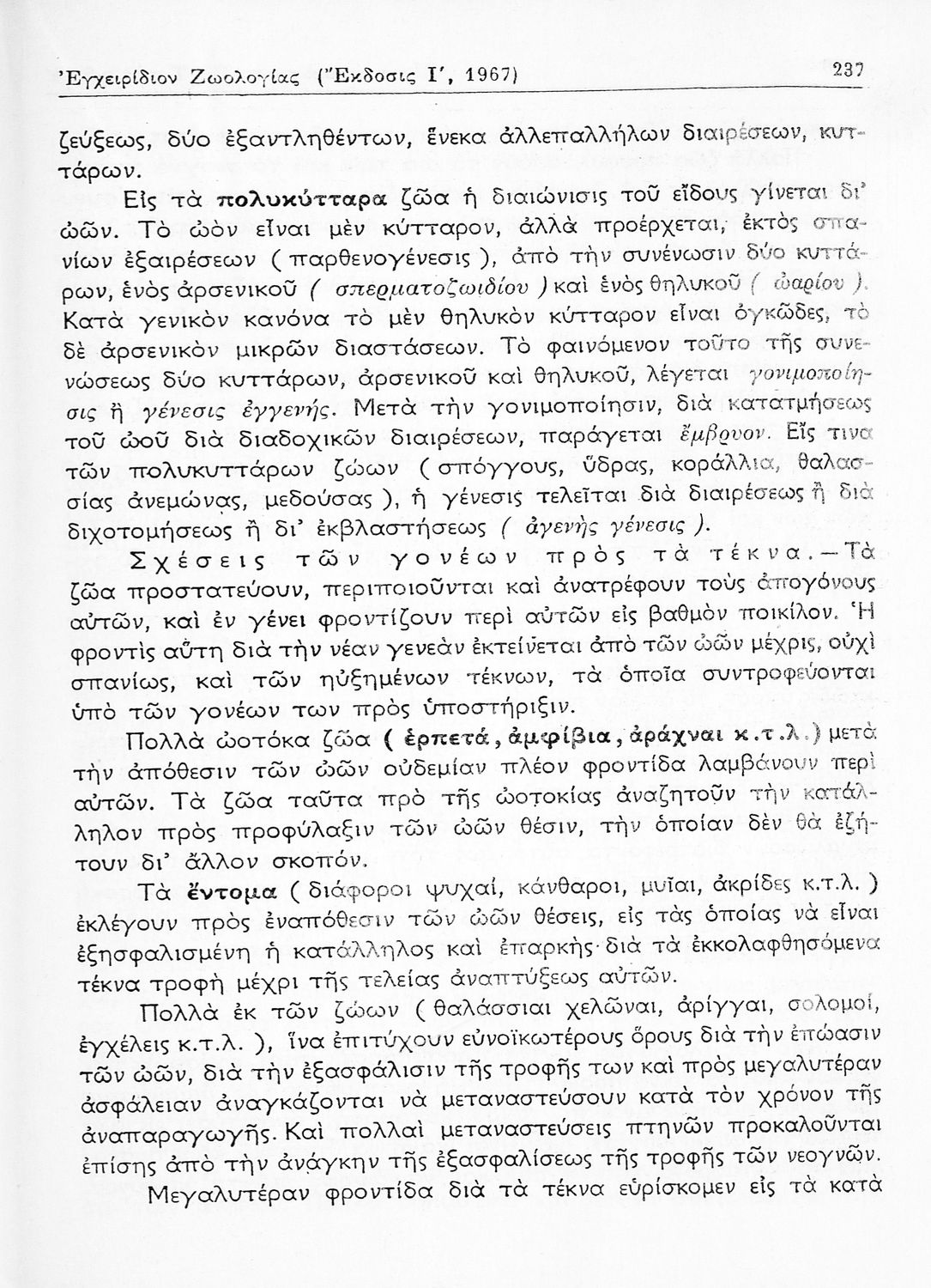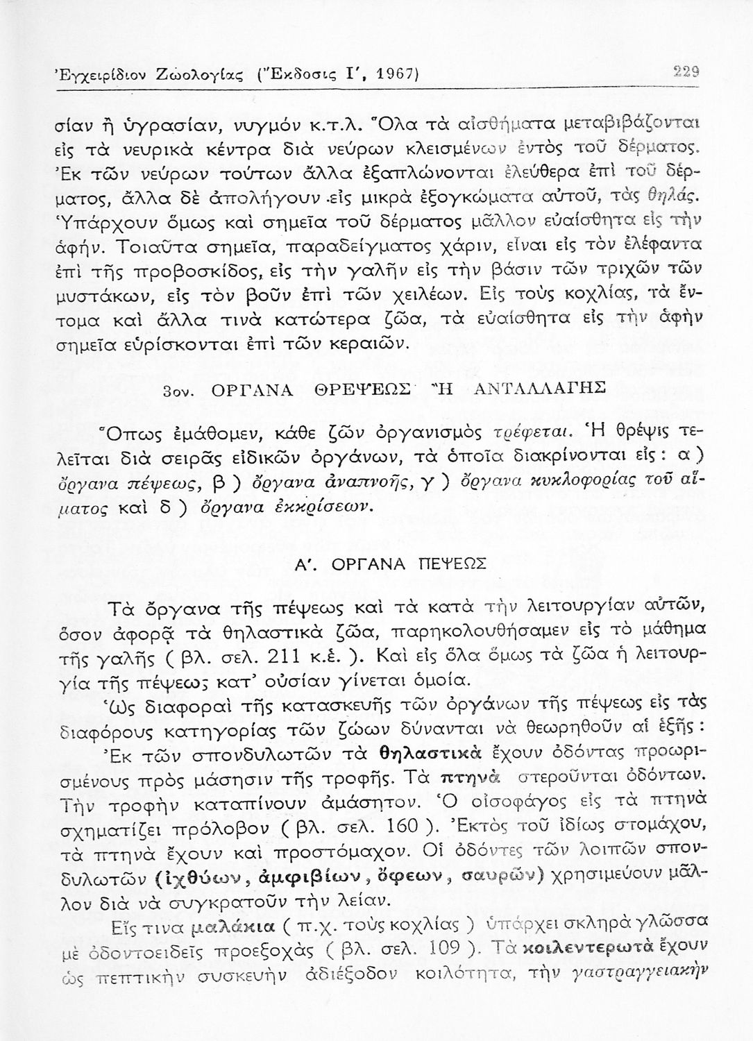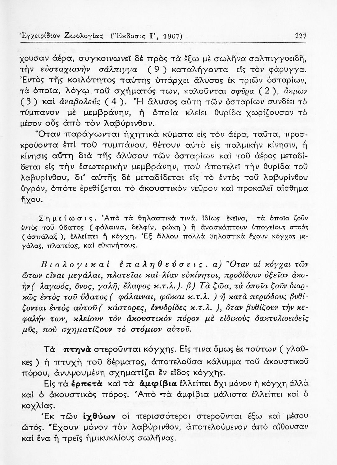 Εγχειρίδιον ζωολογίας Α΄ Γυμνασίου