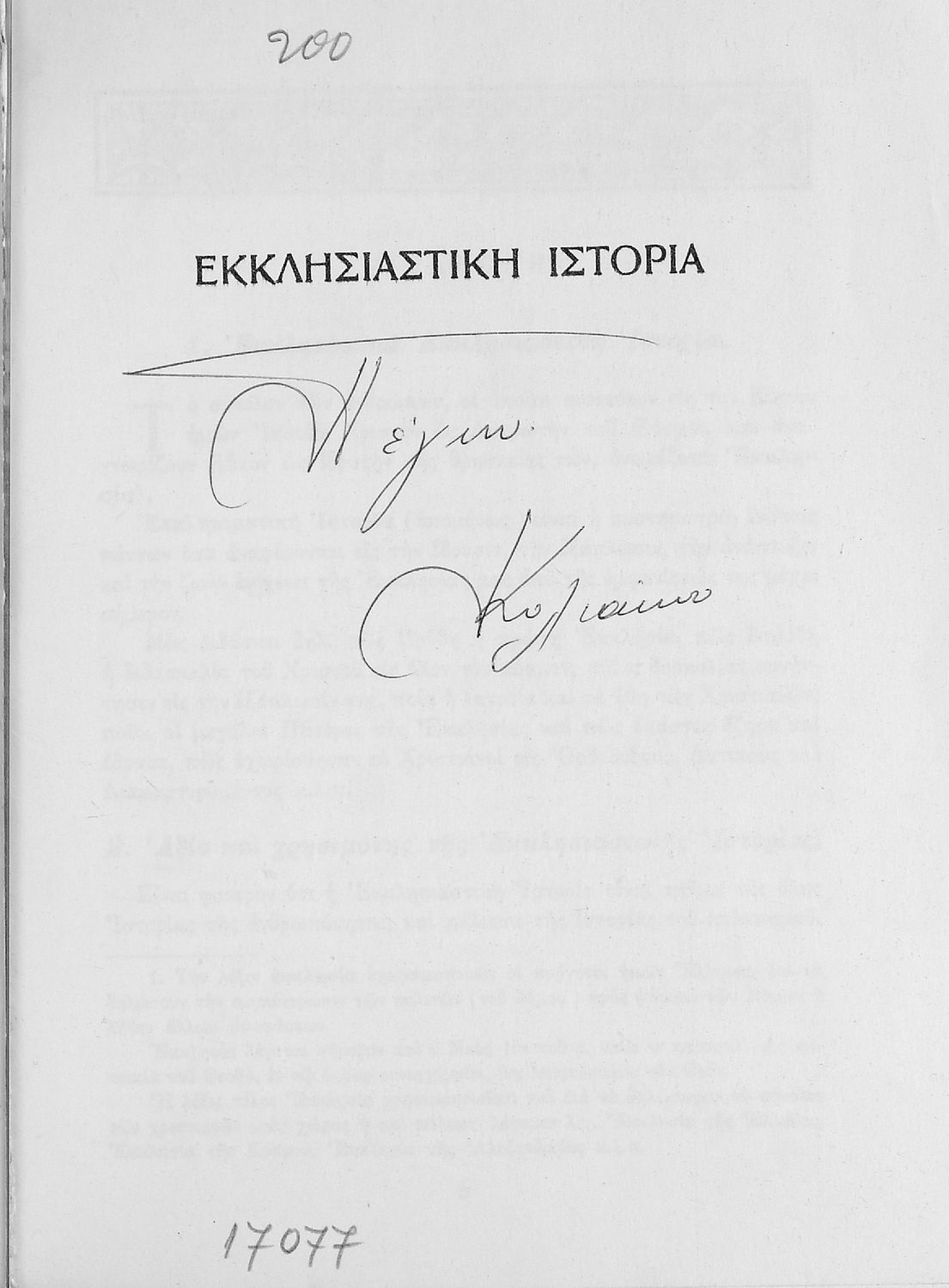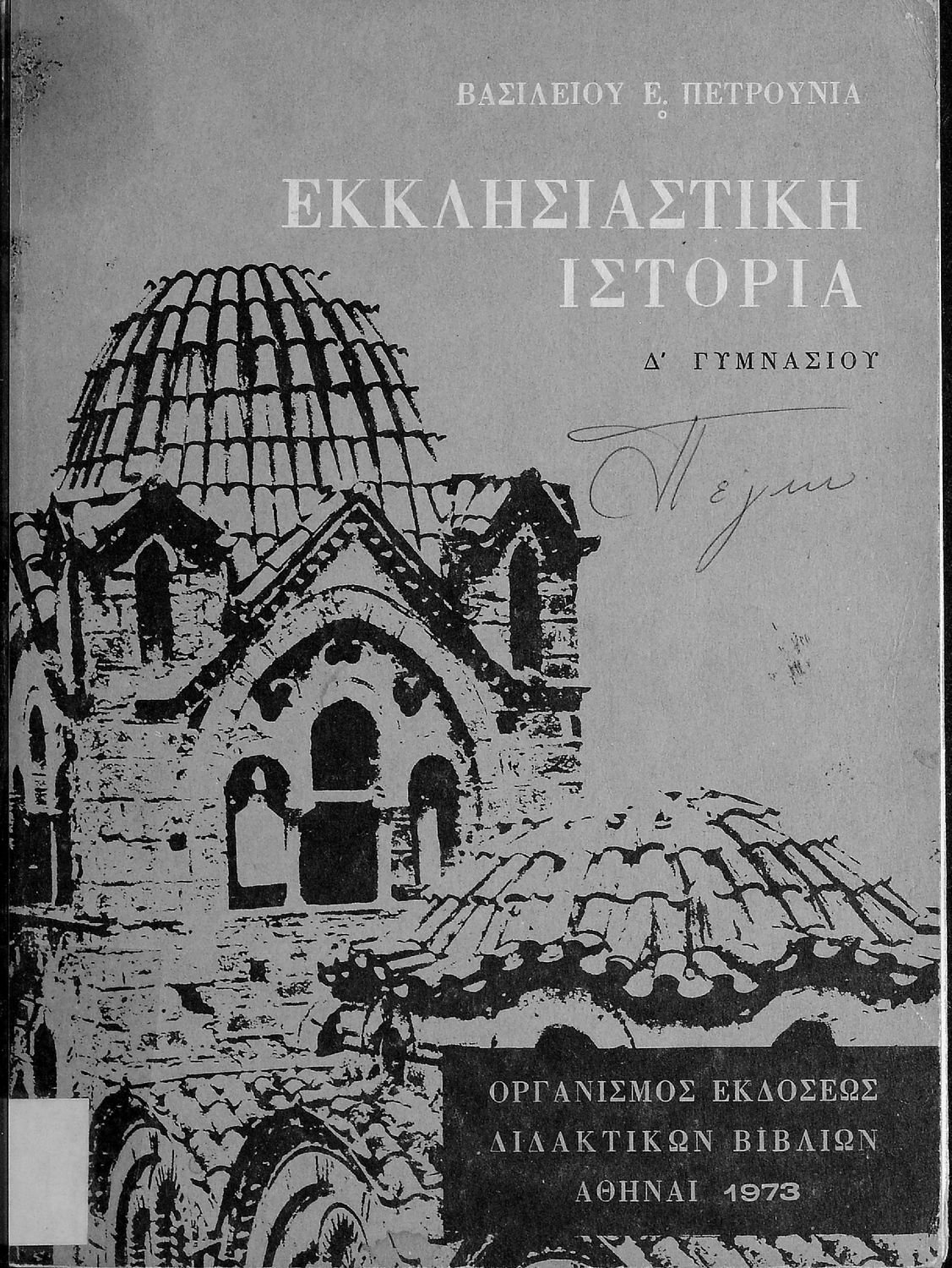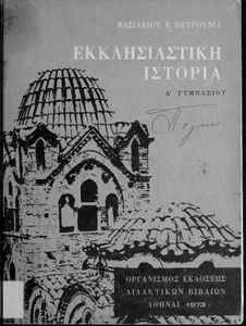 Σχολικό εγχειρίδιο Θρησκευτικών για την Δ' Γυμνασίου παλαιού τύπου που περιέχει την ιστορία της ορθόδοξης Εκκλησίας από την ίδρυσή της μέχρι την δημιουργία της Εκκλησίας της Ελλάδας.
