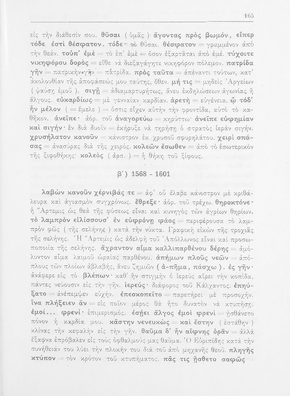 Σχολικό εγχειρίδιο Αρχαίων Ελληνικών Ε΄ Γυμνασίου που περιέχει εισαγωγή στο αρχαίο δράμα και στη ζωή και το έργο του Ευριπίδη, αποσπάσματα από την Ιφιγένεια η εν Αυλίδι και ερμηνευτικά σχόλια. Φέρει το σύμβολο της δικτατορίας.