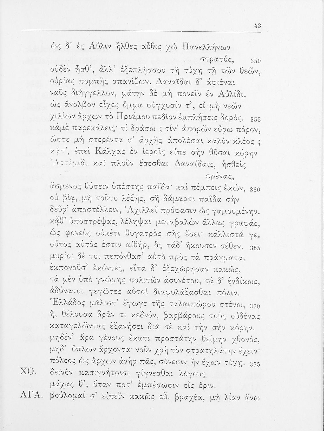 Μαθητικό βοήθημα Αρχαίων Ελληνικών για την Ε' Γυμνασίου που περιλαμβάνει μετάφραση, ερμηνευτικά, γραμματικά και συντακτικά σχόλια στην Ιφιγένεια η εν Αυλίδι.