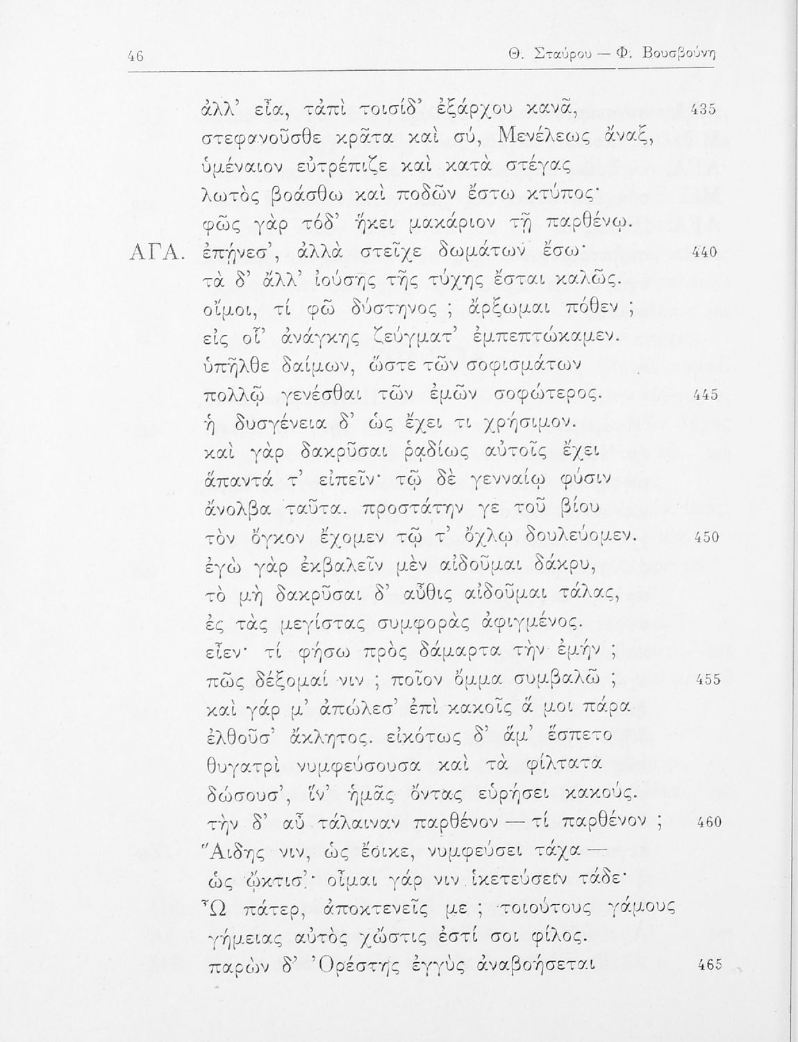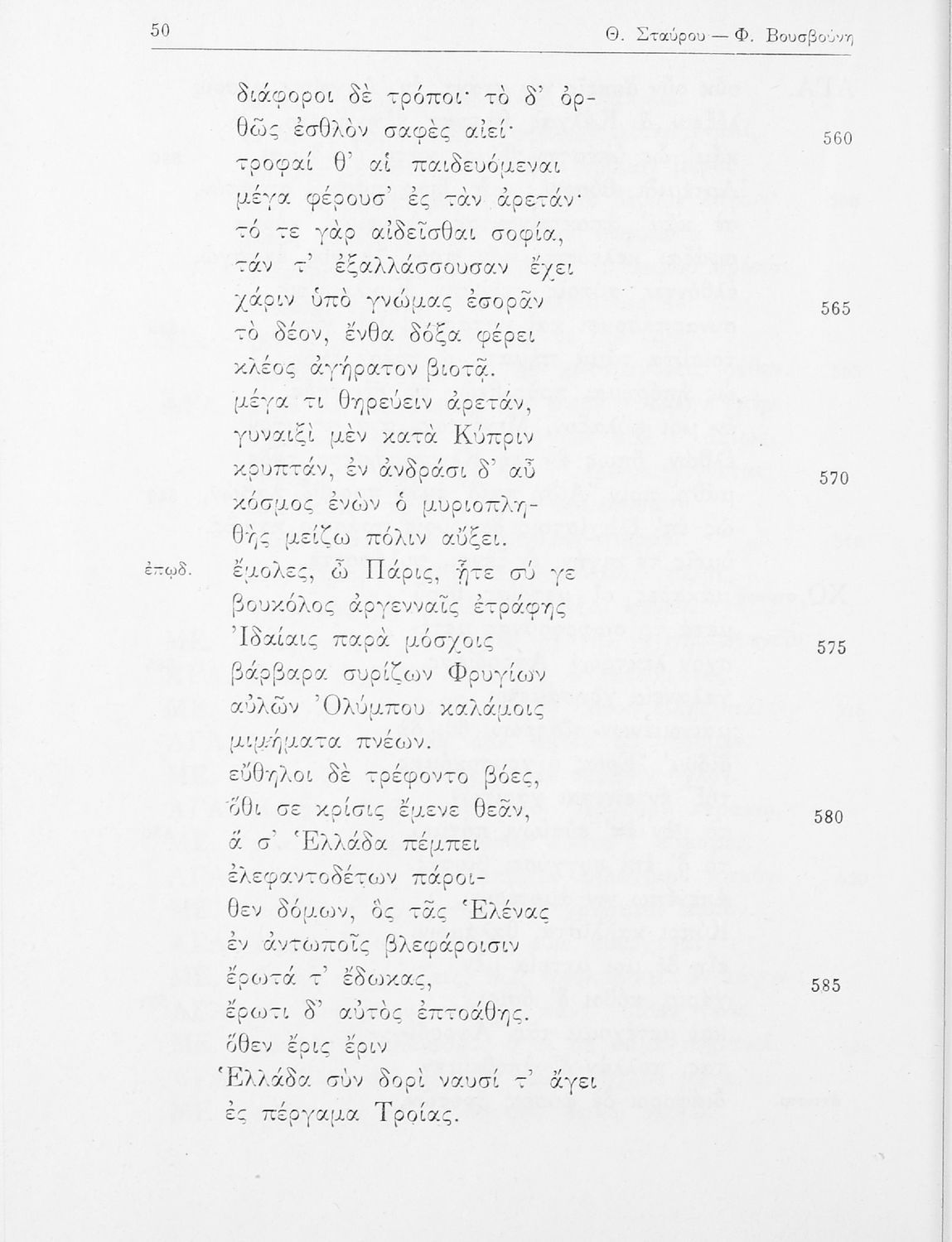 Ευριπίδης, Θεόδωρος Σταύρου, Φ. Βουσβούνης (σχόλια)