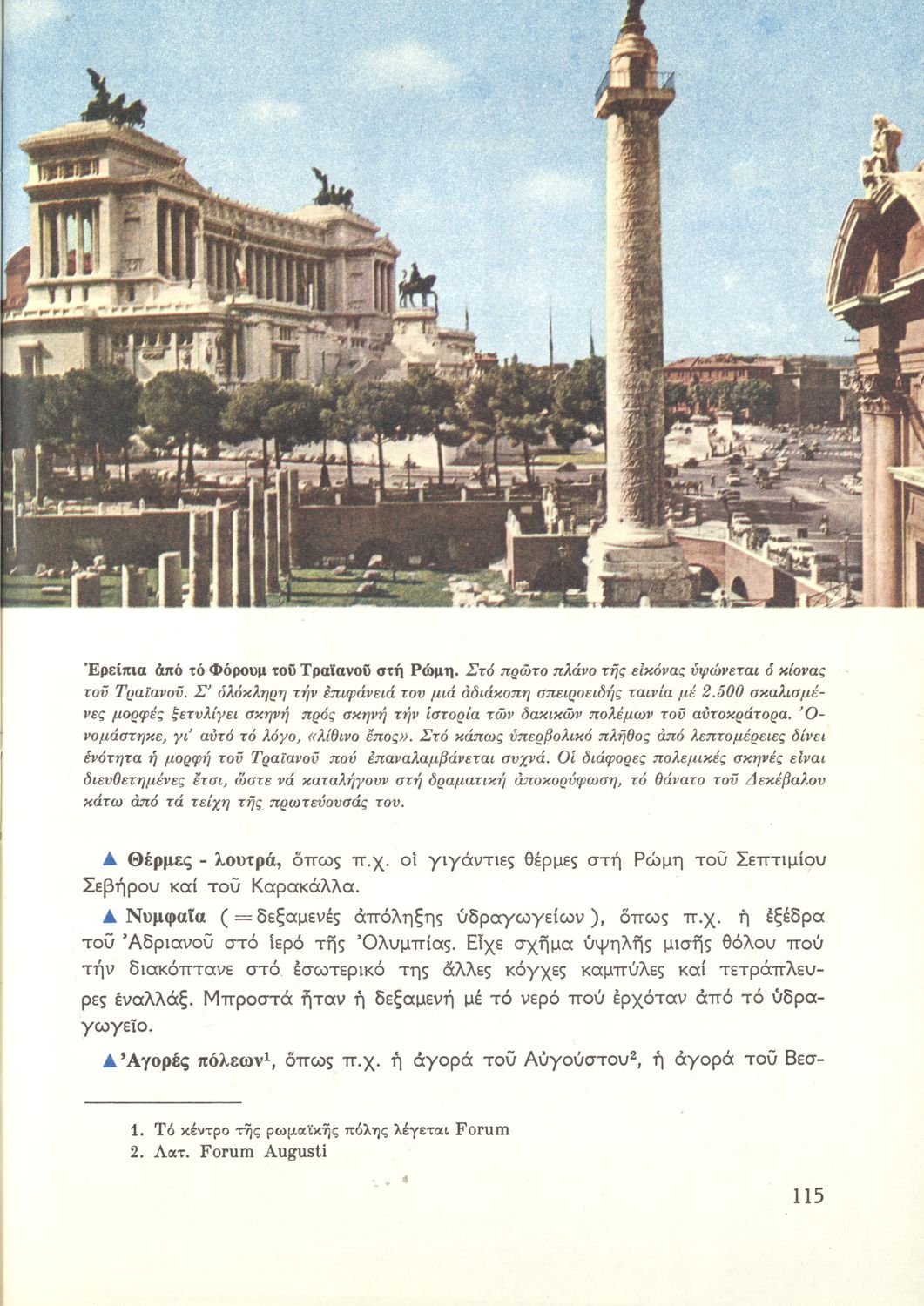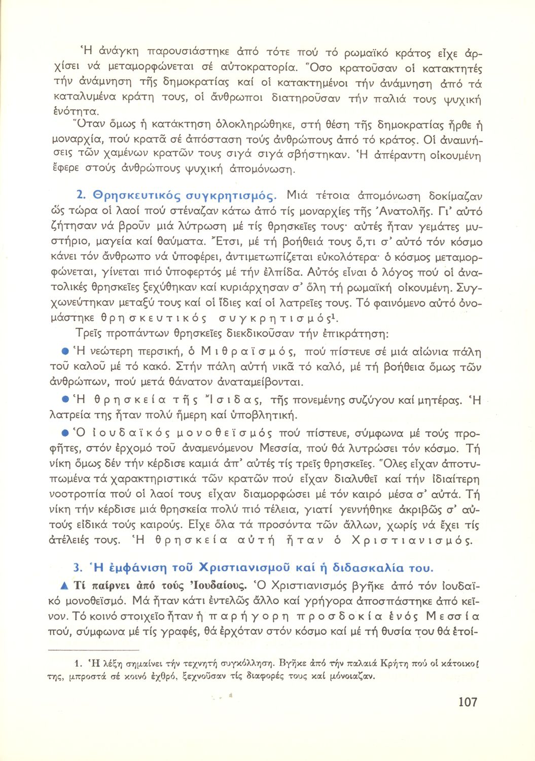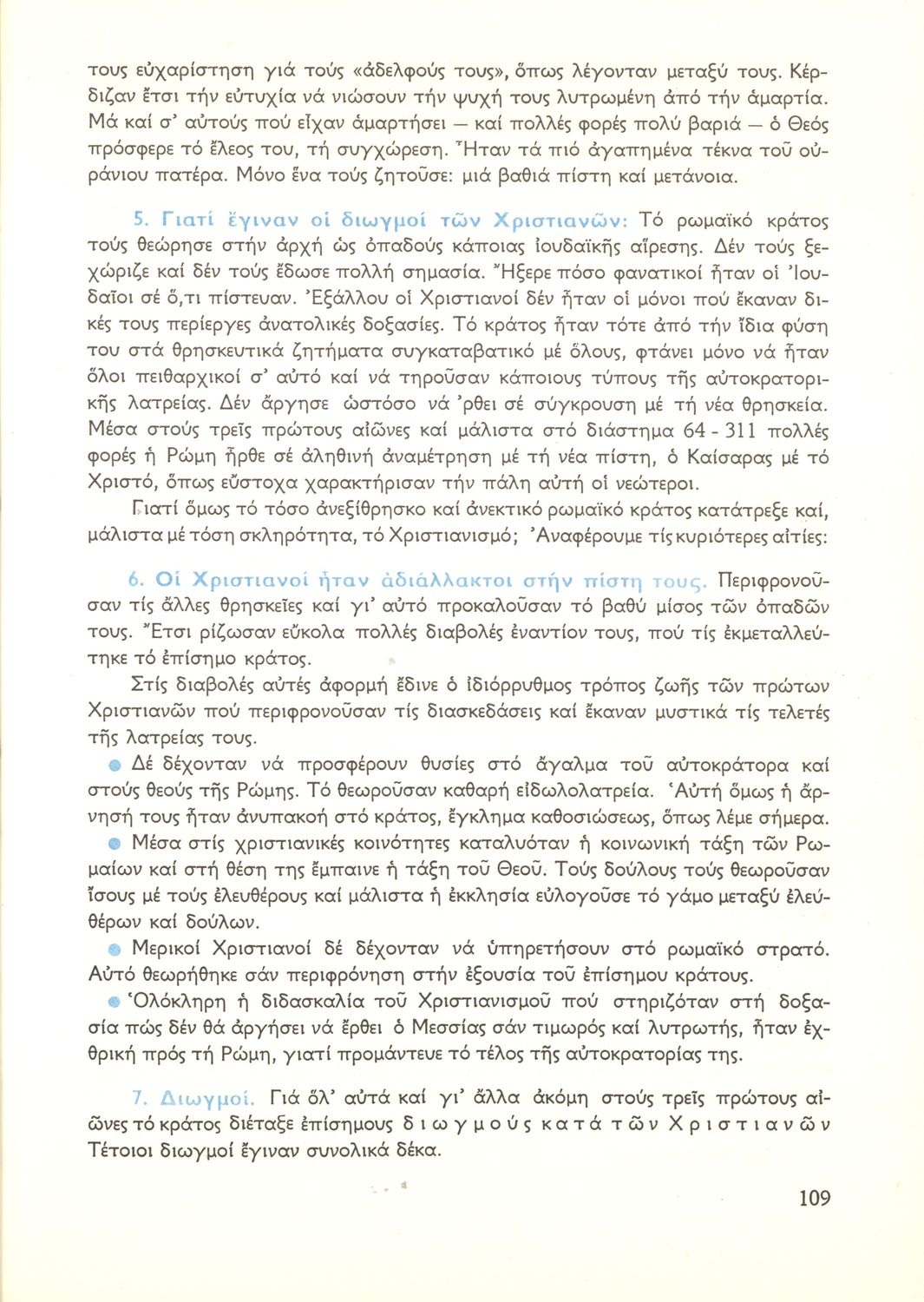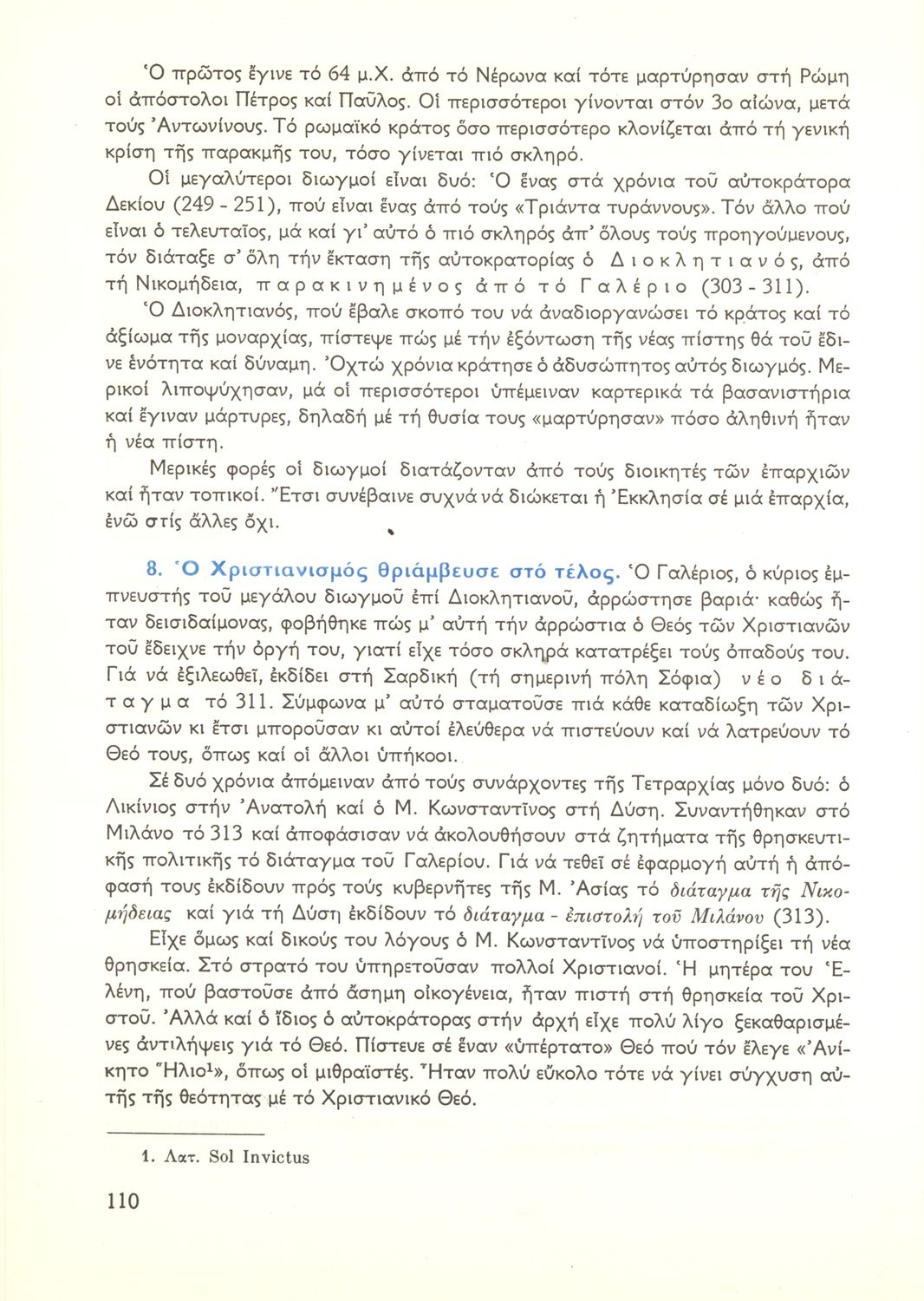 Σχολικό εγχειρίδιο Ιστορίας Β΄ Γυμνασίου που καλύπτει την περίοδο από την κατάληψη της Ελλάδας από τους Ρωμαίους ως την πτώση της Βυζαντινής Αυτοκρατορίας. Γίνεται ιδιαίτερη μνεία στο χριστιανικό και ελληνικό στοιχείο του Βυζαντίου. Προτείνει μια υλιστική ανάγνωση της Ιστορίας την οποία διαβάζει από την οπτική των κοινωνικών συγκρούσεων.