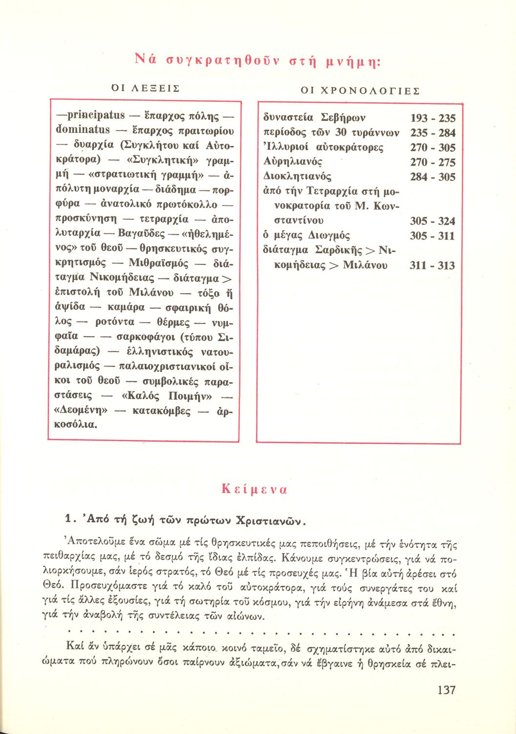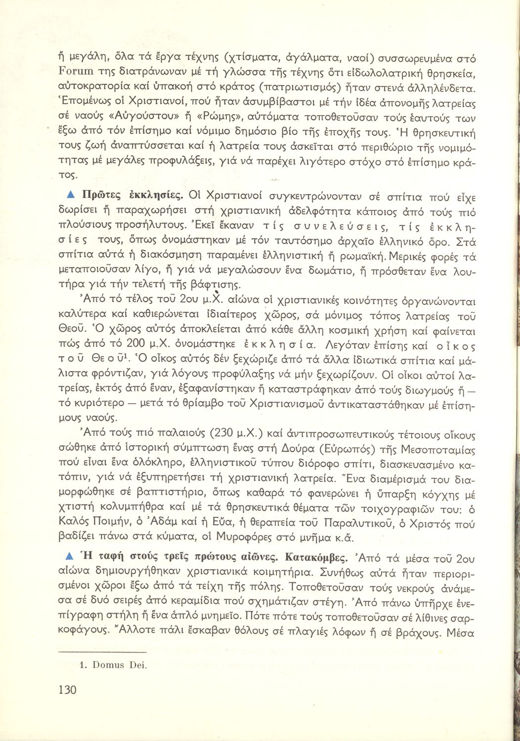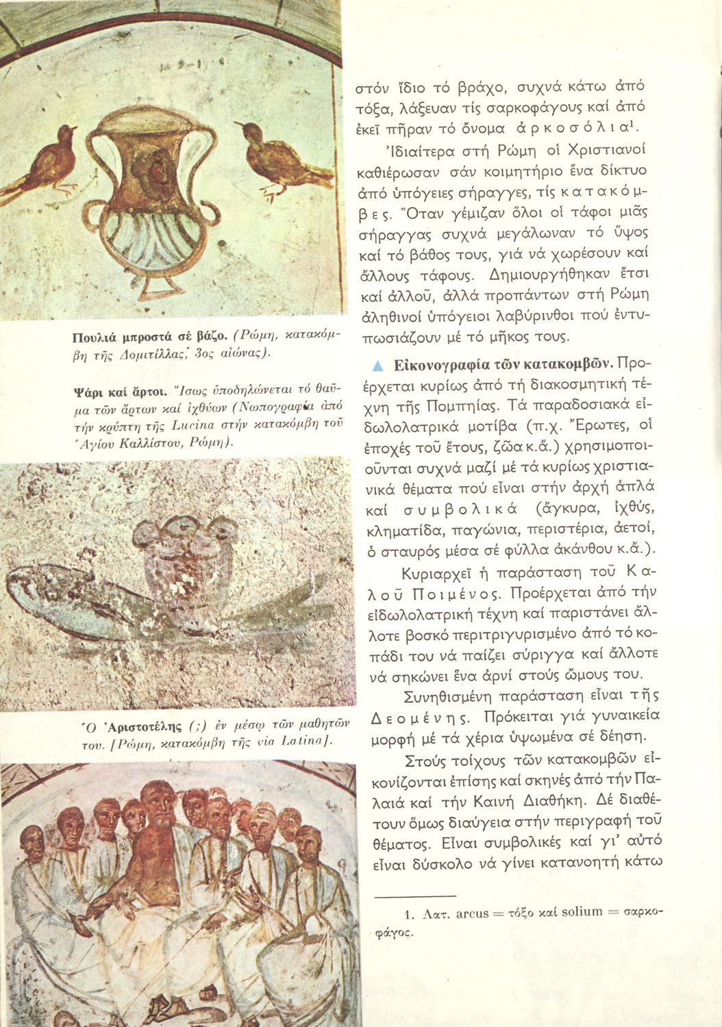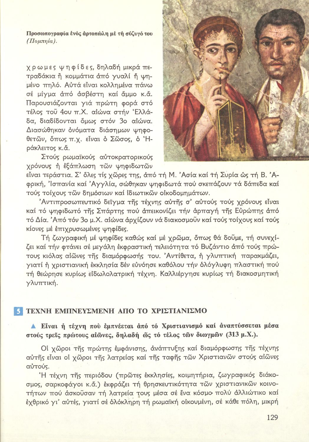 Σχολικό εγχειρίδιο Ιστορίας Β΄ Γυμνασίου που καλύπτει την περίοδο από την κατάληψη της Ελλάδας από τους Ρωμαίους ως την πτώση της Βυζαντινής Αυτοκρατορίας. Γίνεται ιδιαίτερη μνεία στο χριστιανικό και ελληνικό στοιχείο του Βυζαντίου. Προτείνει μια υλιστική ανάγνωση της Ιστορίας την οποία διαβάζει από την οπτική των κοινωνικών συγκρούσεων.