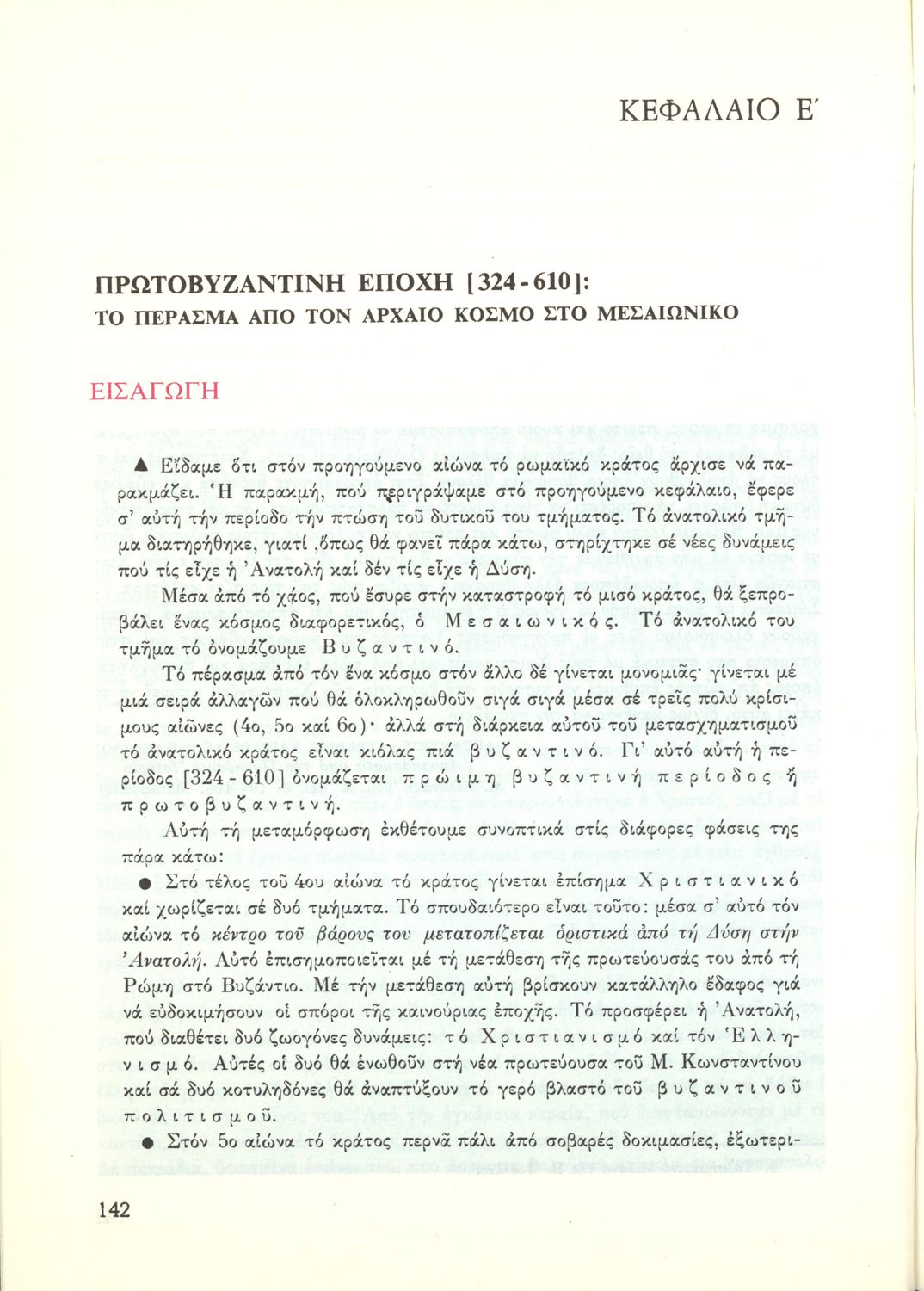 Σχολικό εγχειρίδιο Ιστορίας Β΄ και Ε΄ Γυμνασίου που καλύπτει την περίοδο από την άνοδο του Μ. Κωνσταντίνου στο θρόνο μέχρι και την άλωση της Κωνσταντινούπολης. Παρουσιάζει και τα πνευματικά και καλλιτεχνικά ...