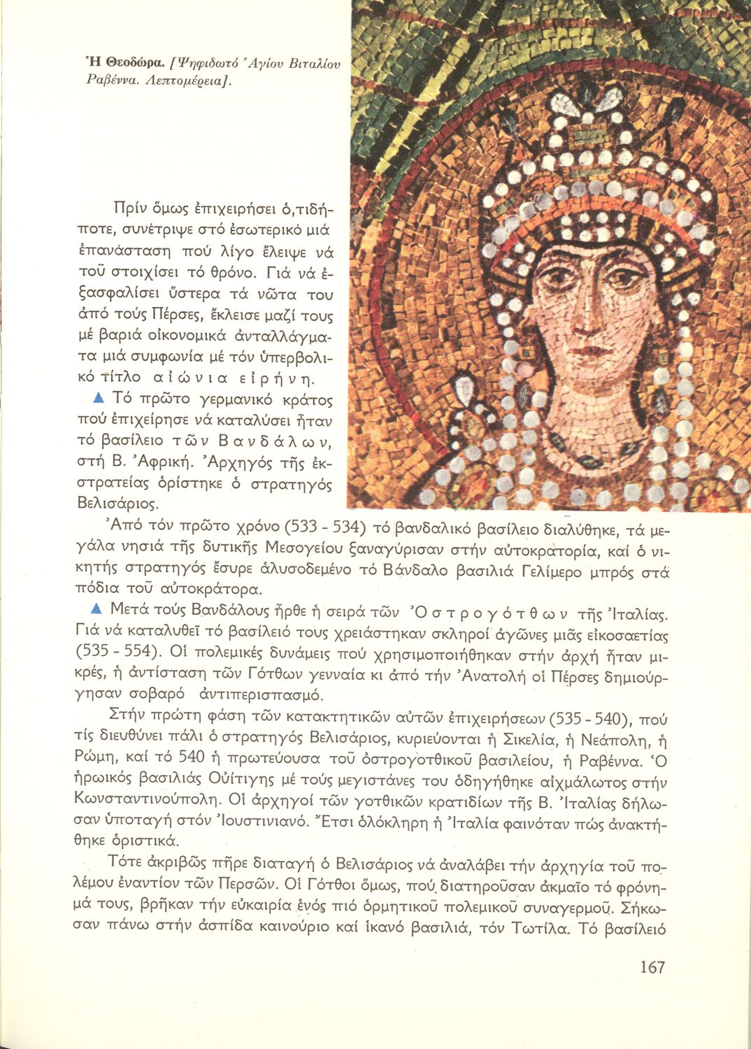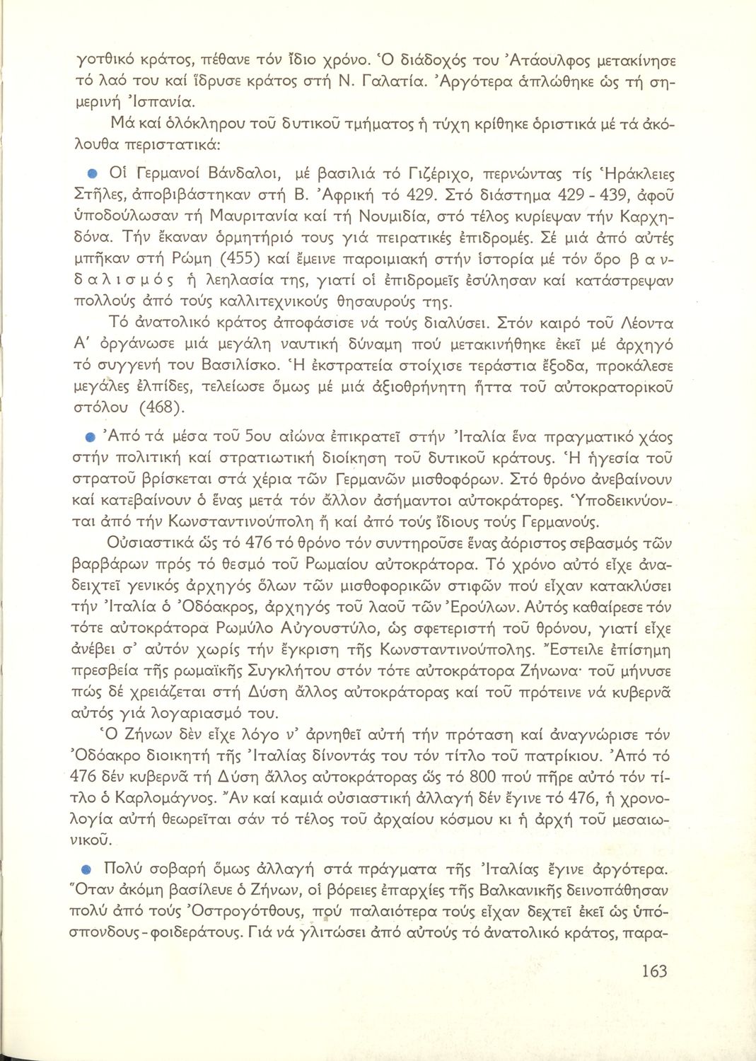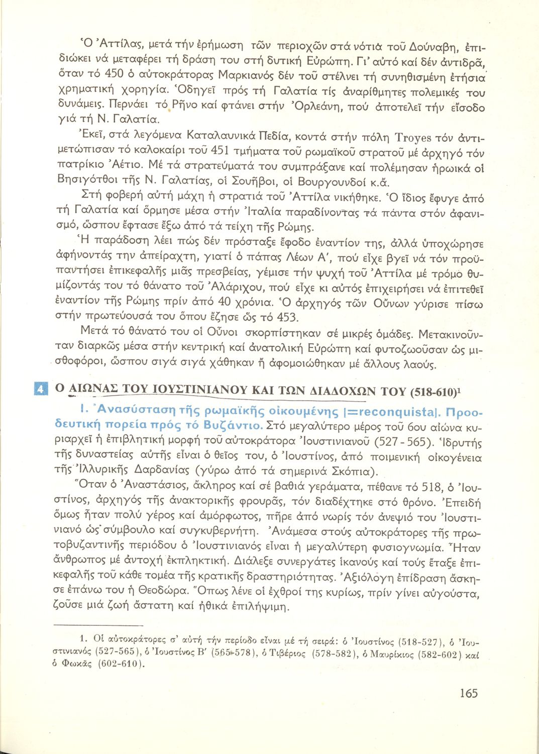 Σχολικό εγχειρίδιο Ιστορίας Β΄ Γυμνασίου που καλύπτει την περίοδο από την κατάληψη της Ελλάδας από τους Ρωμαίους ως την πτώση της Βυζαντινής Αυτοκρατορίας. Γίνεται ιδιαίτερη μνεία στο χριστιανικό και ελληνικό στοιχείο του Βυζαντίου. Προτείνει μια υλιστική ανάγνωση της Ιστορίας την οποία διαβάζει από την οπτική των κοινωνικών συγκρούσεων.
