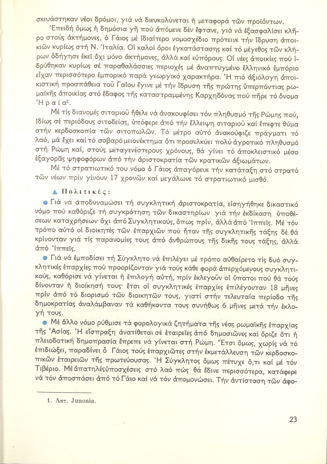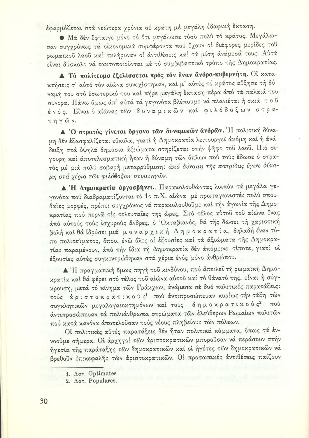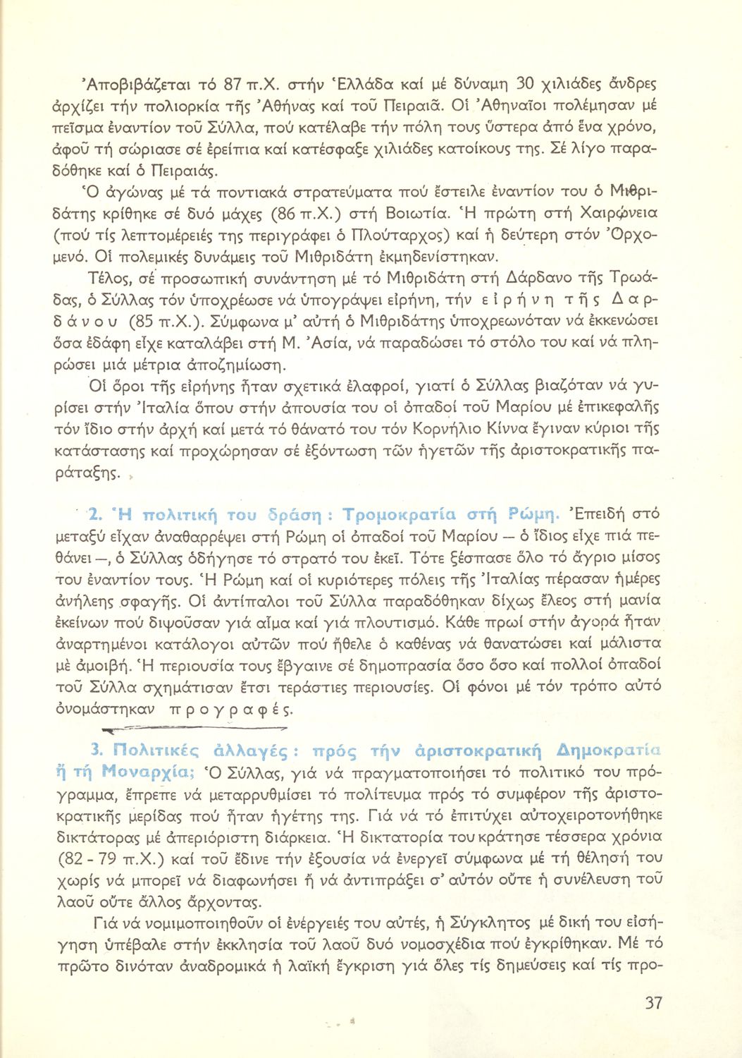Σχολικό εγχειρίδιο Ιστορίας Β΄ Γυμνασίου που καλύπτει την περίοδο από την κατάληψη της Ελλάδας από τους Ρωμαίους ως την πτώση της Βυζαντινής Αυτοκρατορίας. Γίνεται ιδιαίτερη μνεία στο χριστιανικό και ελληνικό στοιχείο του Βυζαντίου. Προτείνει μια υλιστική ανάγνωση της Ιστορίας την οποία διαβάζει από την οπτική των κοινωνικών συγκρούσεων.