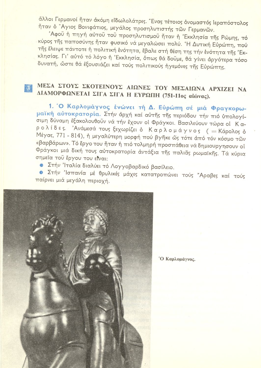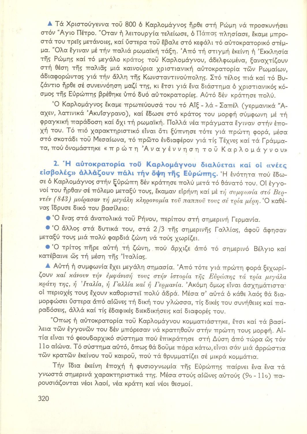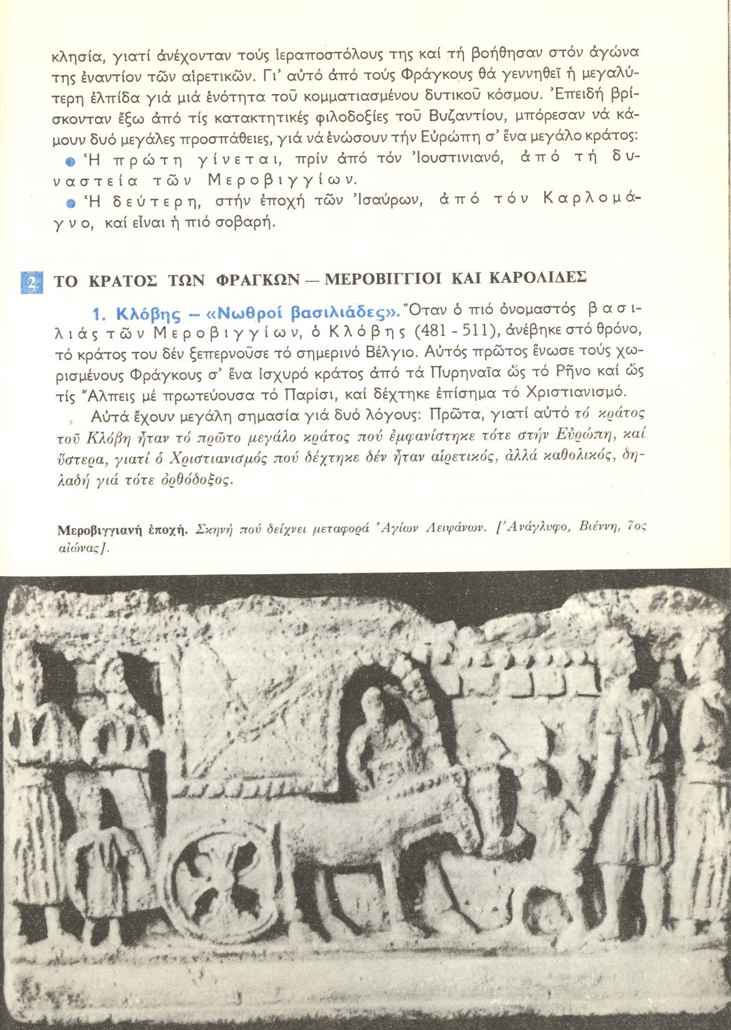 Σχολικό εγχειρίδιο Ιστορίας Β΄ Γυμνασίου που καλύπτει την περίοδο από την κατάληψη της Ελλάδας από τους Ρωμαίους ως την πτώση της Βυζαντινής Αυτοκρατορίας. Γίνεται ιδιαίτερη μνεία στο χριστιανικό και ελληνικό στοιχείο του Βυζαντίου. Προτείνει μια υλιστική ανάγνωση της Ιστορίας την οποία διαβάζει από την οπτική των κοινωνικών συγκρούσεων.
