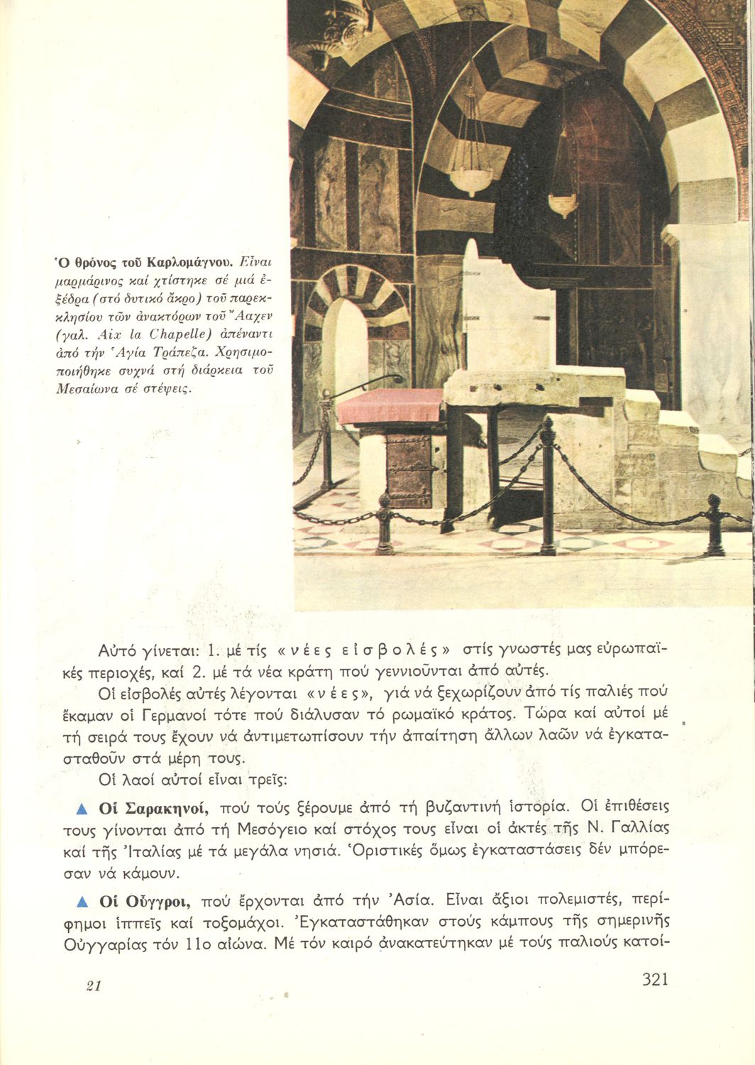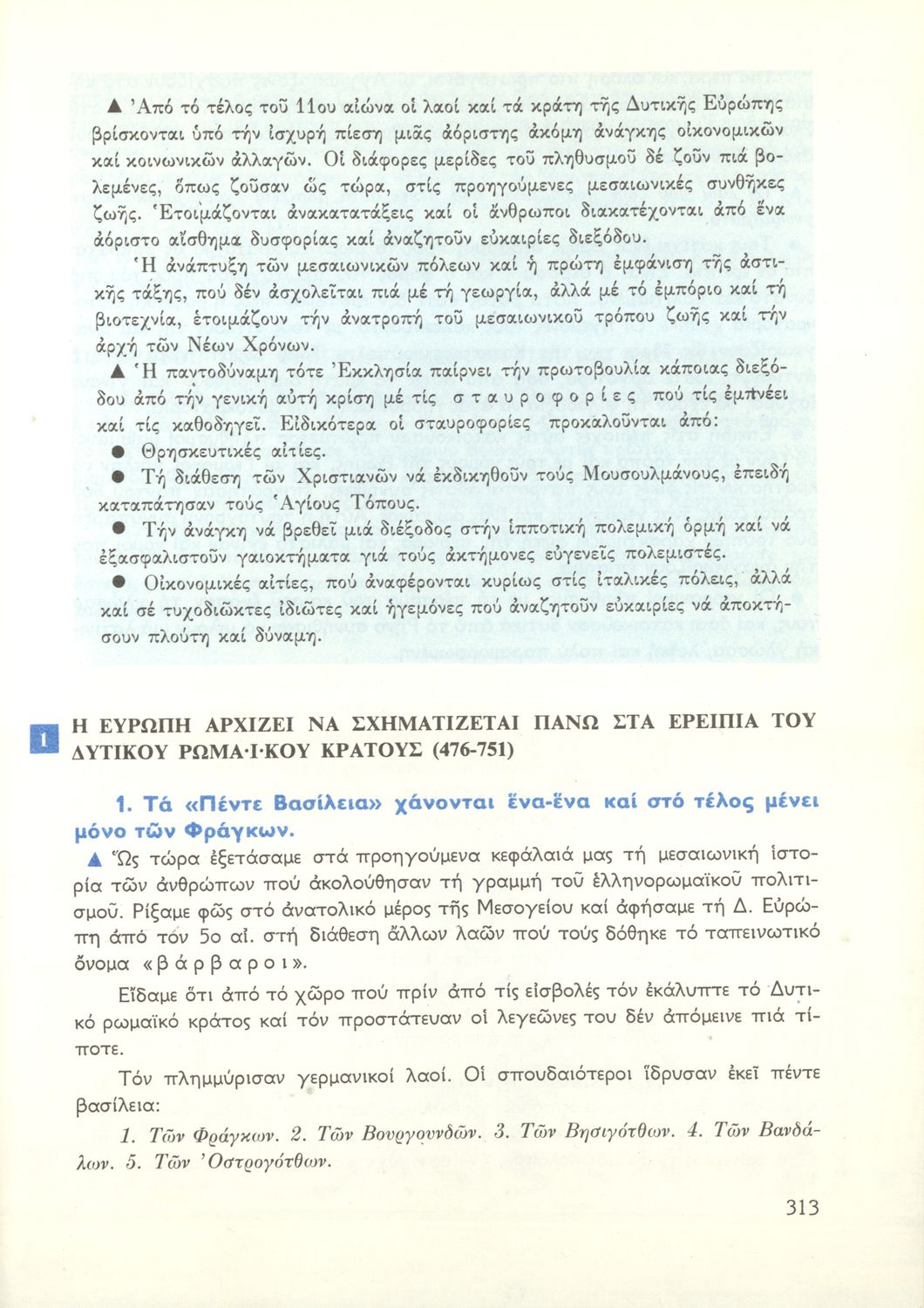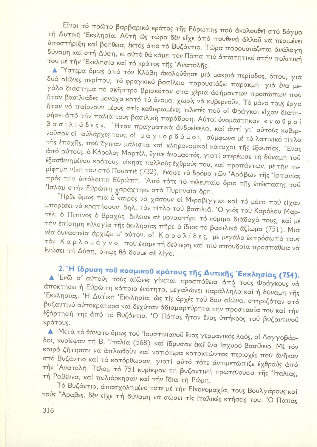 Σχολικό εγχειρίδιο Ιστορίας Β΄ Γυμνασίου που καλύπτει την περίοδο από την κατάληψη της Ελλάδας από τους Ρωμαίους ως την πτώση της Βυζαντινής Αυτοκρατορίας. Γίνεται ιδιαίτερη μνεία στο χριστιανικό και ελληνικό στοιχείο του Βυζαντίου. Προτείνει μια υλιστική ανάγνωση της Ιστορίας την οποία διαβάζει από την οπτική των κοινωνικών συγκρούσεων.