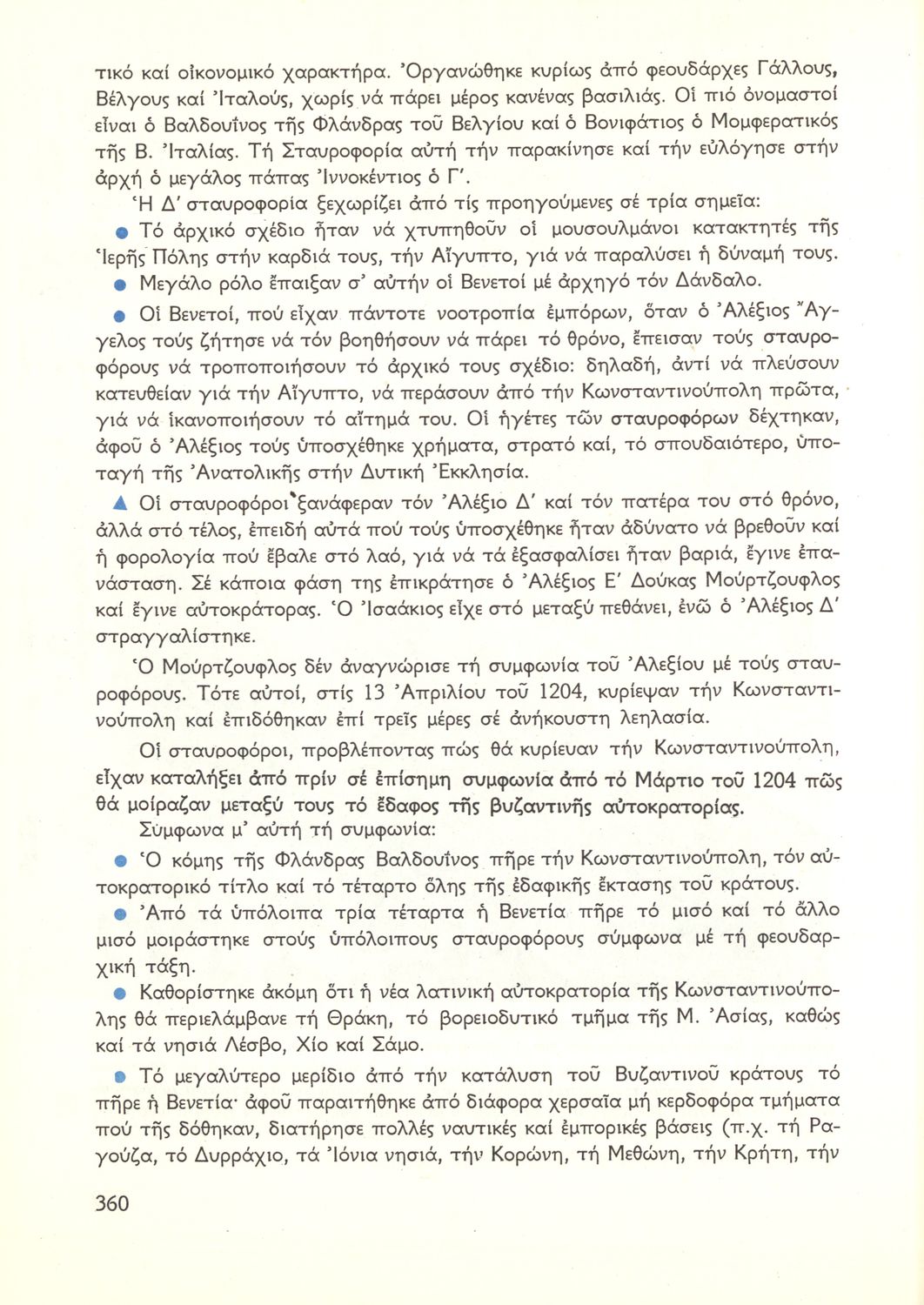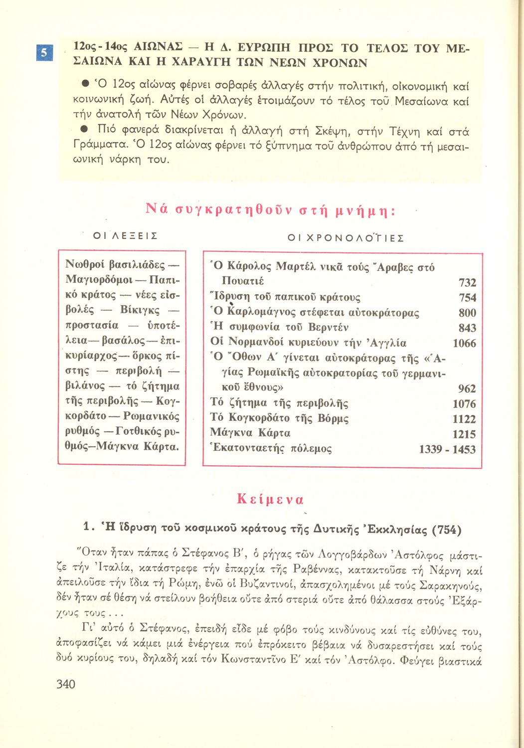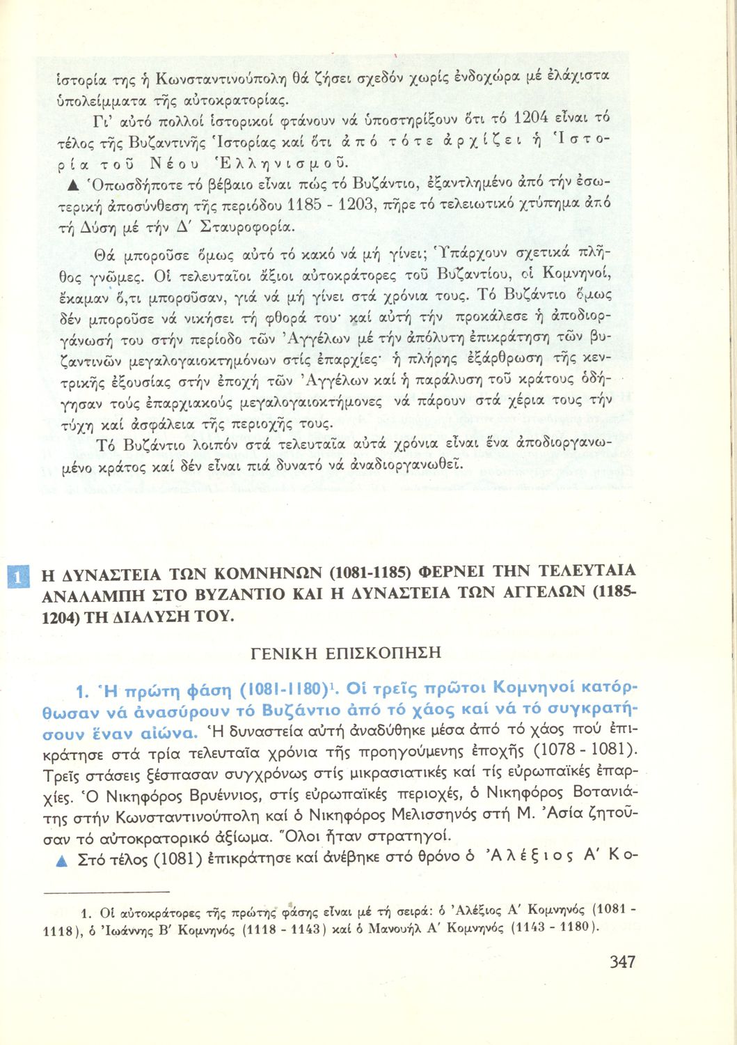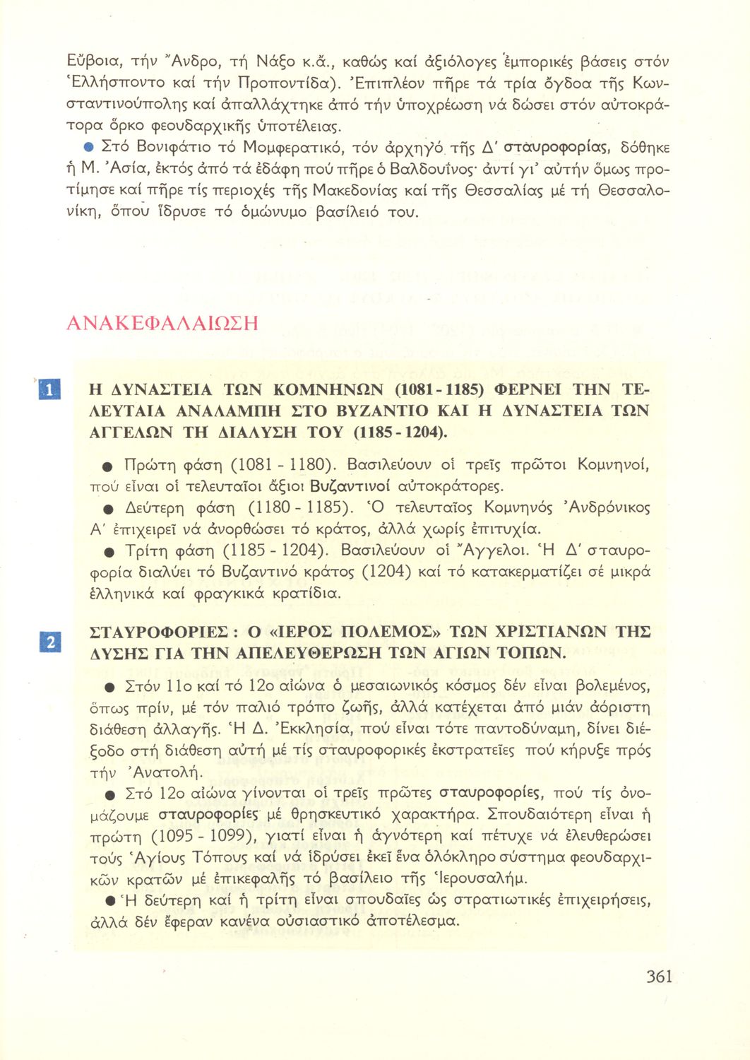 Σχολικό εγχειρίδιο Ιστορίας Β΄ Γυμνασίου που καλύπτει την περίοδο από την κατάληψη της Ελλάδας από τους Ρωμαίους ως την πτώση της Βυζαντινής Αυτοκρατορίας. Γίνεται ιδιαίτερη μνεία στο χριστιανικό και ελληνικό στοιχείο του Βυζαντίου. Προτείνει μια υλιστική ανάγνωση της Ιστορίας την οποία διαβάζει από την οπτική των κοινωνικών συγκρούσεων.