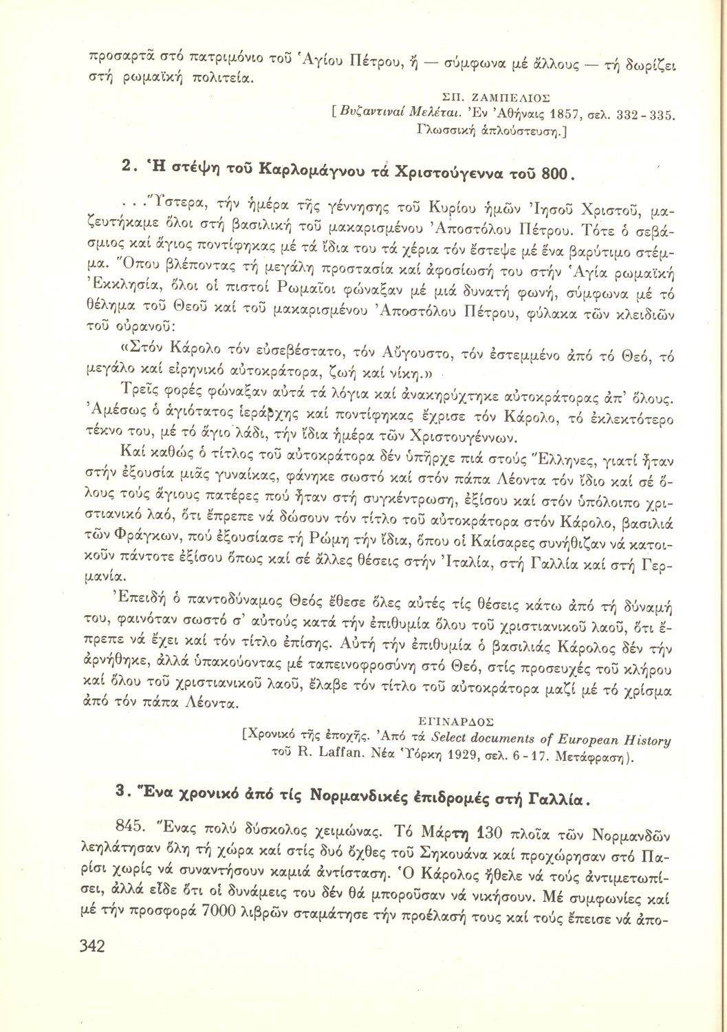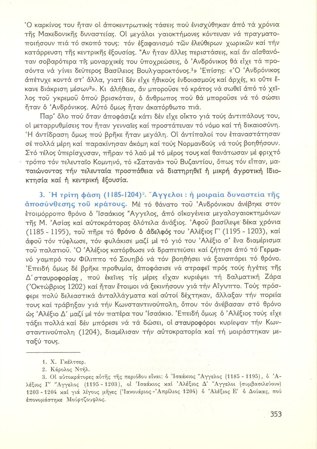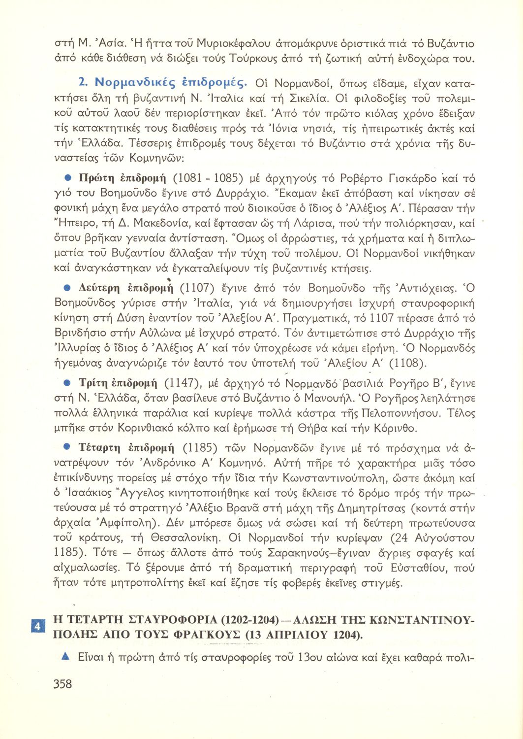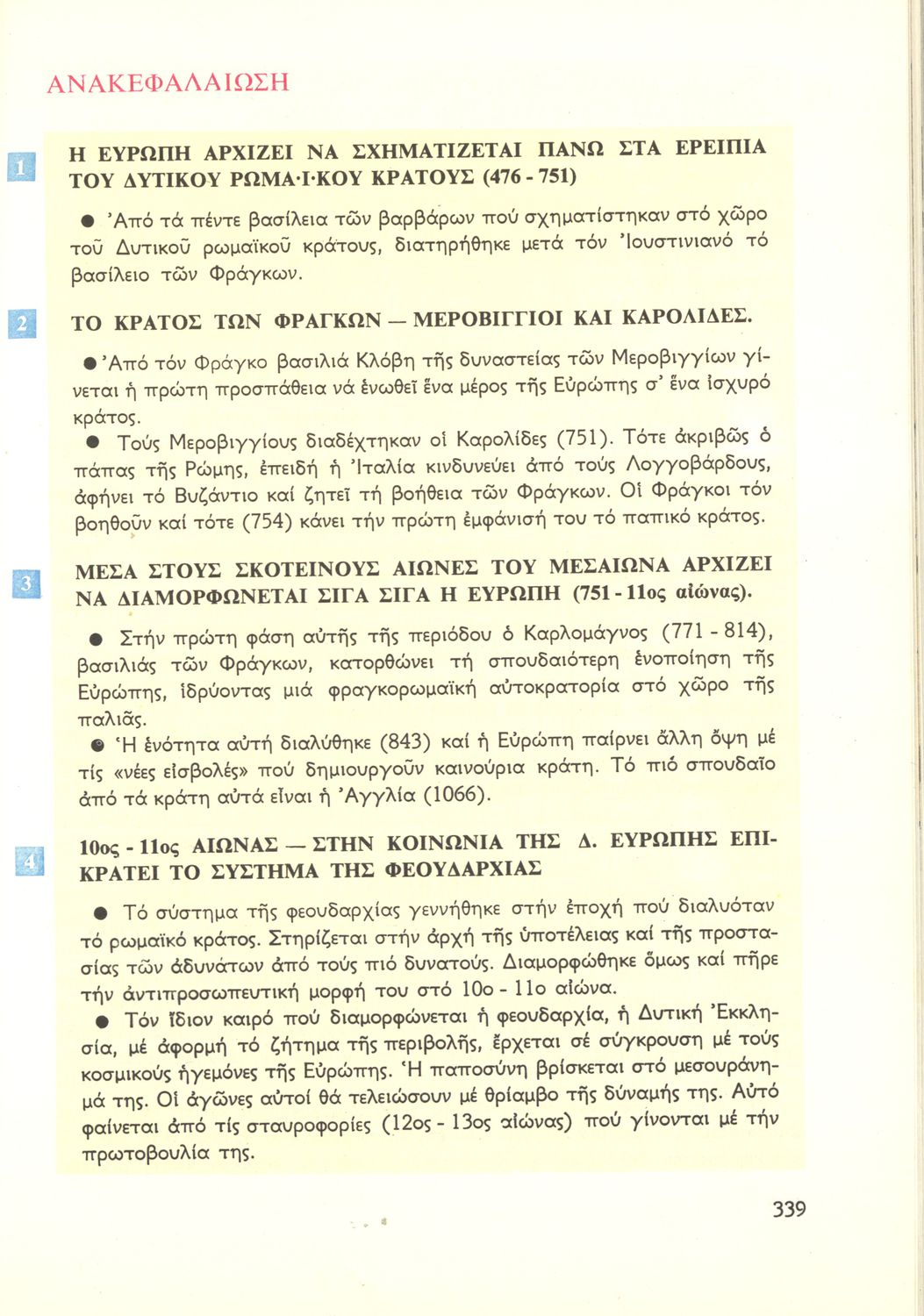 Σχολικό εγχειρίδιο Ιστορίας Β΄ Γυμνασίου που καλύπτει την περίοδο από την κατάληψη της Ελλάδας από τους Ρωμαίους ως την πτώση της Βυζαντινής Αυτοκρατορίας. Γίνεται ιδιαίτερη μνεία στο χριστιανικό και ελληνικό στοιχείο του Βυζαντίου. Προτείνει μια υλιστική ανάγνωση της Ιστορίας την οποία διαβάζει από την οπτική των κοινωνικών συγκρούσεων.
