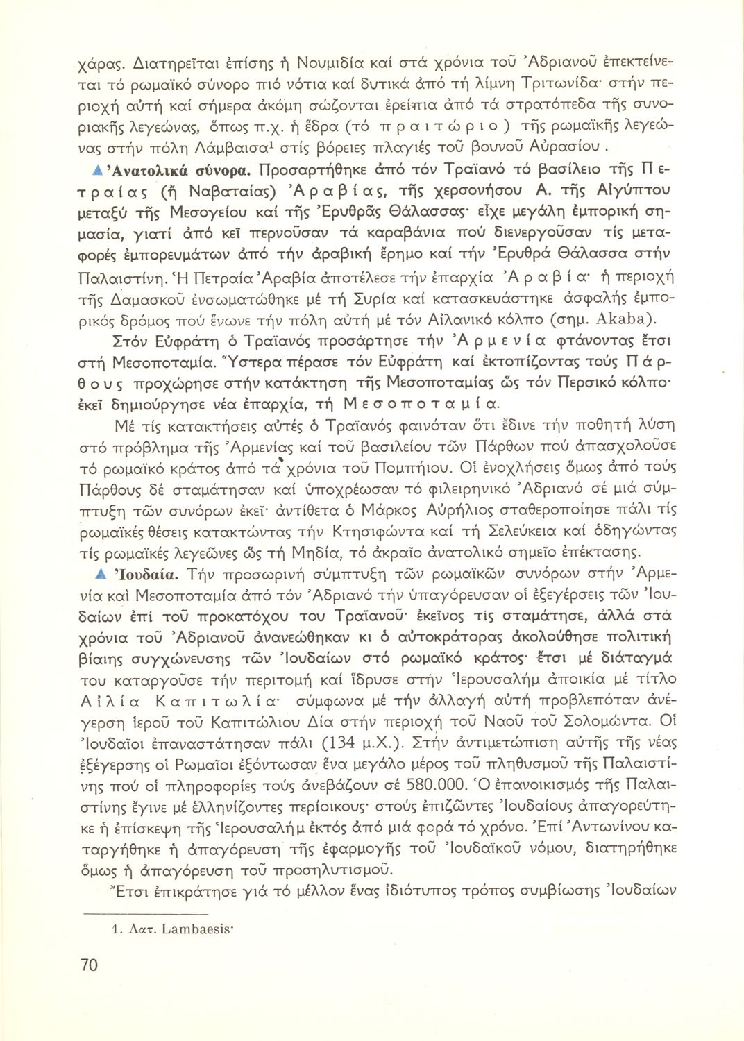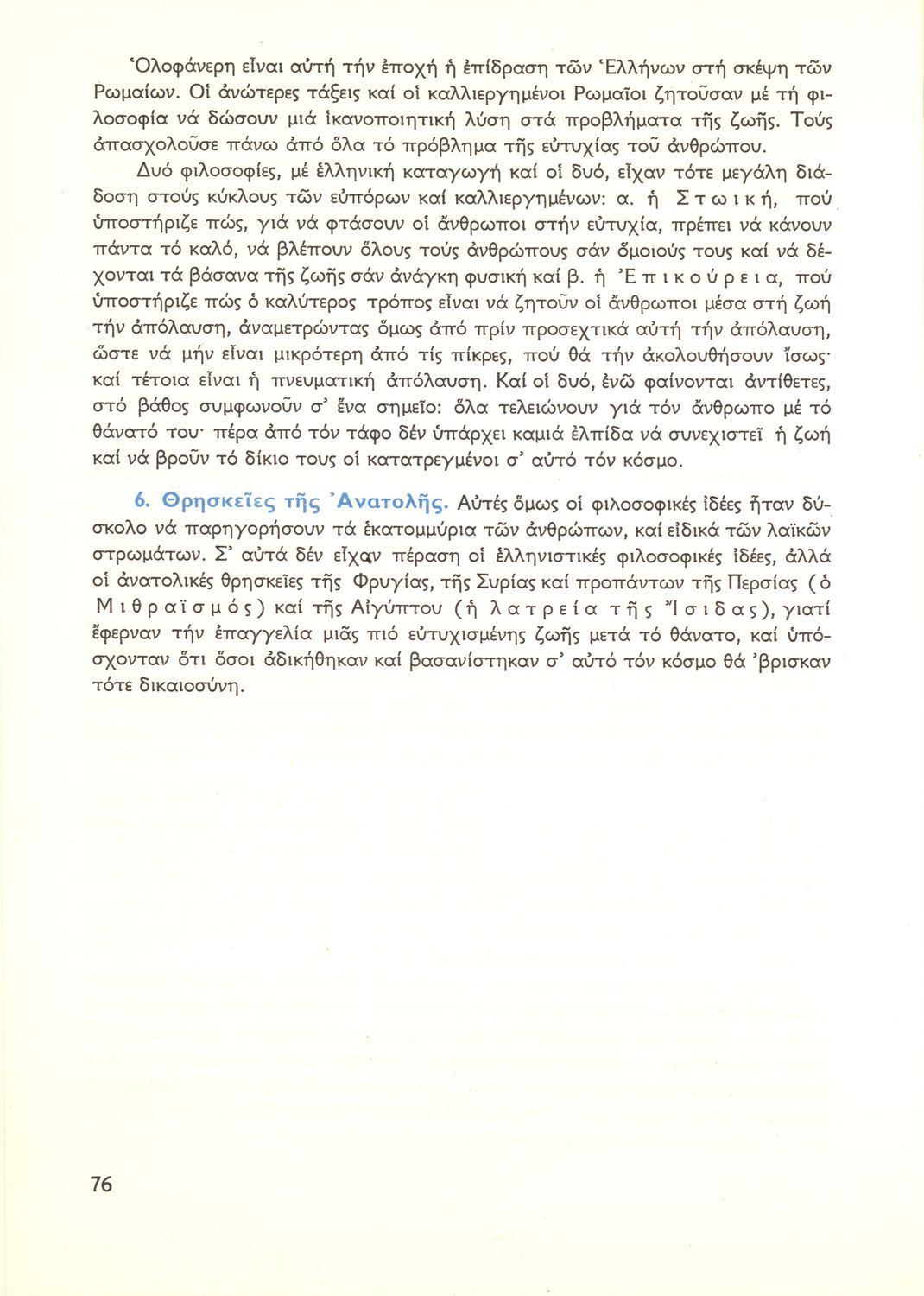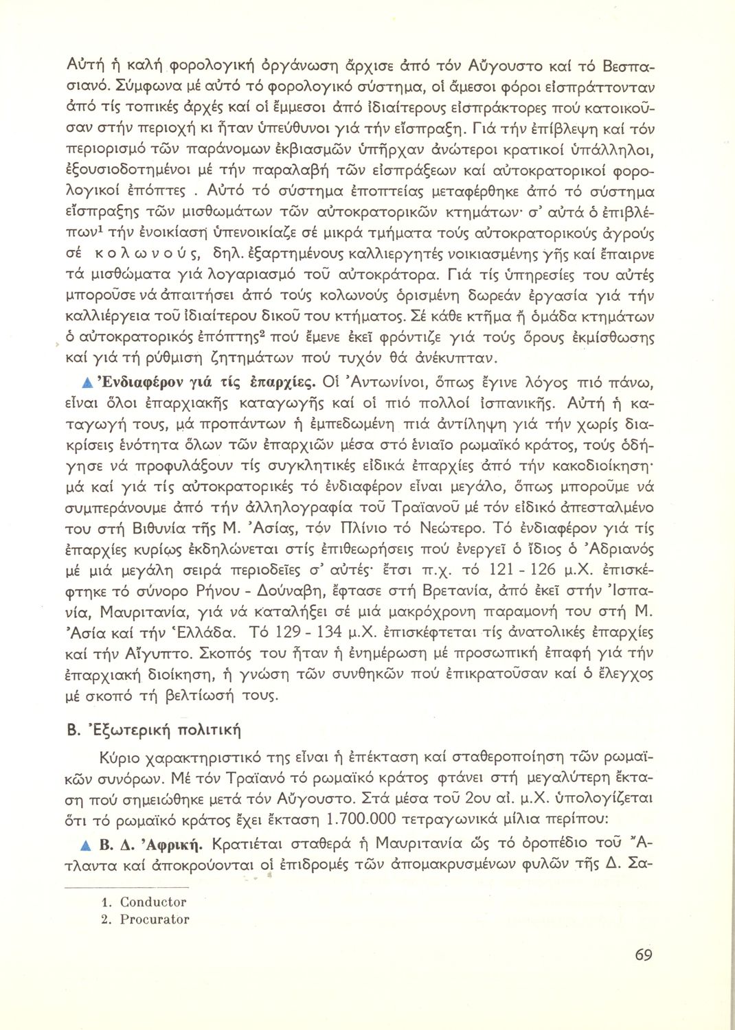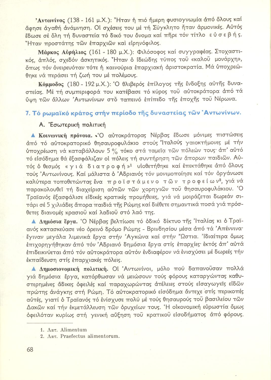 Σχολικό εγχειρίδιο Ιστορίας Β΄ Γυμνασίου που καλύπτει την περίοδο από την κατάληψη της Ελλάδας από τους Ρωμαίους ως την πτώση της Βυζαντινής Αυτοκρατορίας. Γίνεται ιδιαίτερη μνεία στο χριστιανικό και ελληνικό στοιχείο του Βυζαντίου. Προτείνει μια υλιστική ανάγνωση της Ιστορίας την οποία διαβάζει από την οπτική των κοινωνικών συγκρούσεων.