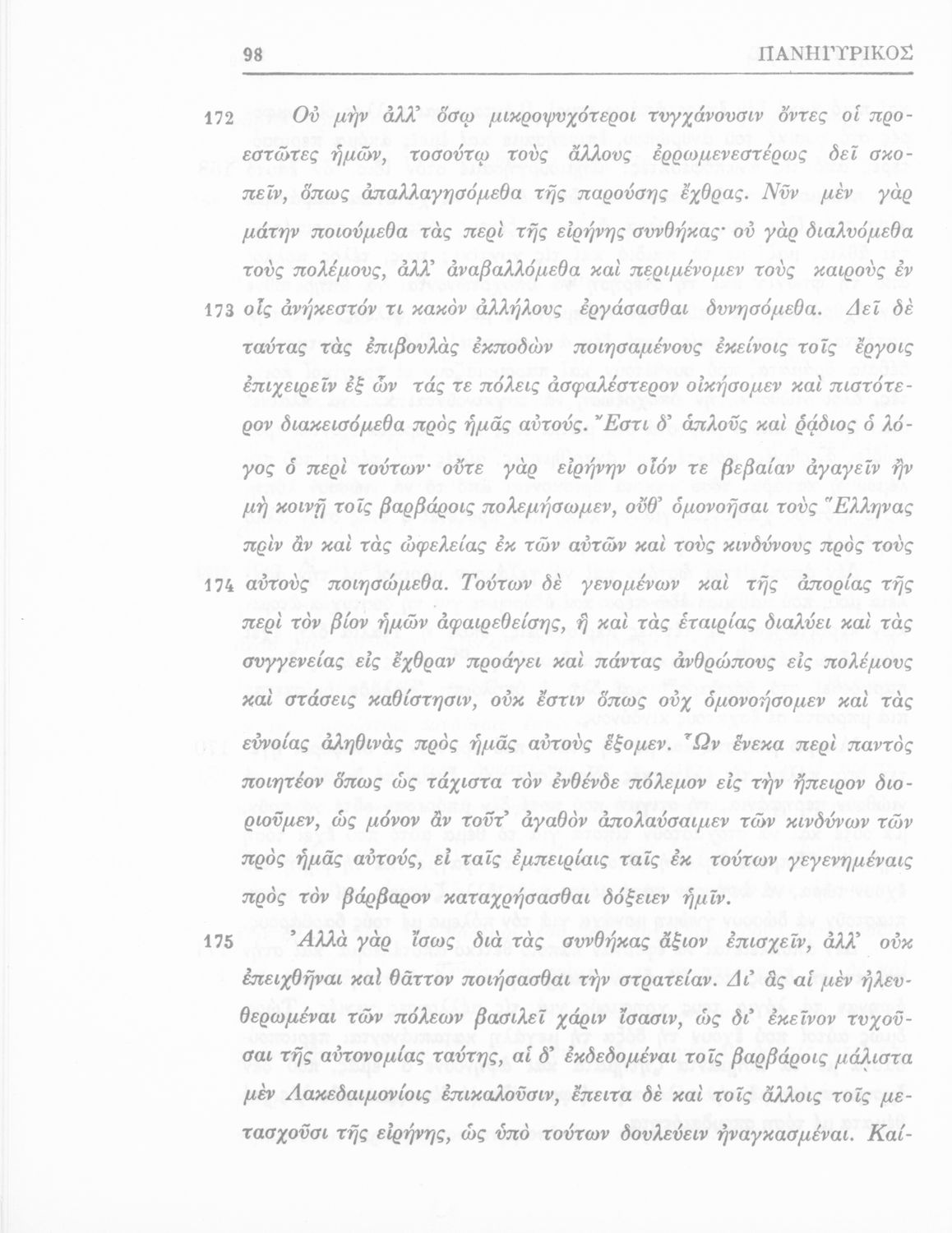 Σχολικό εγχειρίδιο Αρχαίων Ελληνικών Α΄ Λυκείου που περιλαμβάνει εισαγωγή στη ζωή και το έργο του Ισοκράτη, τον Πανηγυρικό, μετάφραση και ερμηνευτικές σημειώσεις.