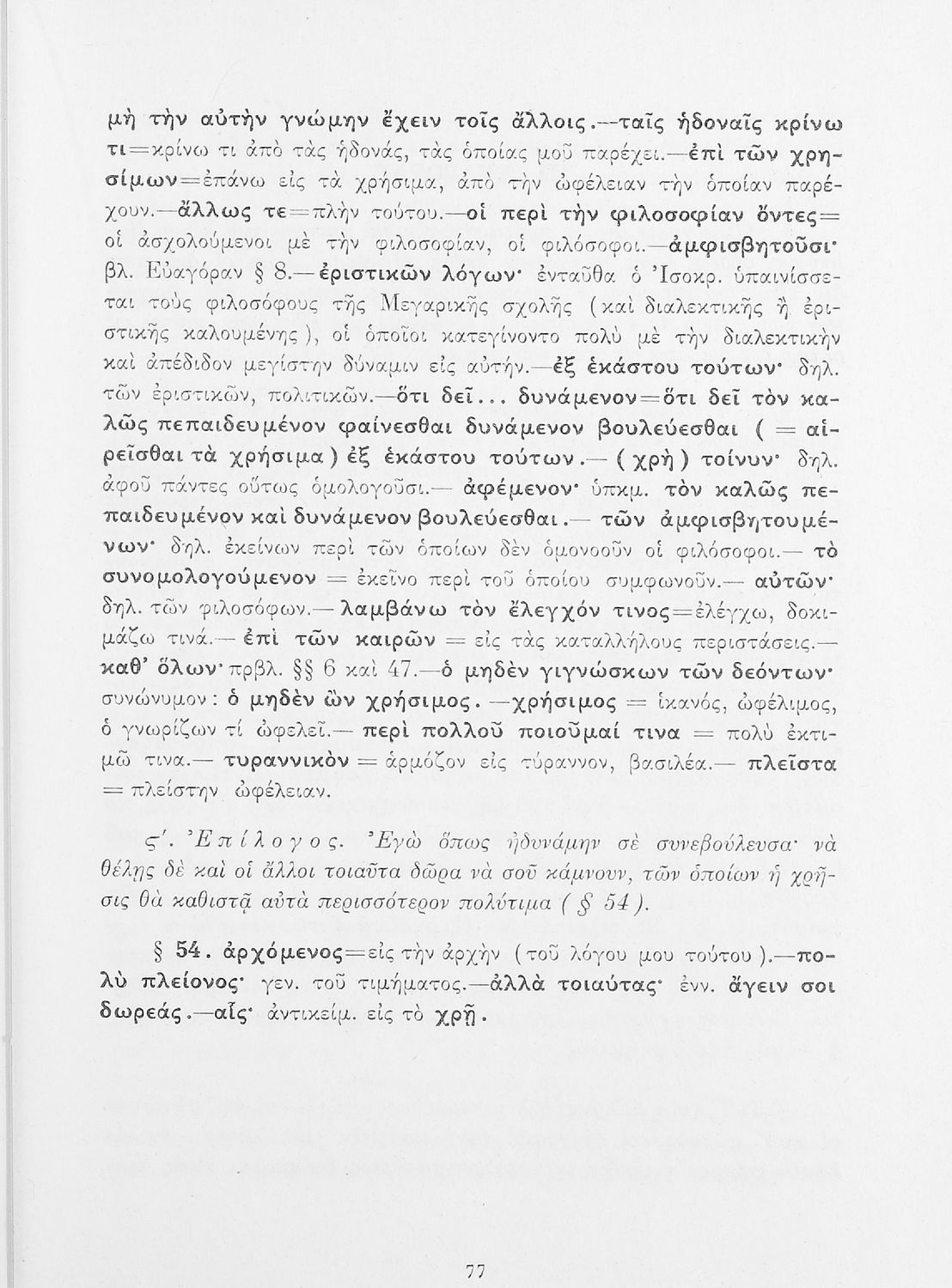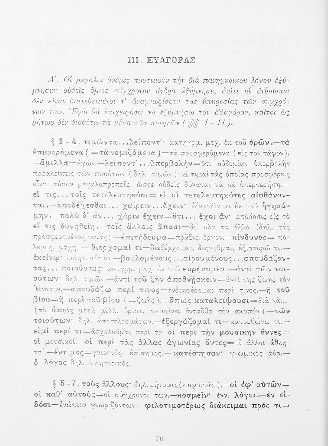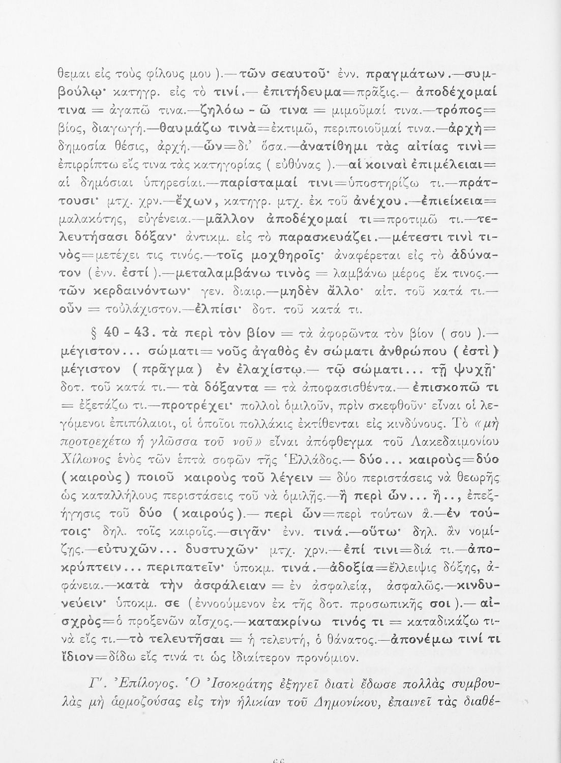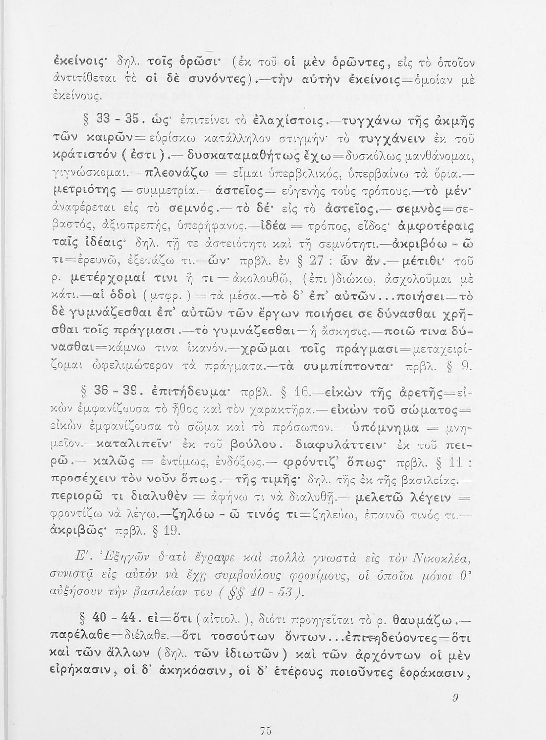 Σχολικό εγχειρίδιο Αρχαίων Ελληνικών που περιλαμβάνει εισαγωγή στη ζωή και το έργο του Ισοκράτη,τους Λόγους του Προς Δημόνικον, Προς Νικοκλέα και Ευαγόρας, και ερμηνευτικές σημειώσεις.