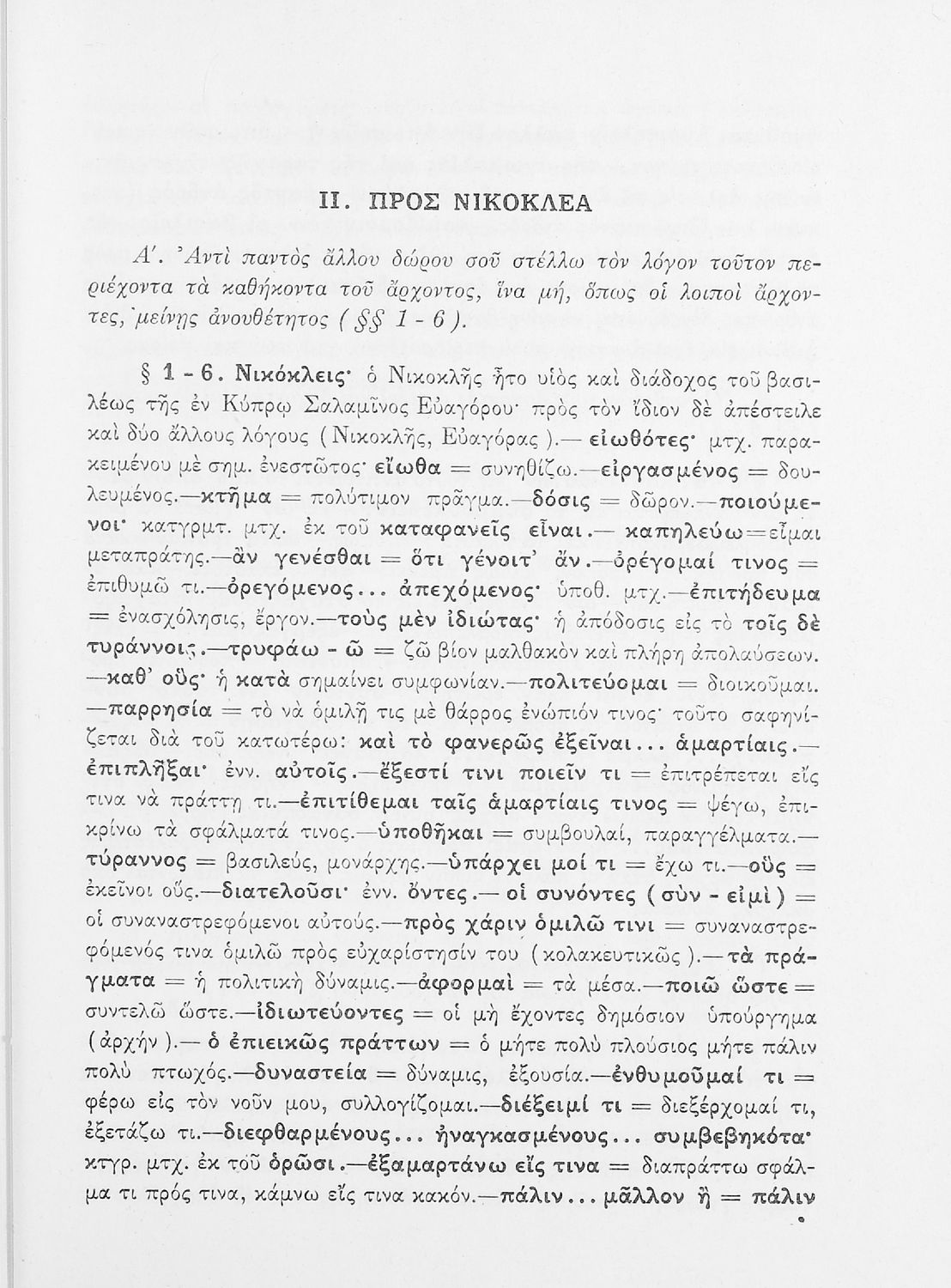 Μαθητικό βοήθημα Αρχαίων Ελληνικών που περιέχει τους Λόγους του Ισοκράτη Προς Δημόνικον και Προς Νικοκλέα, ερμηνευτικά και πραγματολογικά σχόλια και λεξιλογικές παρατηρήσεις.