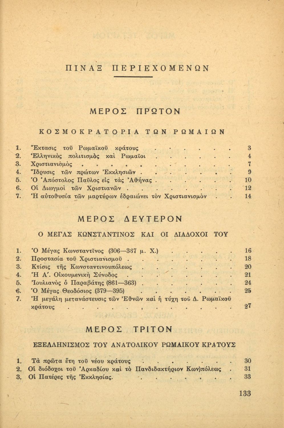Μαθητικό βοήθημα Ιστορίας Δ΄ Δημοτικού που καλύπτει την περίοδο της Ρωμαϊκής και Βυζαντινής Αυτοκρατορίας μέχρι και την άλωση της Κωνσταντινούπολης. Ο συγγραφέας ήταν επιθεωρητής Δημοτικών Σχολείων.