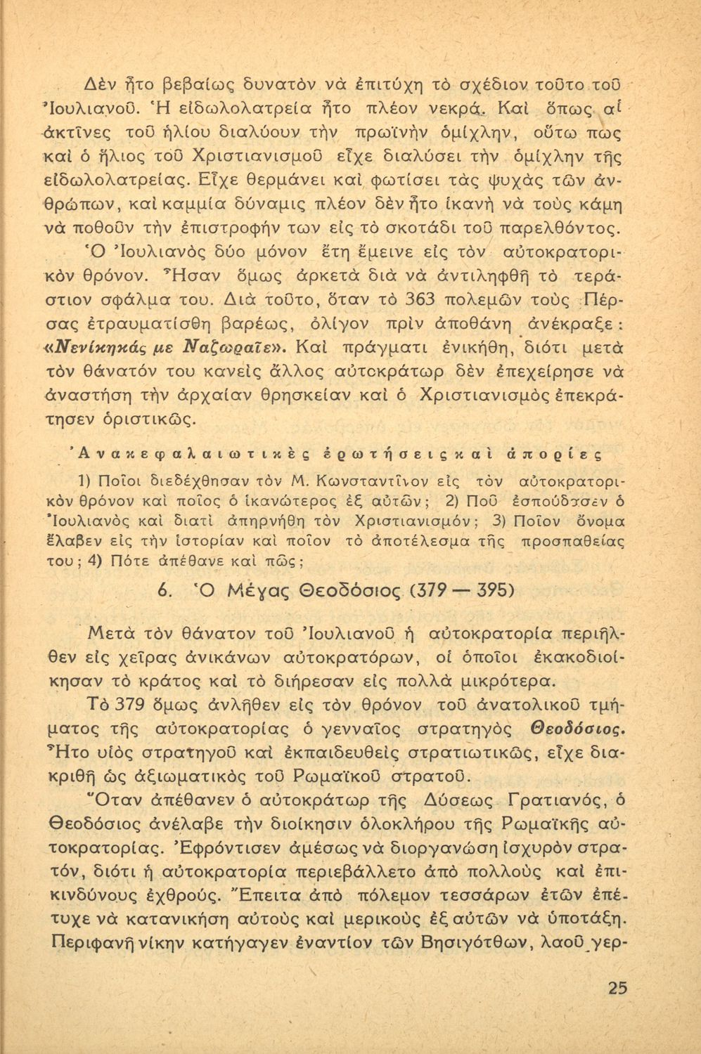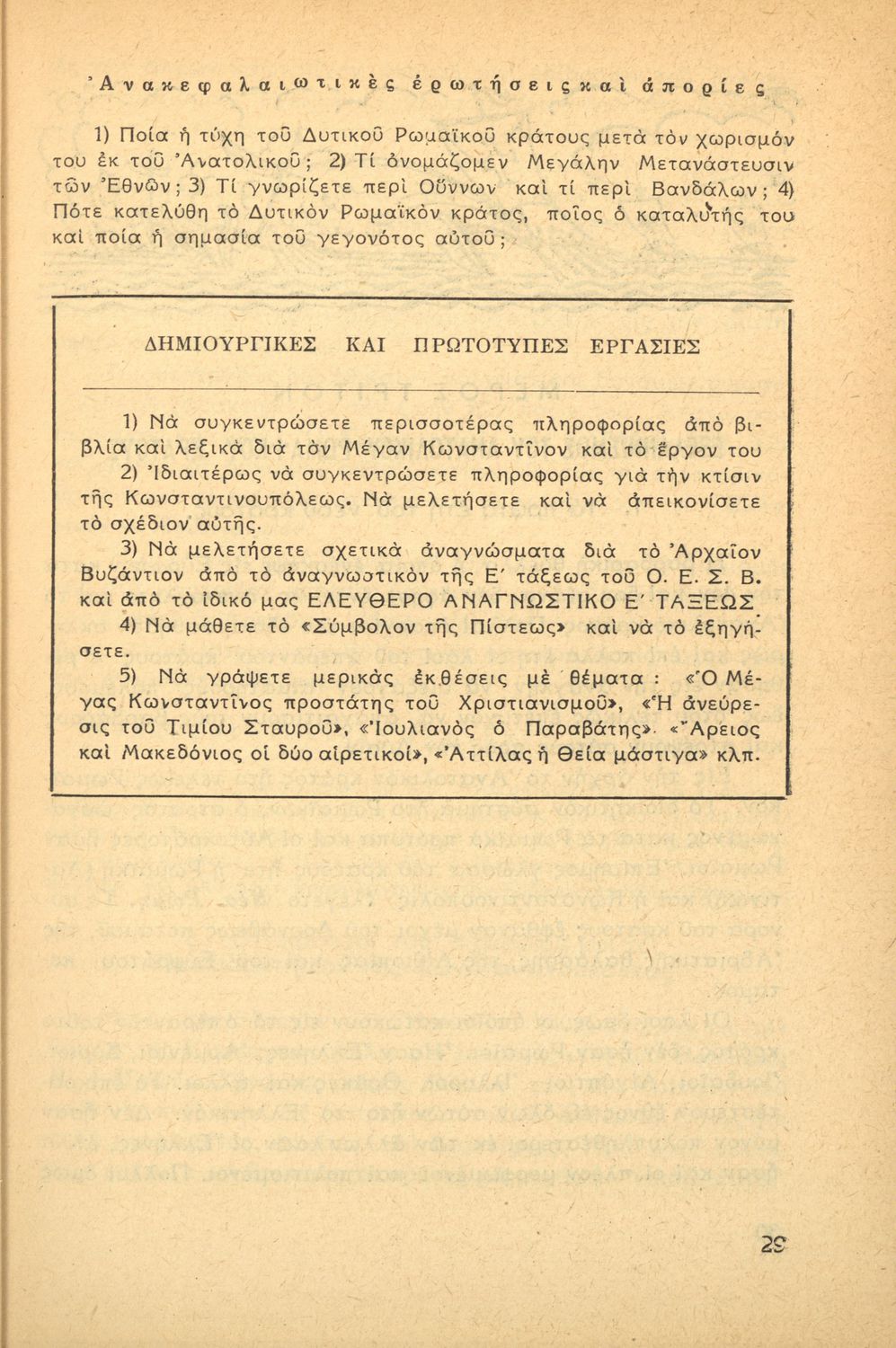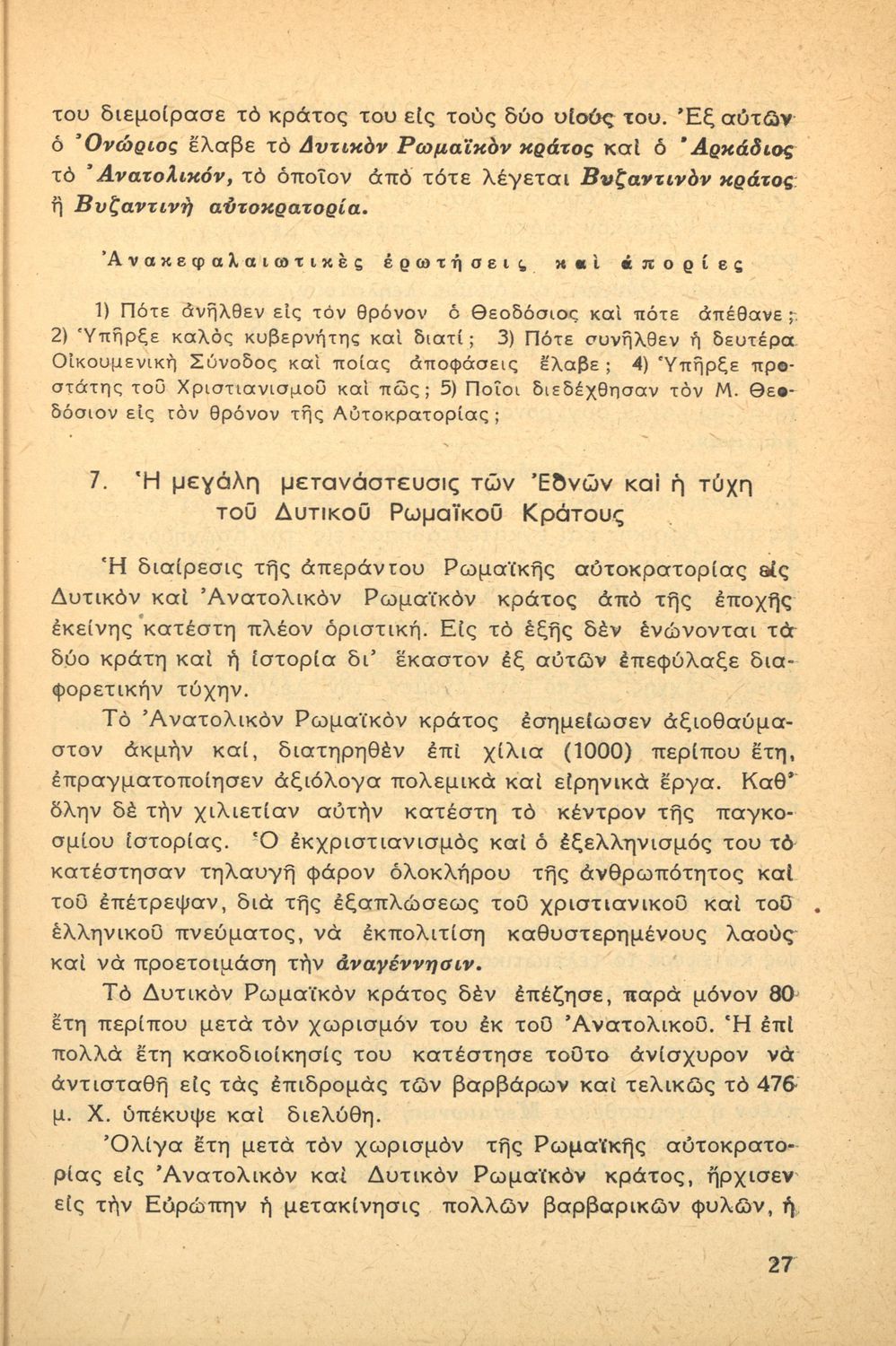 Μαθητικό βοήθημα Ιστορίας Δ΄ Δημοτικού που καλύπτει την περίοδο της Ρωμαϊκής και Βυζαντινής Αυτοκρατορίας μέχρι και την άλωση της Κωνσταντινούπολης. Ο συγγραφέας ήταν επιθεωρητής Δημοτικών Σχολείων.