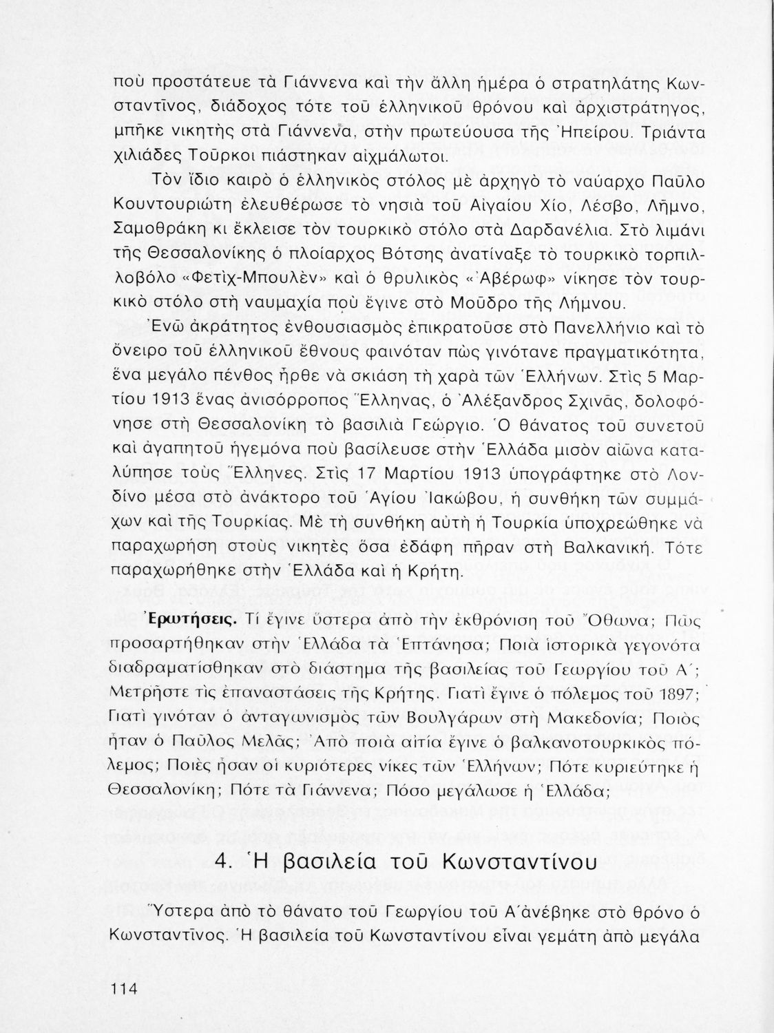 Σχολικό εγχειρίδιο Ιστορίας ΣΤ΄ Δημοτικού που καλύπτει την περίοδο από την άλωση της Κωνσταντινούπολης ως τη βασιλεία του Γεώργιου του Β' .