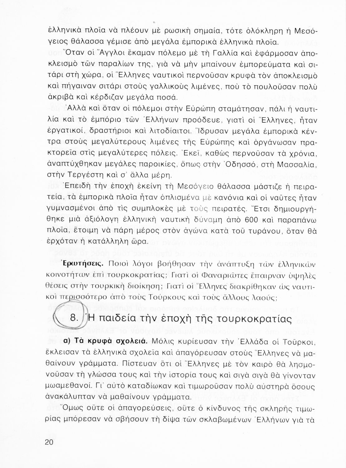 Βαθμίδα εκπαίδευσης: Πρωτοβάθμια Τάξη: ΣΤ' Δημοτικού Μάθημα: Ιστορία Γλώσσα: Δημοτική Παρουσίαση περιεχομένου: Σχολικό εγχειρίδιο Ιστορίας ΣΤ΄ Δημοτικού που καλύπτει την περίοδο από την άλωση της Κωνσταντινούπολης ως τη βασιλεία του Γεώργιου του Β' . |