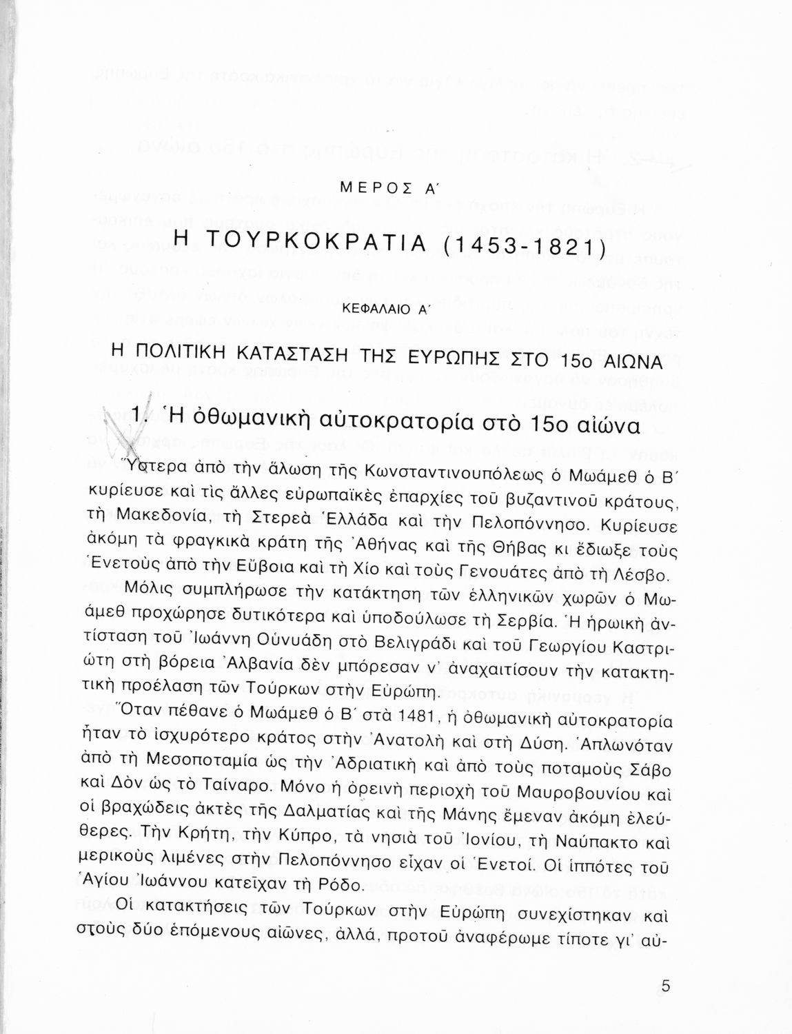 Σχολικό εγχειρίδιο Ιστορίας ΣΤ΄ Δημοτικού που καλύπτει την περίοδο από την άλωση της Κωνσταντινούπολης ως τη βασιλεία του Γεώργιου του Β' .