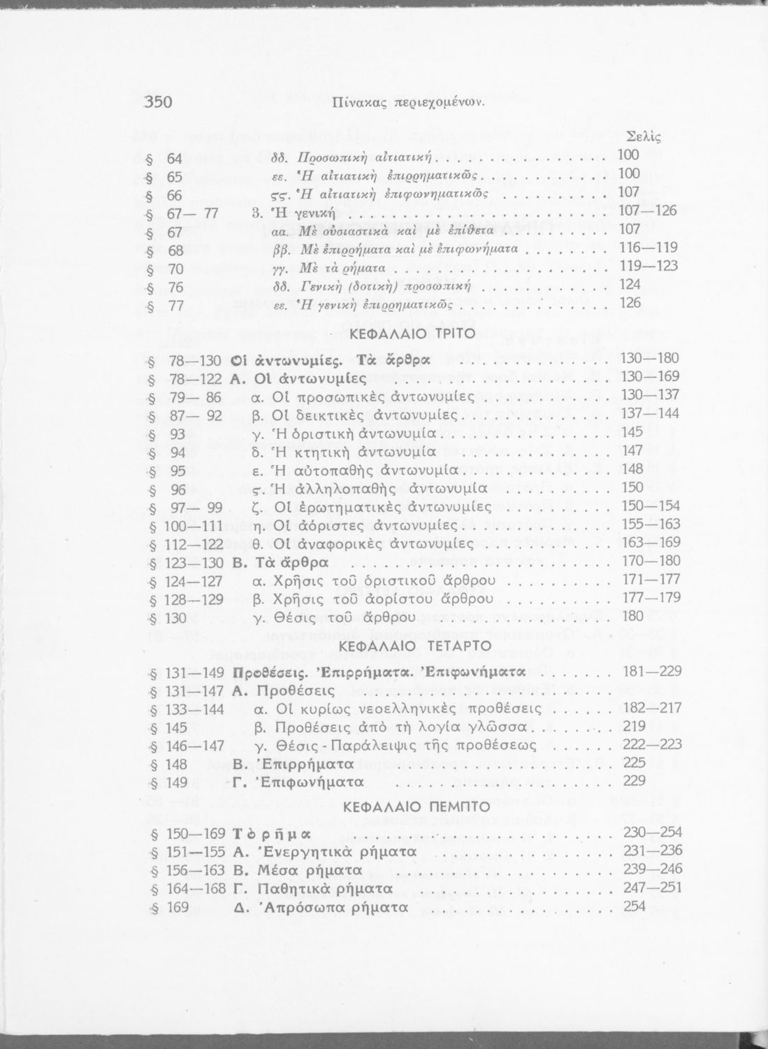 Σχολικό εγχειρίδιο Συντακτικού που γράφηκε από επιτροπή Καθηγητών που ορίστηκε από το Υπουργείο των Θρησκευμάτων και της Εθνικής Παιδείας. Περιλαμβάνει κανόνες και παραδείγματα του συντακτικού της Δημοτικής.