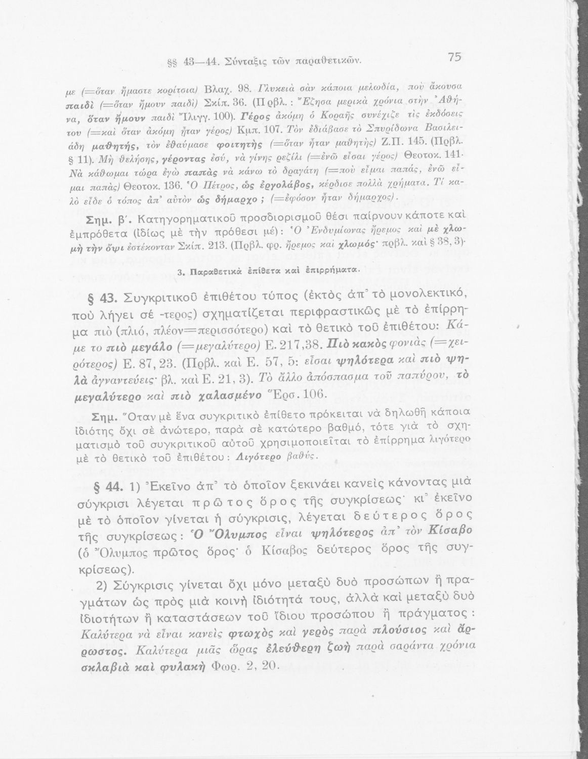 Σχολικό εγχειρίδιο Συντακτικού που γράφηκε από επιτροπή Καθηγητών που ορίστηκε από το Υπουργείο των Θρησκευμάτων και της Εθνικής Παιδείας. Περιλαμβάνει κανόνες και παραδείγματα του συντακτικού της Δημοτικής.