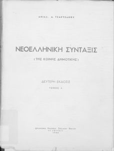 Σχολικό εγχειρίδιο Νέων Ελληνικών που παρουσιάζει το συντακτικό της κοινής δημοτικής μέσα από κανόνες και παραδείγματα.