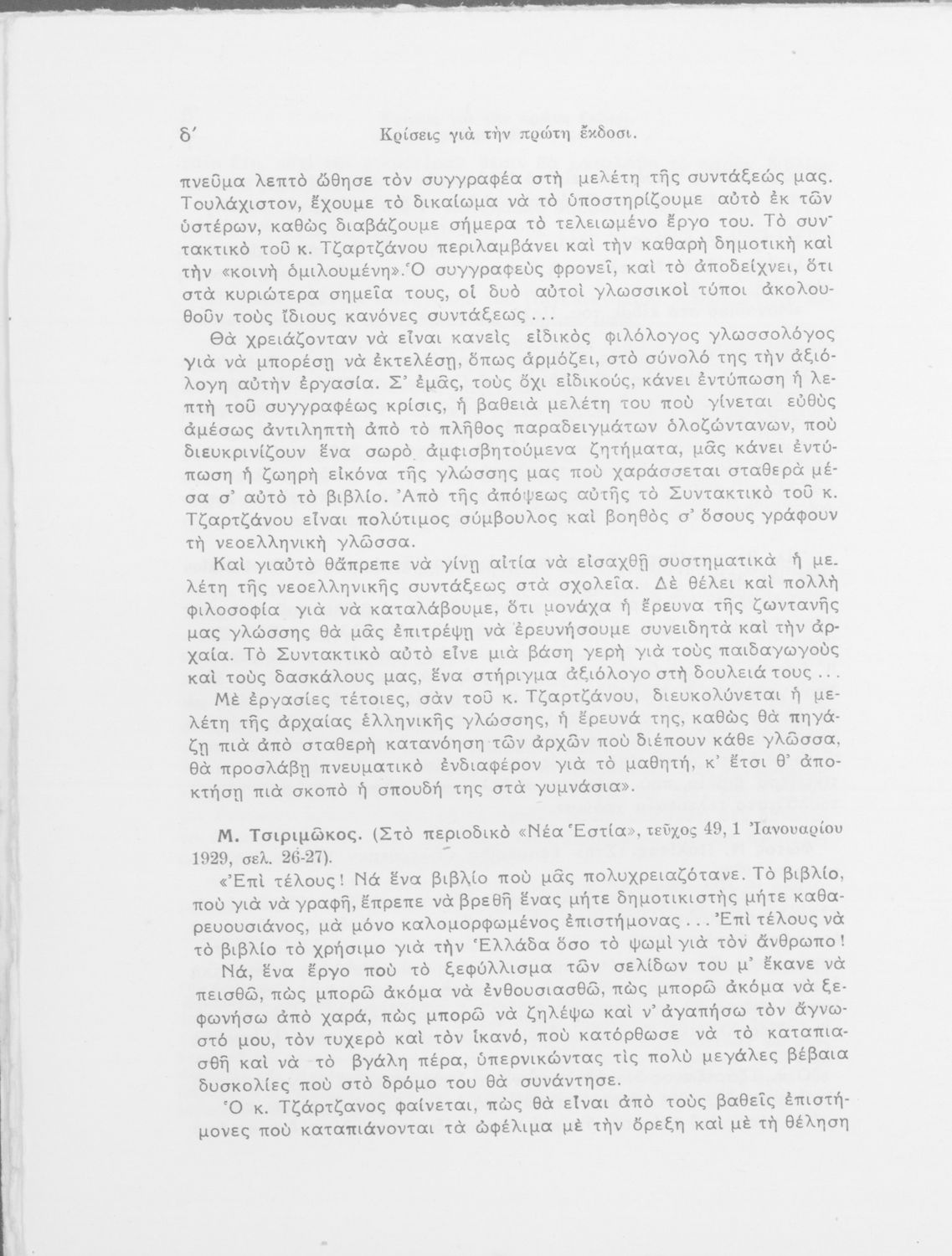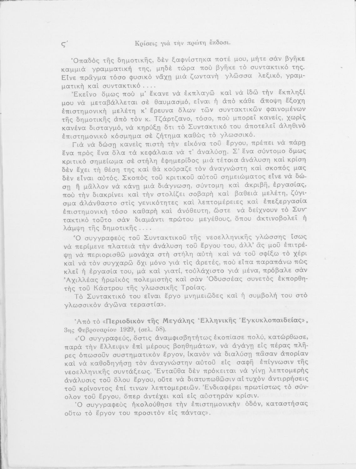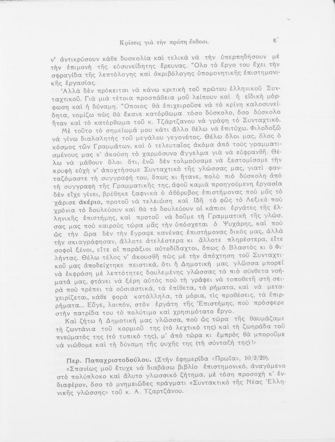 Κωδικός αναγνώρισης: 01-17088 Τίτλος: Νεοελληνική Σύνταξις (της κοινής Δημοτικής), Τόμος Α΄ Συγγραφέας: Αχιλλέας Α. Τζάρτζανος Μέγεθος και υπόστρωμα: Σχολικό εγχειρίδιο, 22εκ., σκληρό εξώφυλλο, 351 σελίδες. |