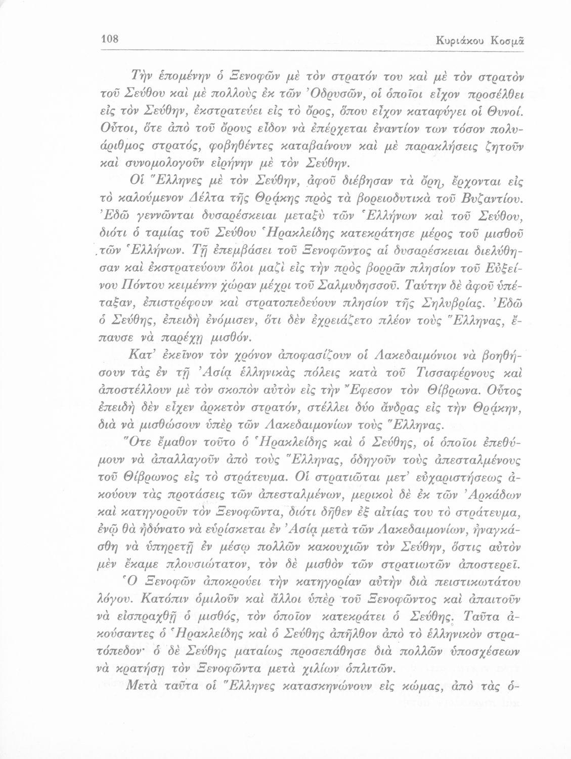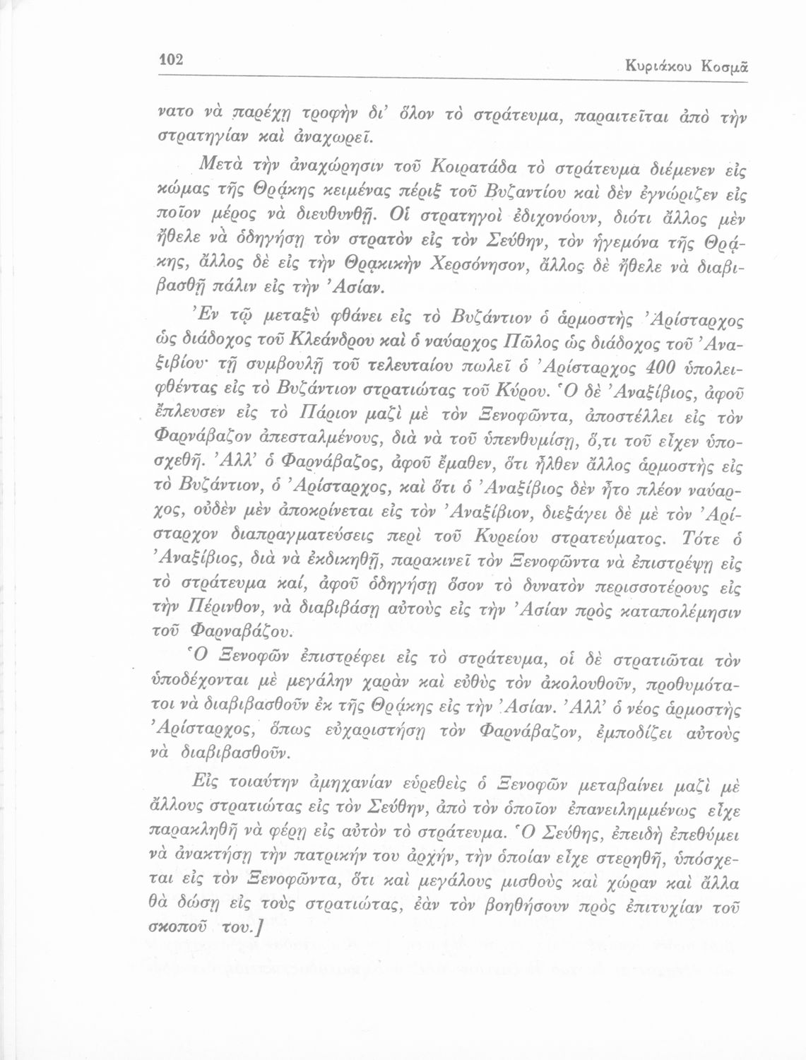 Ξενοφών, Κυριάκος Κοσμάς (σχόλια)