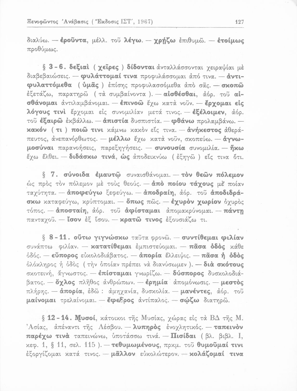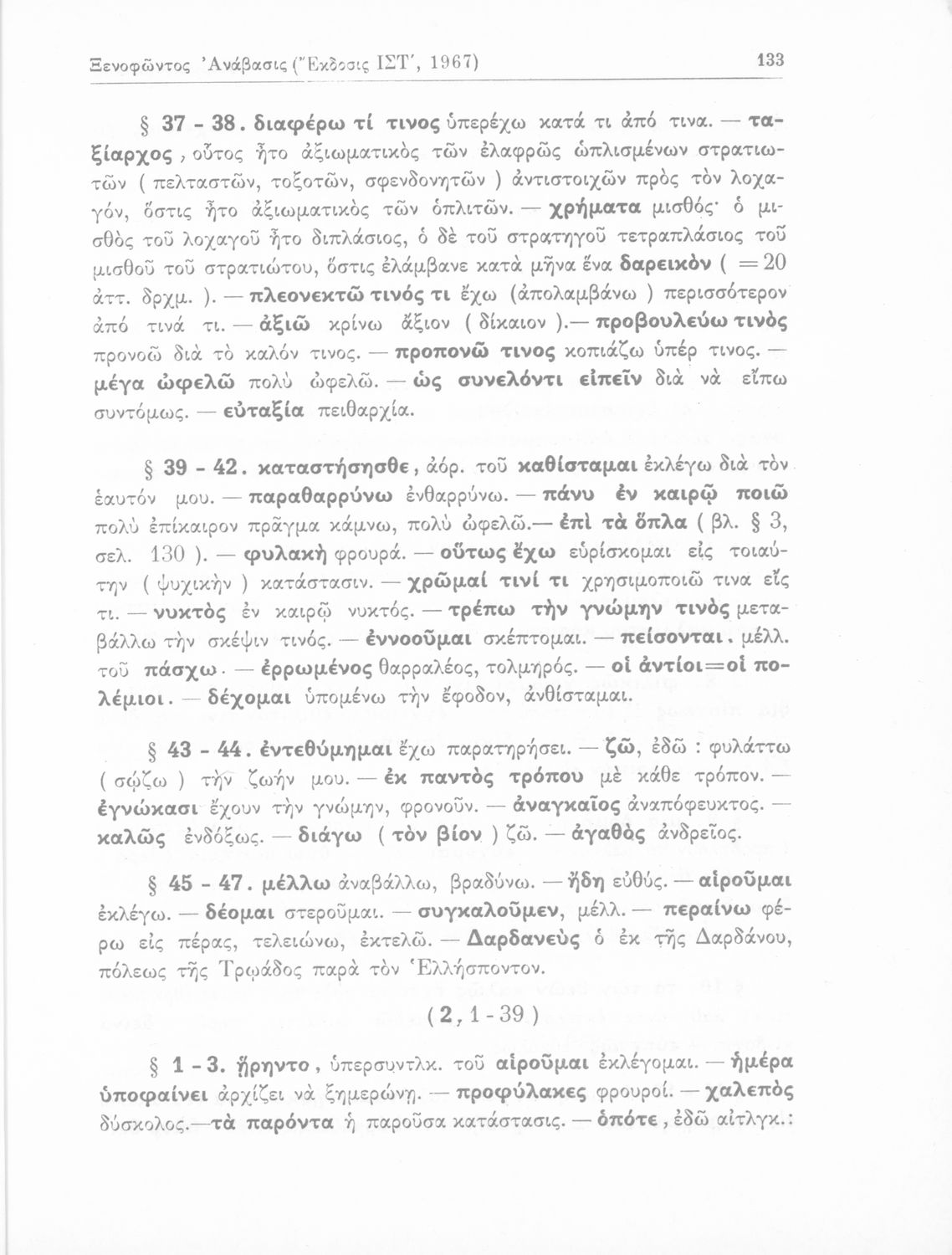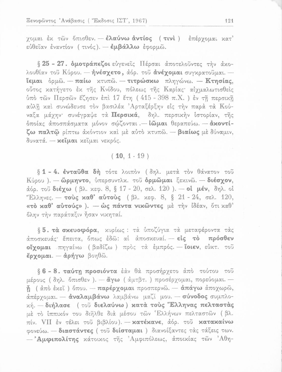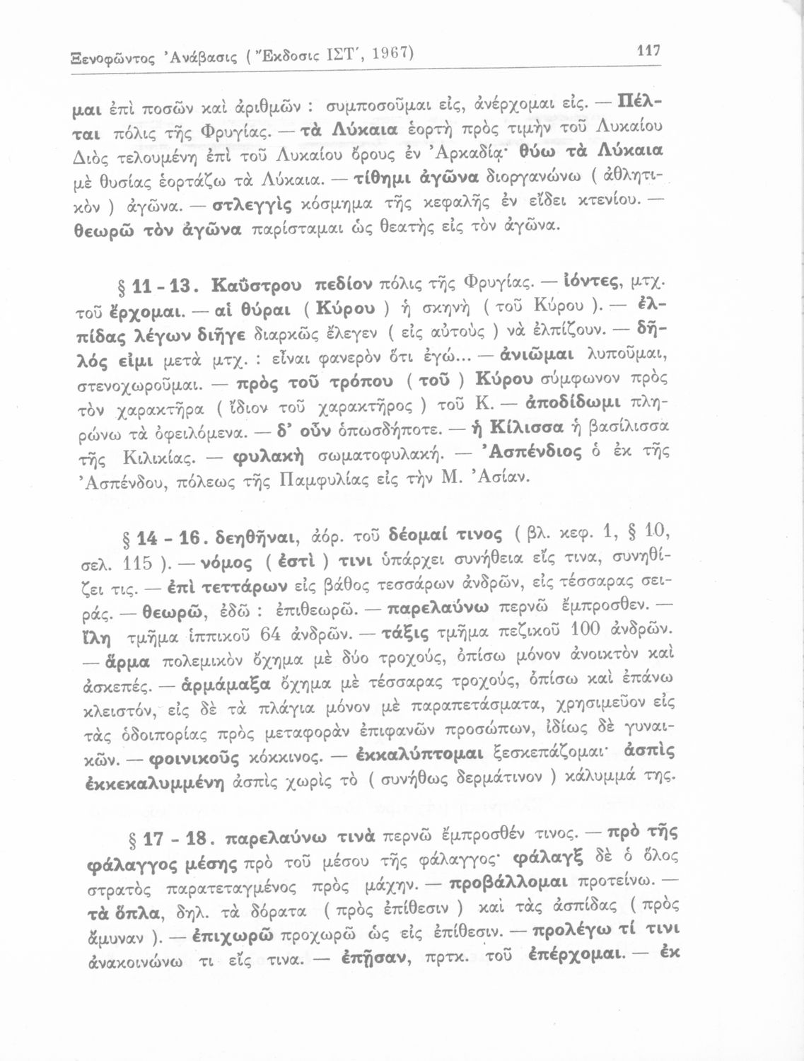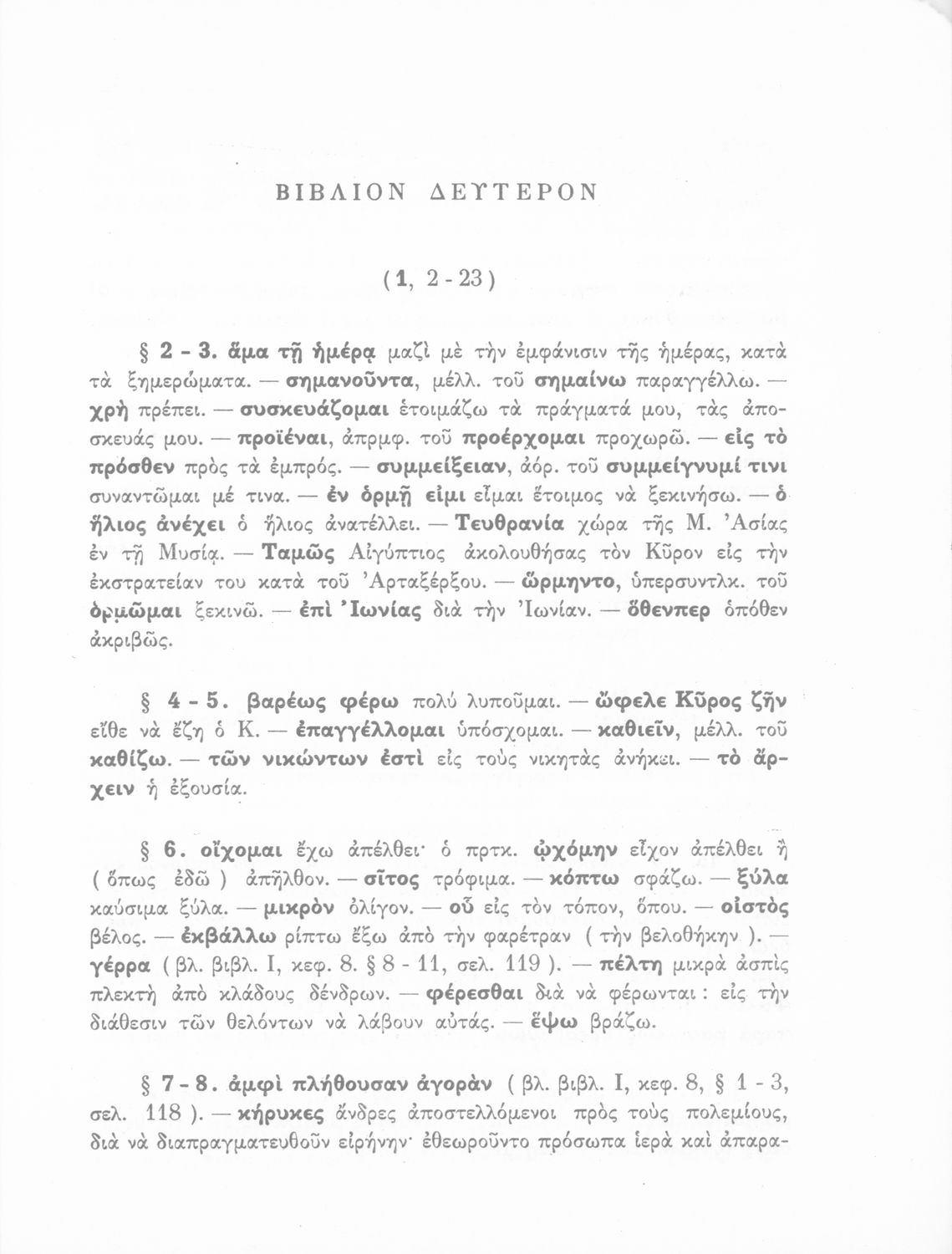 Σχολικό εγχειρίδιο Αρχαίων Ελληνικών Β΄ Γυμνασίου που περιλαμβάνει αποσπάσματα από το έργο του Ξενοφώντα Κύρου Ανάβασις, ερμηνευτικές σημειώσεις και πραγματολογικά σχόλια.