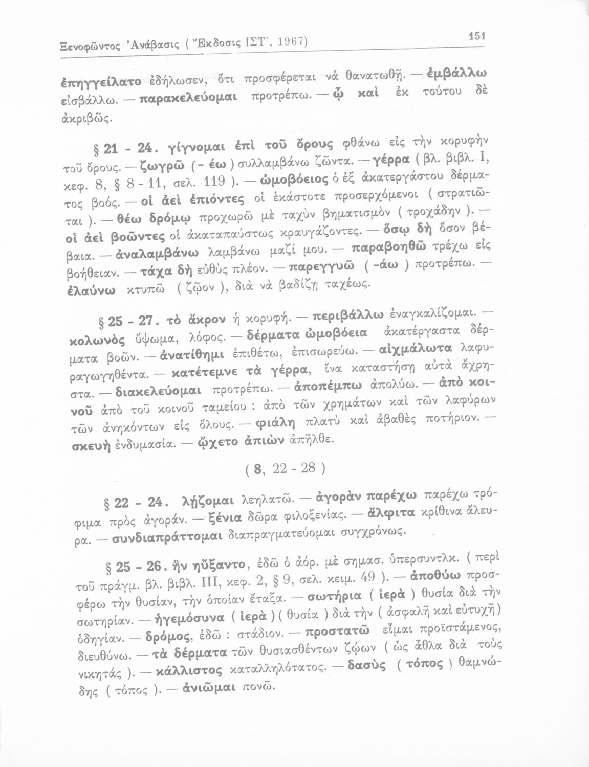 Σχολικό εγχειρίδιο Αρχαίων Ελληνικών Β΄ Γυμνασίου που περιλαμβάνει αποσπάσματα από το έργο του Ξενοφώντα Κύρου Ανάβασις, ερμηνευτικές σημειώσεις και πραγματολογικά σχόλια.