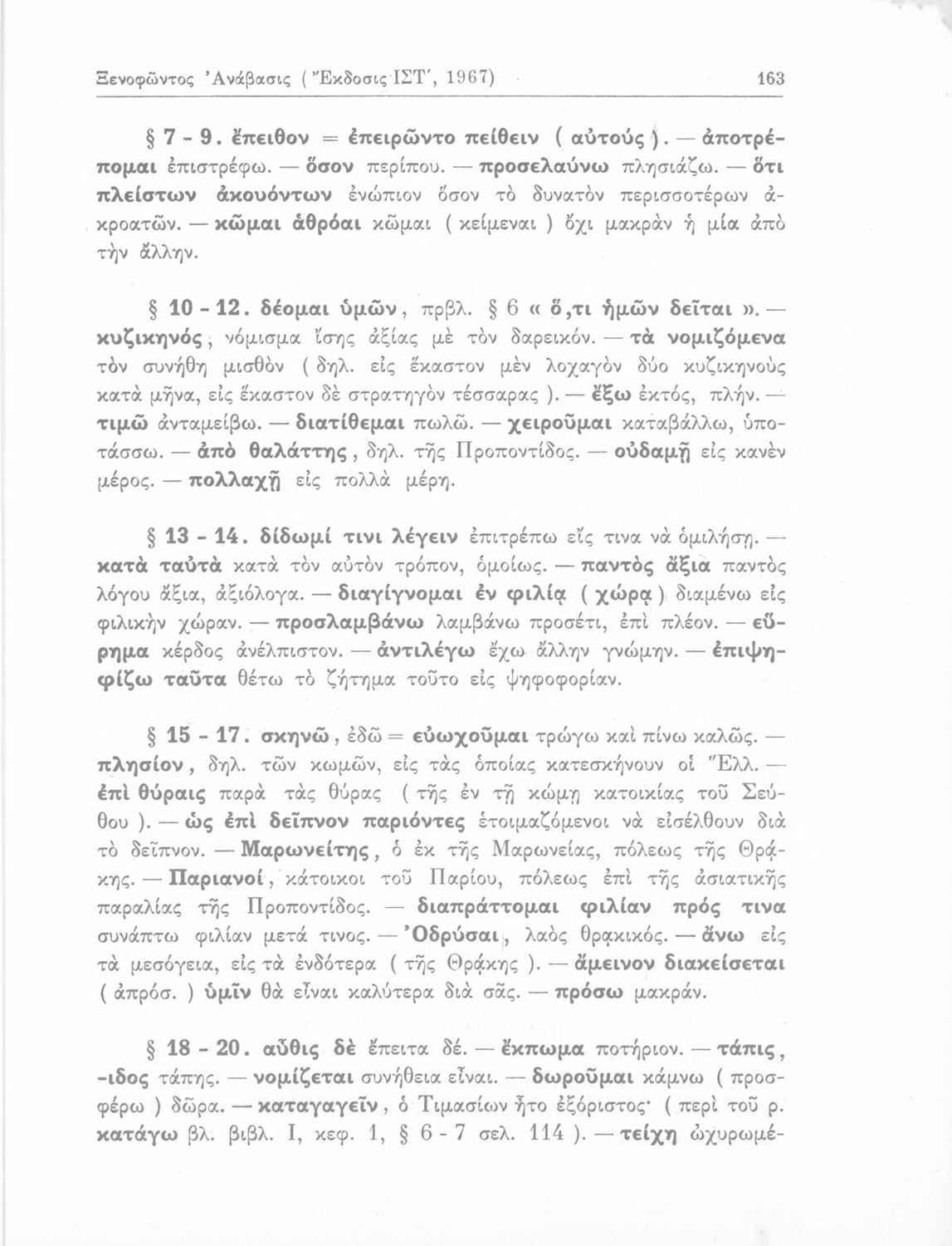 Σχολικό εγχειρίδιο Αρχαίων Ελληνικών για τη Β΄ Γυμνασίου με αποσπάσματα από το έργο του Ξενοφώντα. Το βιβλίο περιέχει ερμηνευτικές σημειώσεις και σχόλια.