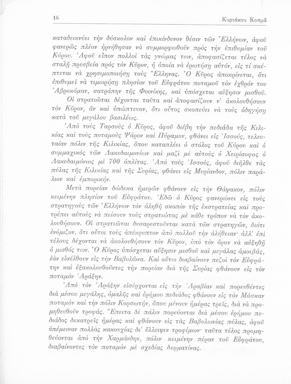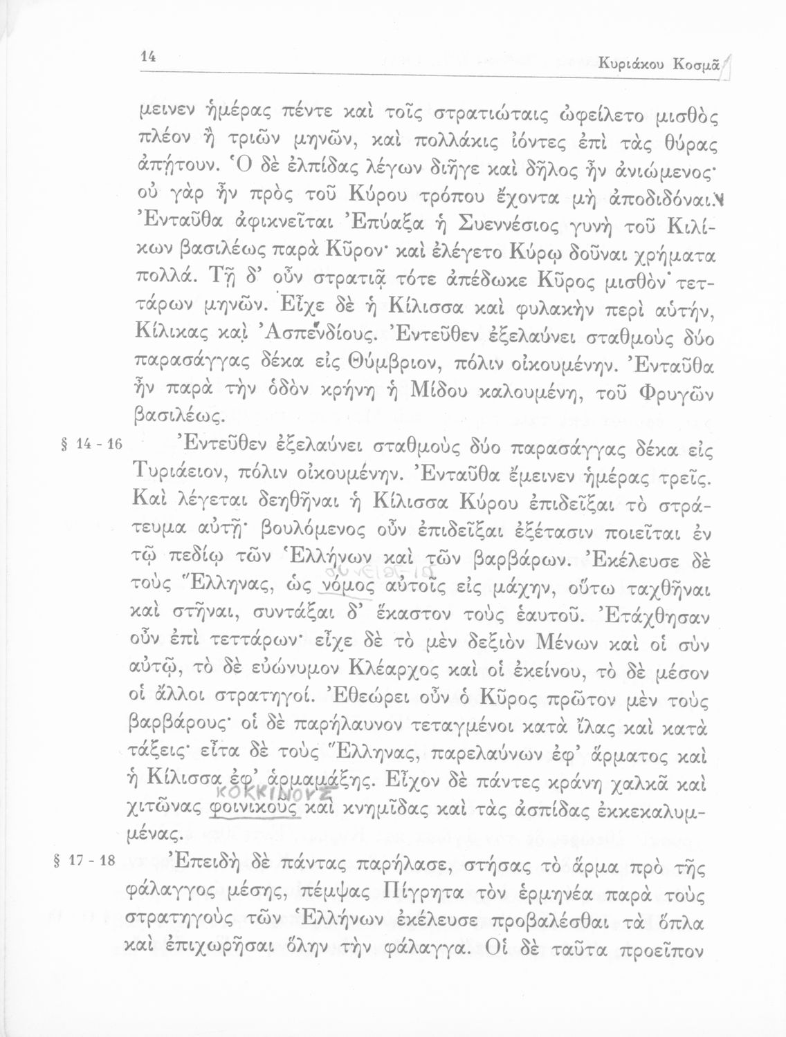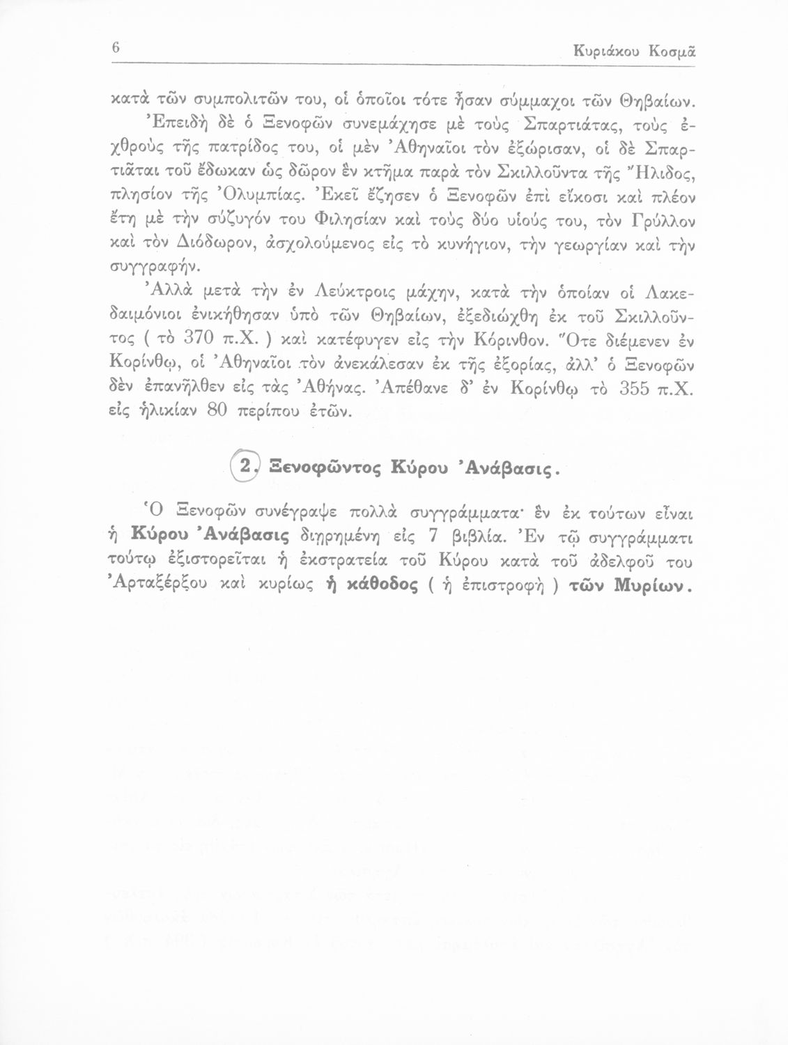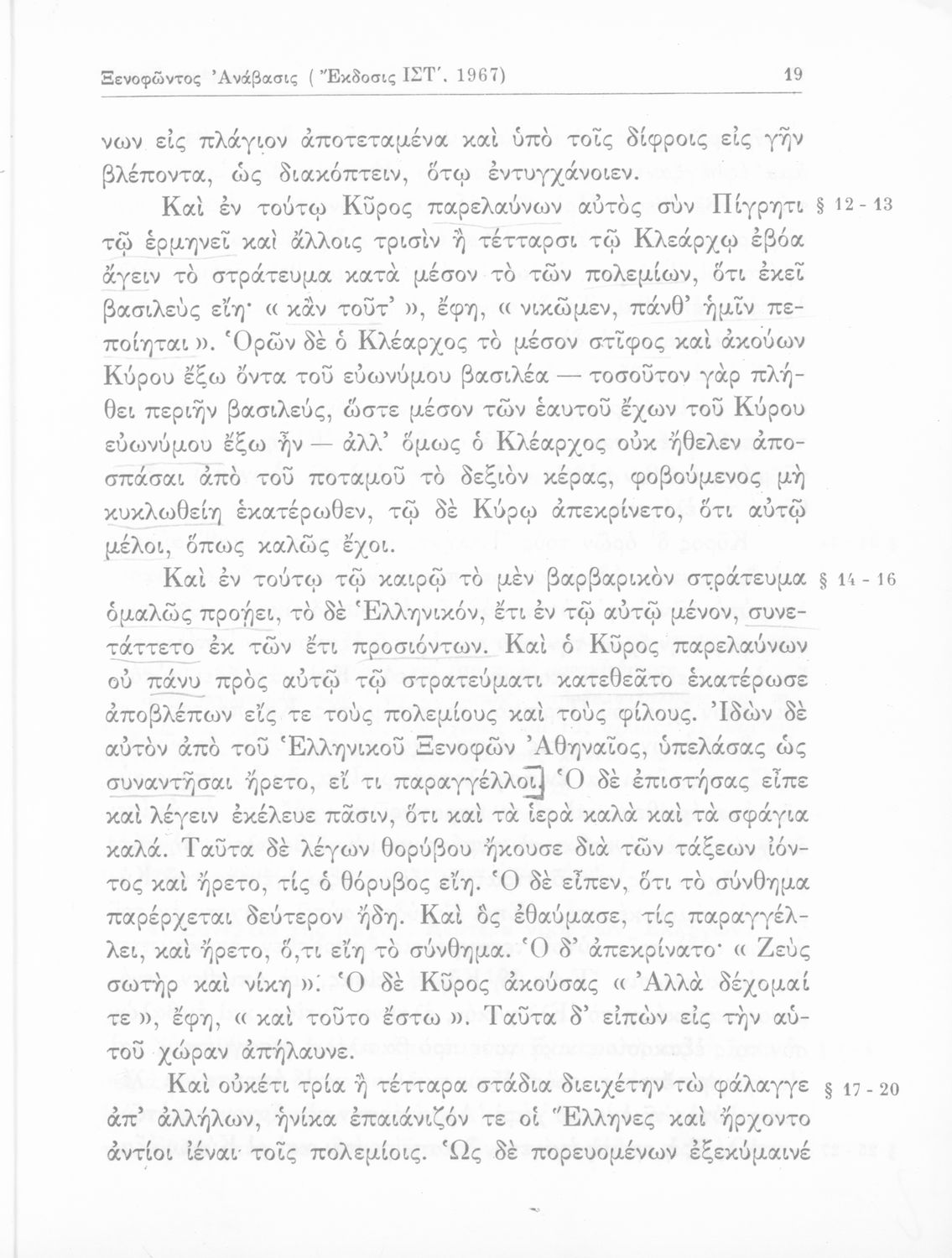 Σχολικό εγχειρίδιο Αρχαίων Ελληνικών Β΄ Γυμνασίου που περιλαμβάνει αποσπάσματα από το έργο του Ξενοφώντα Κύρου Ανάβασις, ερμηνευτικές σημειώσεις και πραγματολογικά σχόλια.