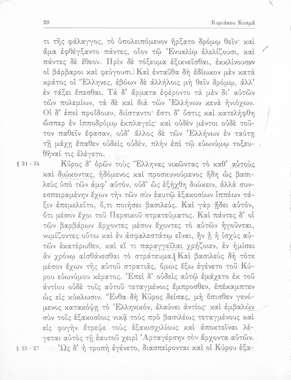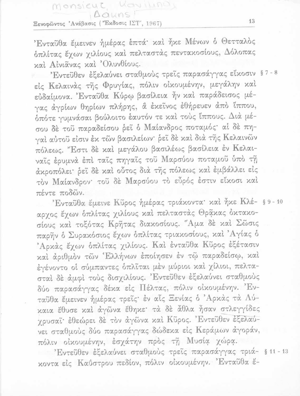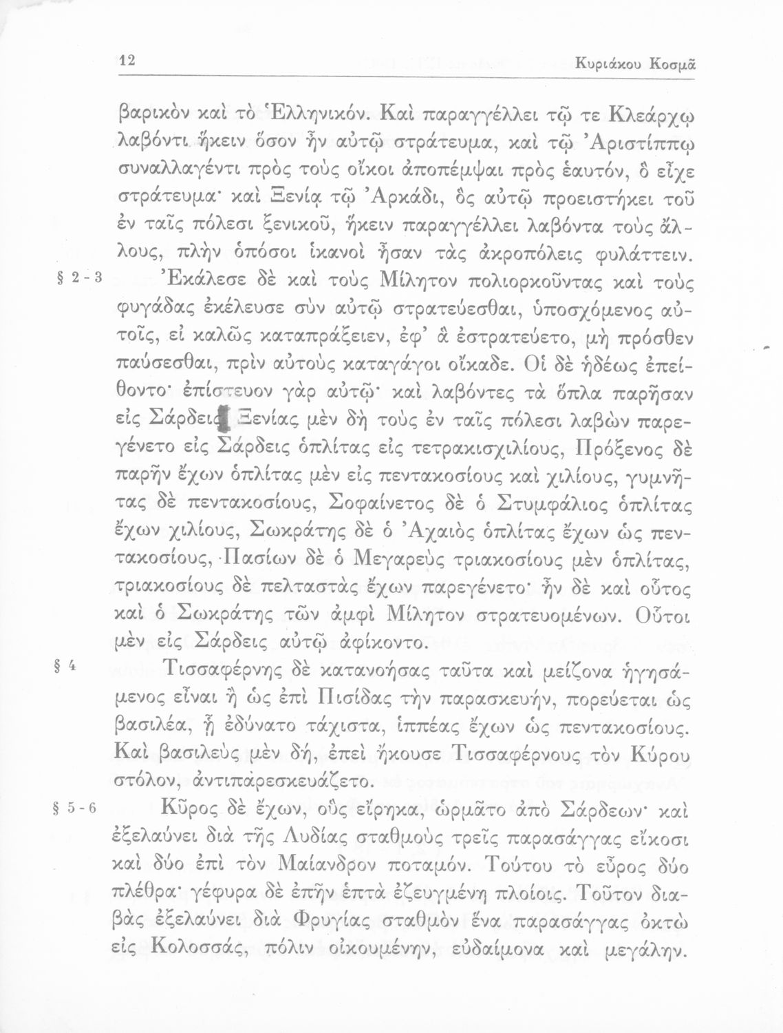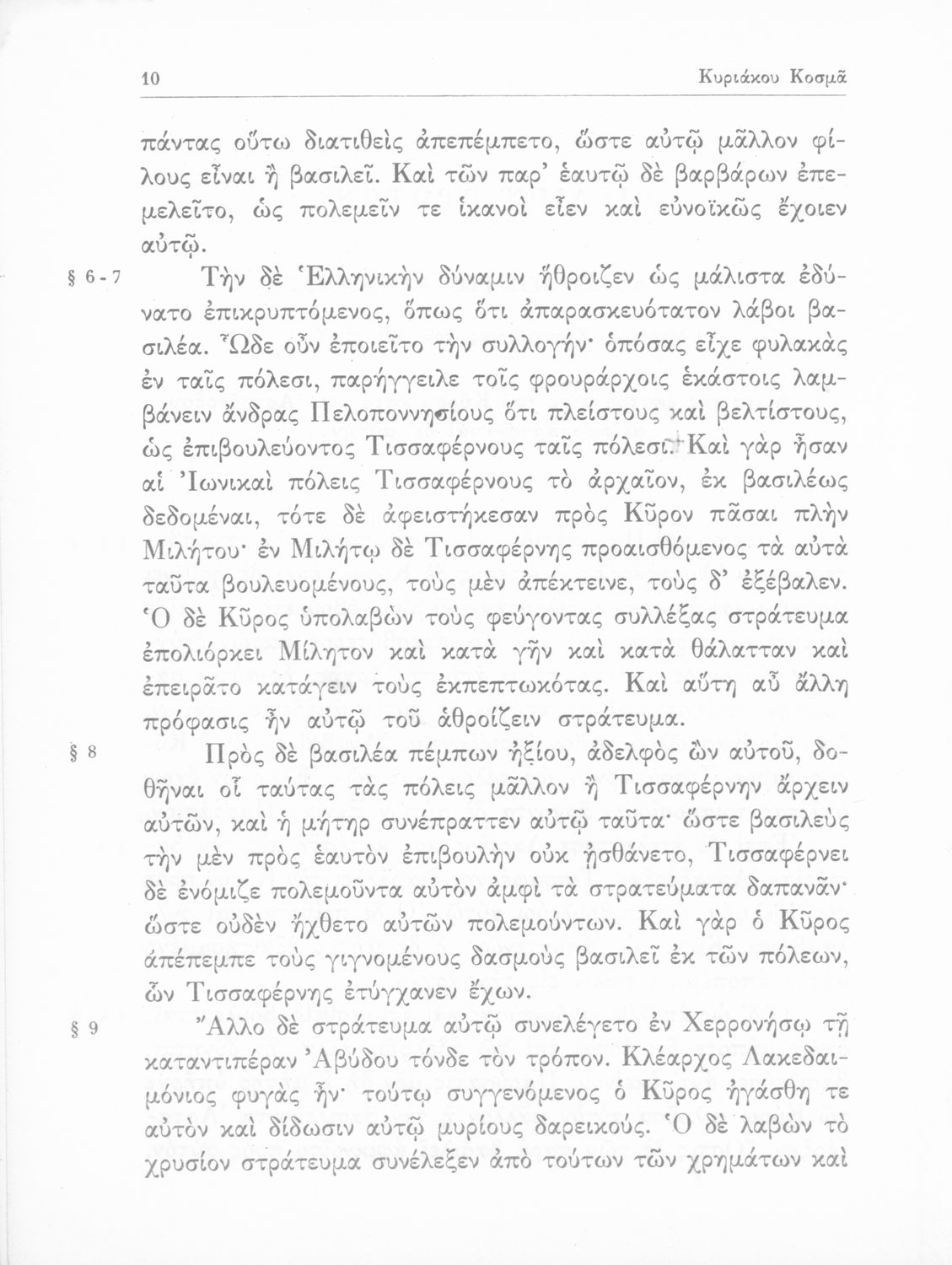 Σχολικό εγχειρίδιο Αρχαίων Ελληνικών Β΄ Γυμνασίου που περιλαμβάνει αποσπάσματα από το έργο του Ξενοφώντα Κύρου Ανάβασις, ερμηνευτικές σημειώσεις και πραγματολογικά σχόλια.