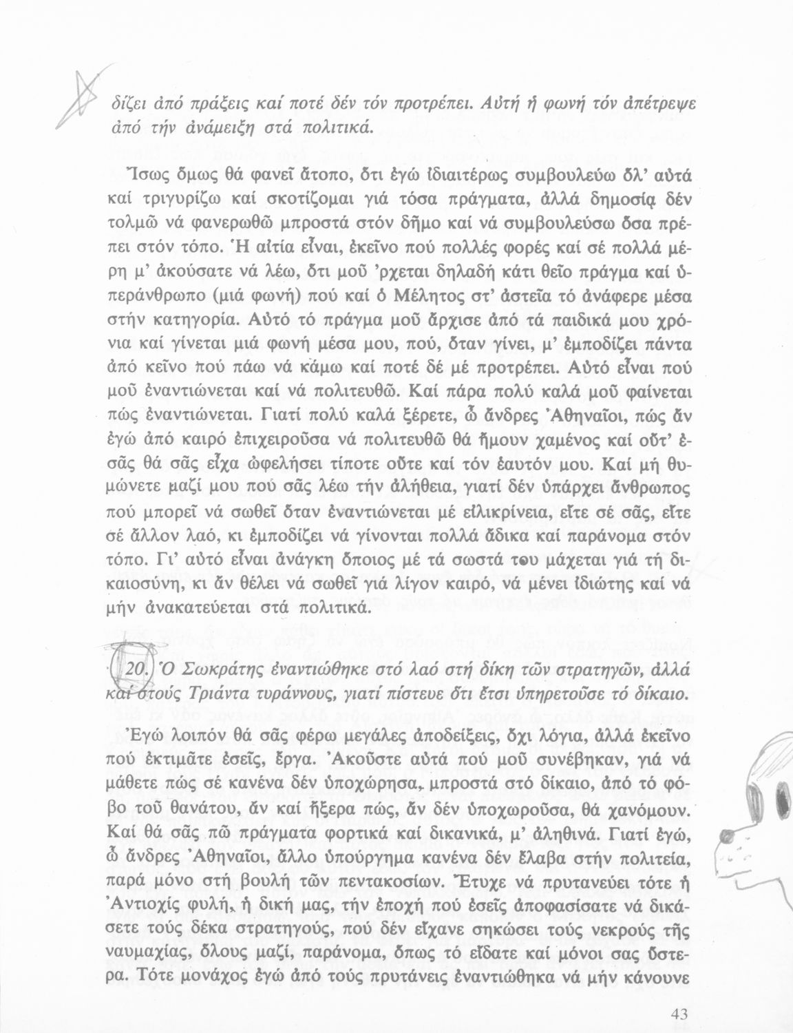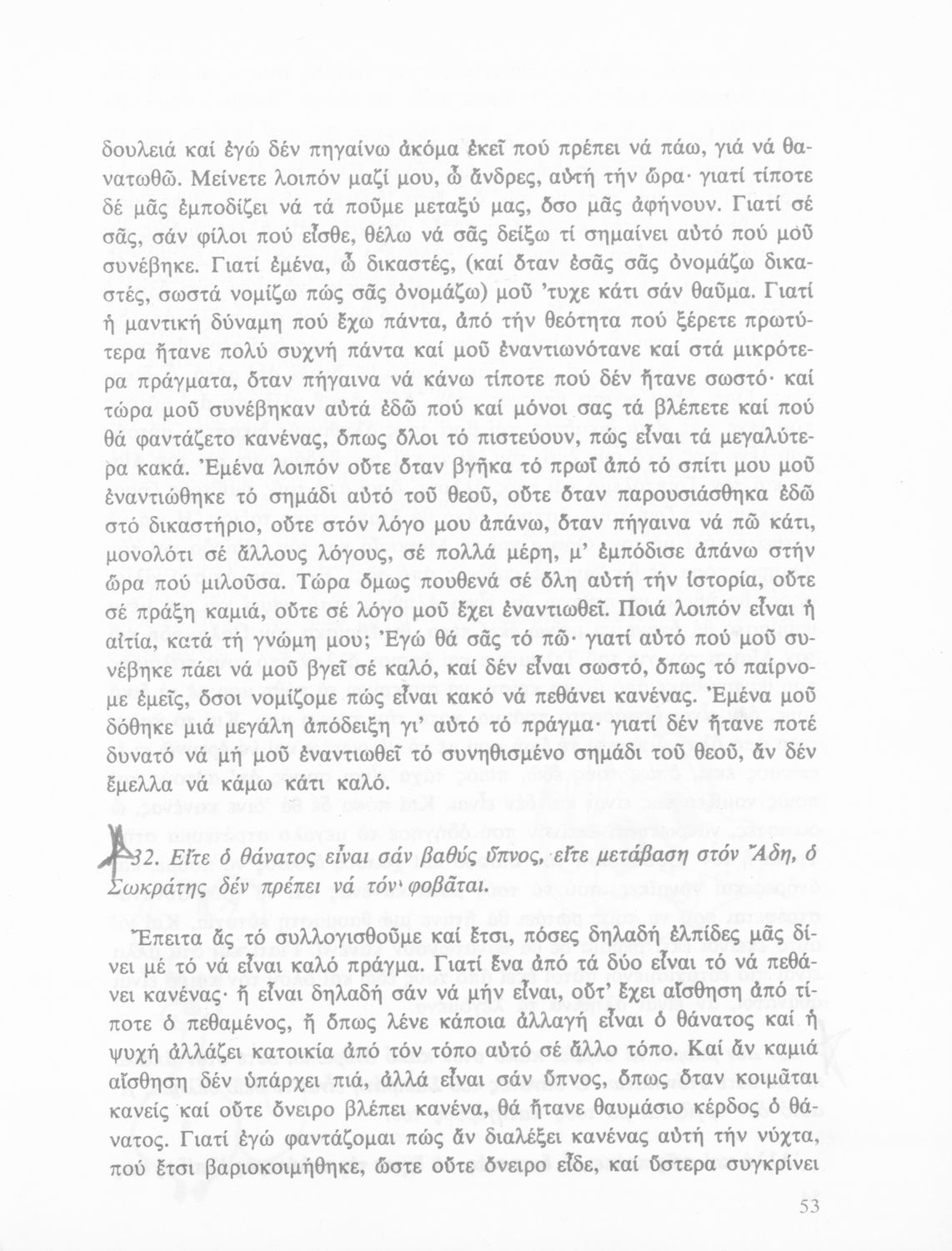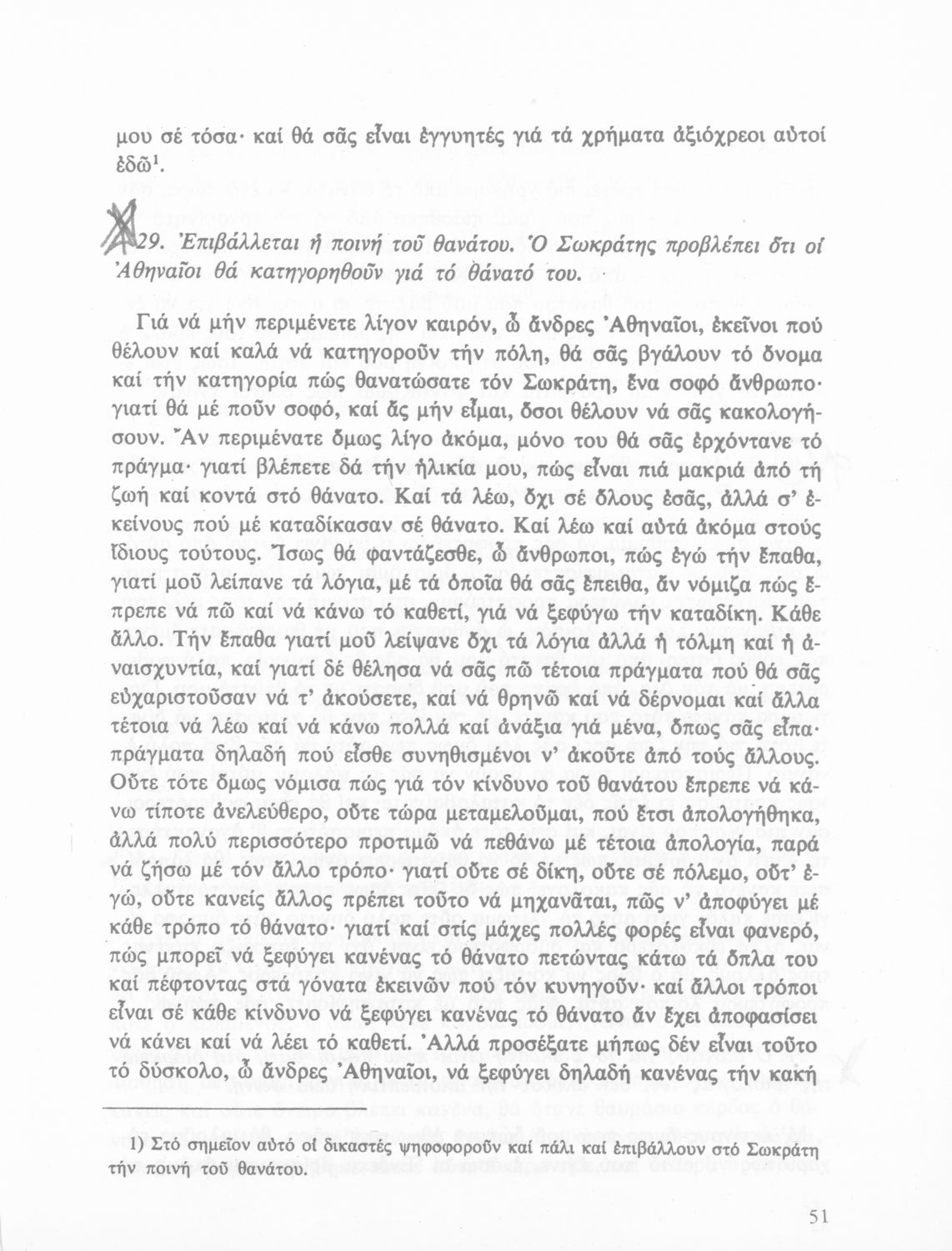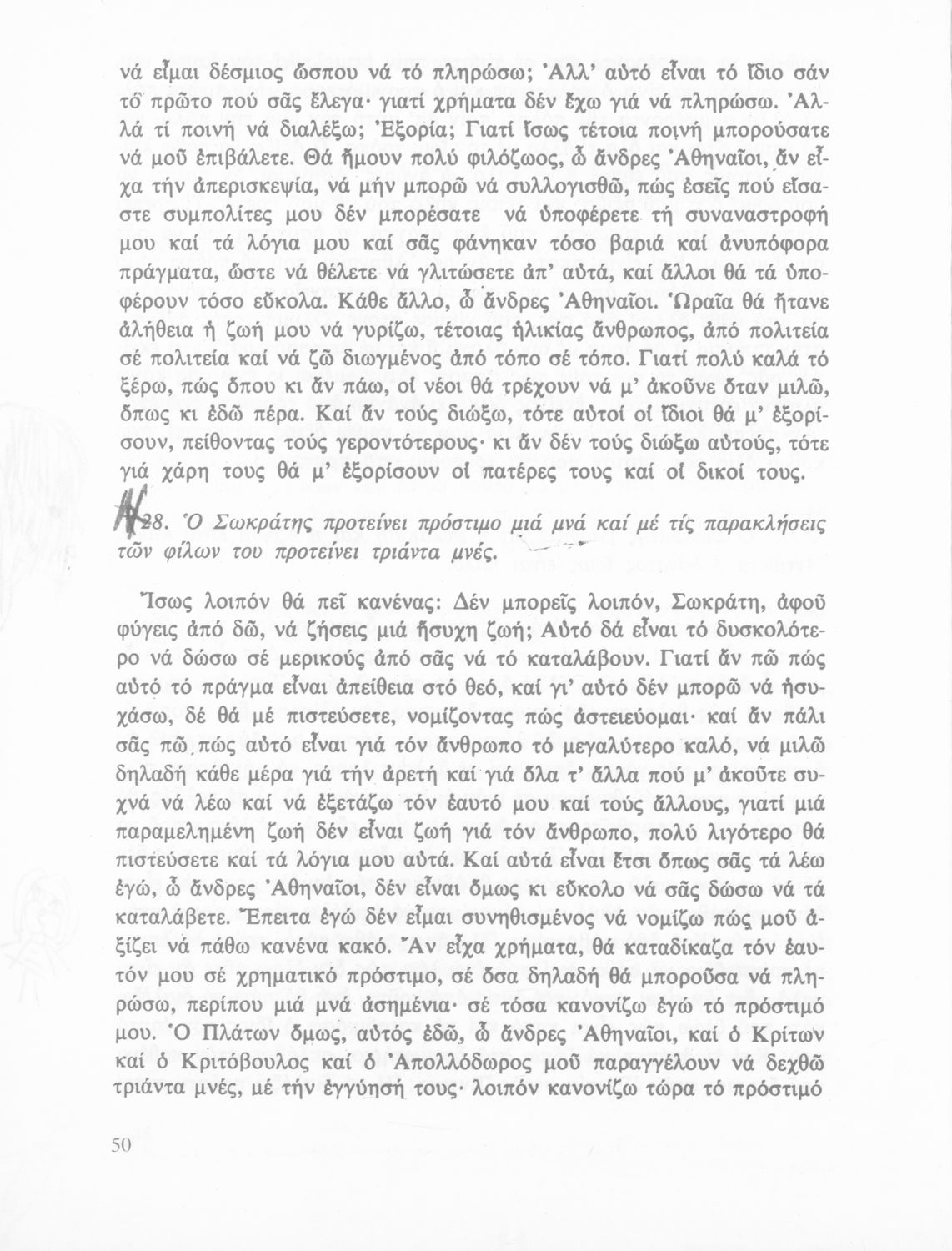 Σχολικό εγχειρίδιο Αρχαίων Ελληνικών Β΄ Λυκείου που περιλαμβάνει εισαγωγή στη ζωή και το έργο του Πλάτωνα, αναφορά στη ζωή και διδασκαλία του Σωκράτη, το έργο του Πλάτωνα Απολογία του Σωκράτη σε μετάφραση, ερμηνευτικές παρατηρήσεις και πραγματολογικά σχόλια . Η εισαγωγή, οι σημειώσεις και η ορθογραφική προσαρμογή έγιναν από τον κ. Ευάγγελο Σούλη, δ.φ., καθηγητή του Δ.Μ. Εκπαιδεύσεως.