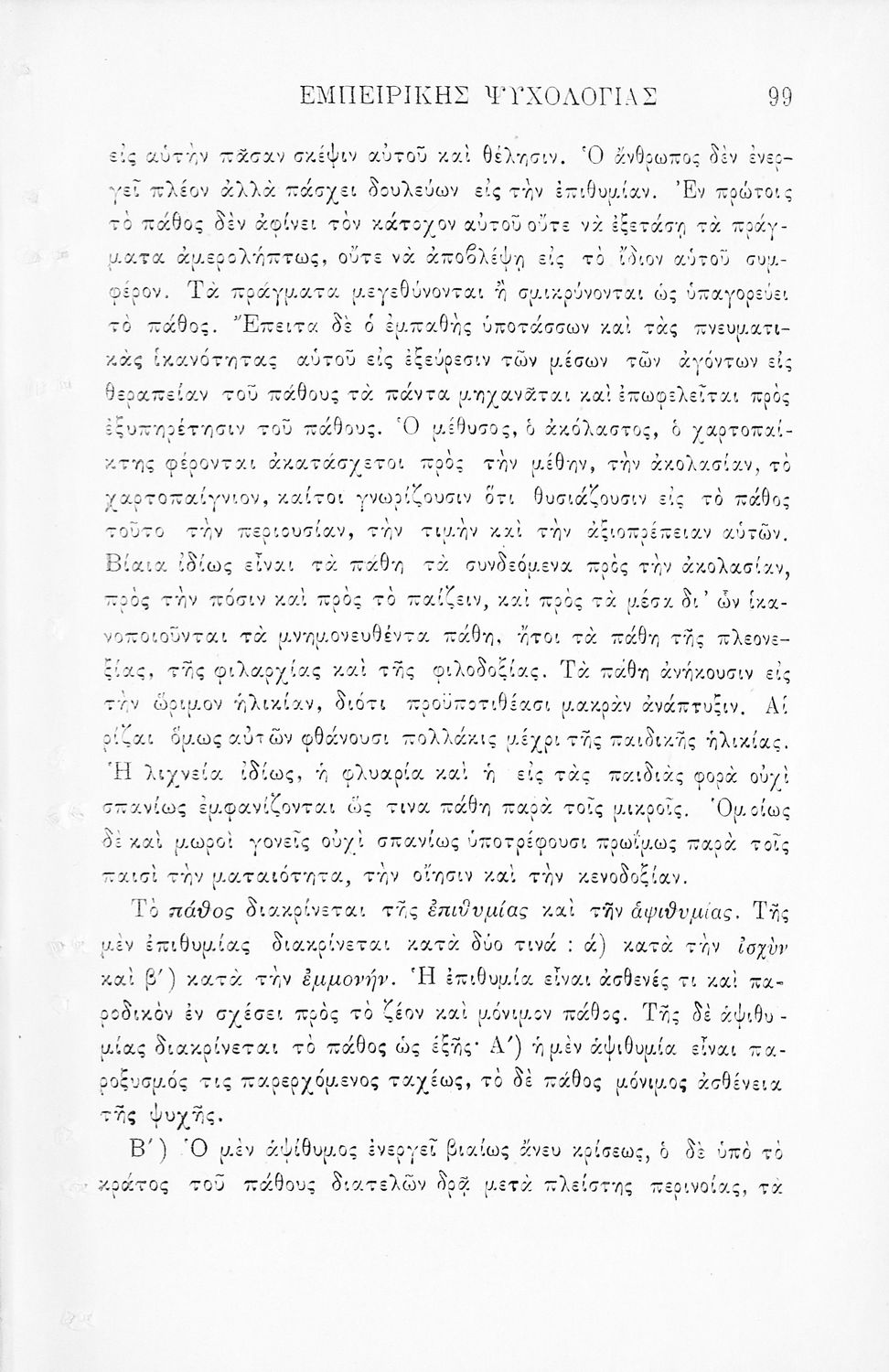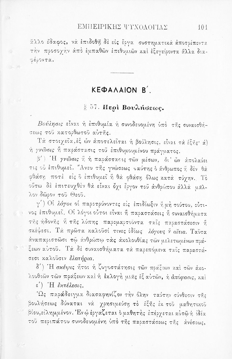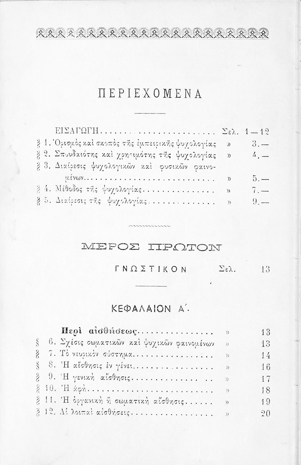 Σχολικό εγχειρίδιο Πειραματικής Ψυχολογίας για τη Γ΄ Γυμνασίου χωρισμένο σε τρία τμήματα: το παριστάναι, το συναισθάνεσθαι, και το βούλεσθαι.