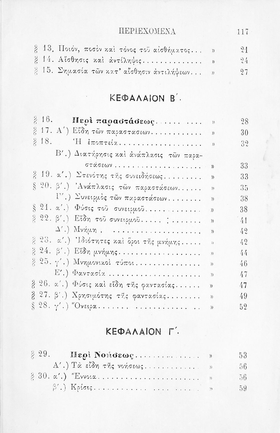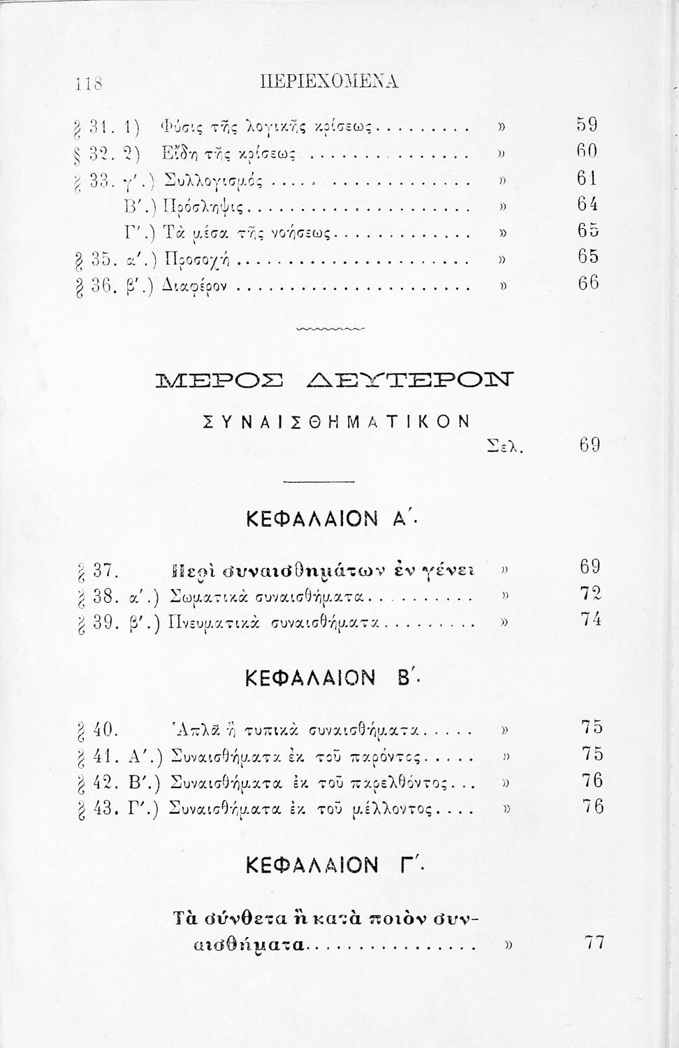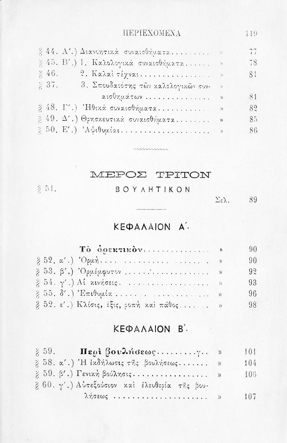 Σχολικό εγχειρίδιο Πειραματικής Ψυχολογίας για τη Γ΄ Γυμνασίου χωρισμένο σε τρία τμήματα: το παριστάναι, το συναισθάνεσθαι, και το βούλεσθαι.