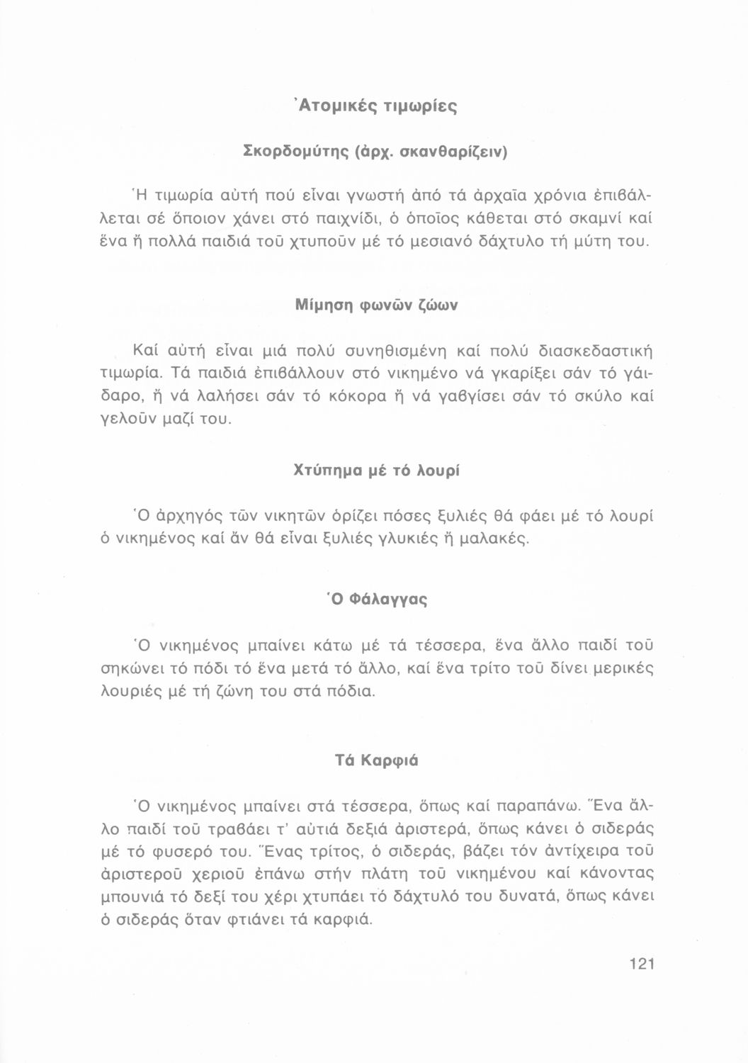 Εκπαιδευτικό βοήθημα για την Πρωτοβάθμια Εκπαίδευση. Το βιβλίο είναι μια συλλογή παραδοσιακών παιχνιδιών από όλη την Ελλάδα και τιμήθηκε με βραβείο από την Ακαδημία Αθηνών το 1978.