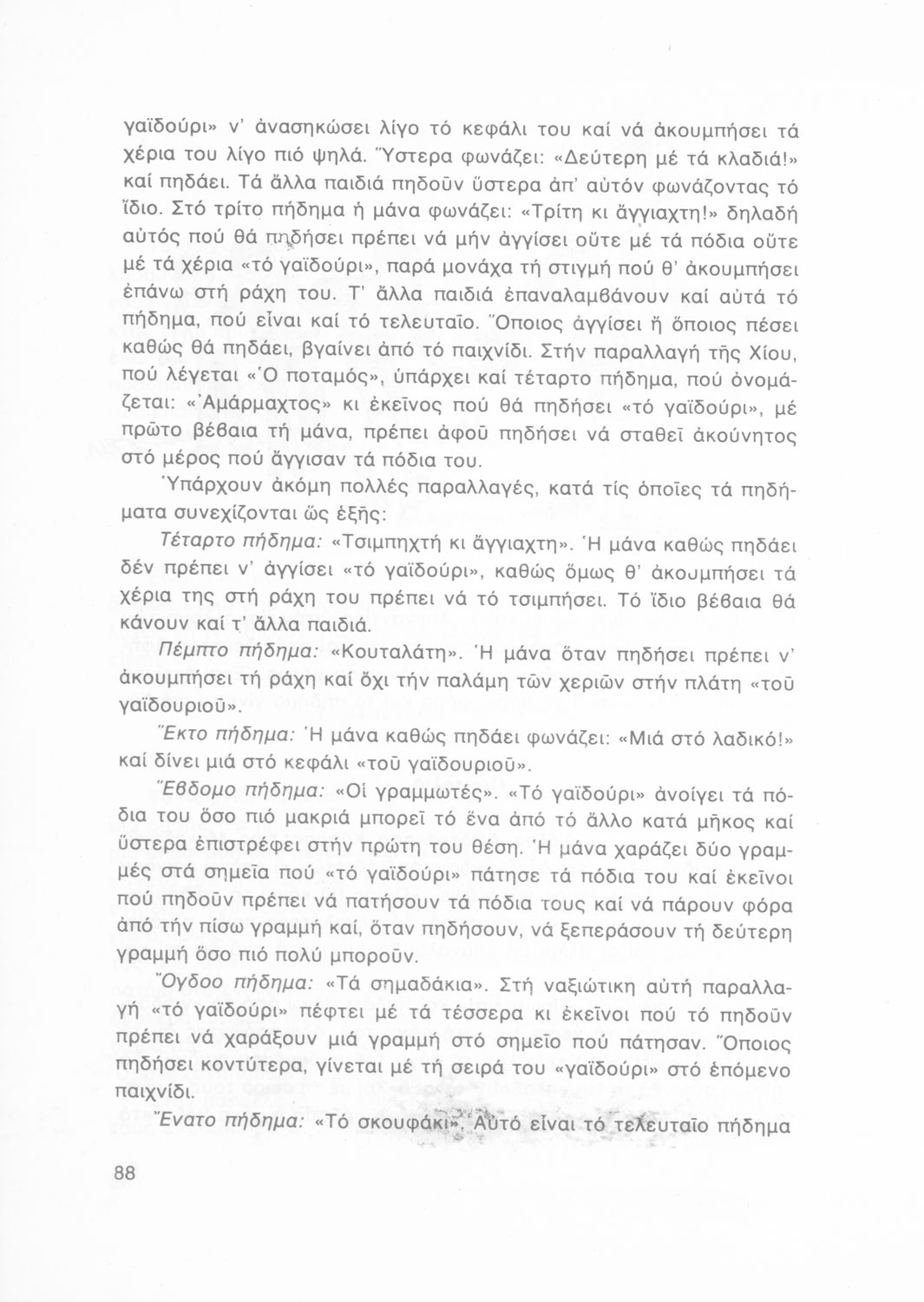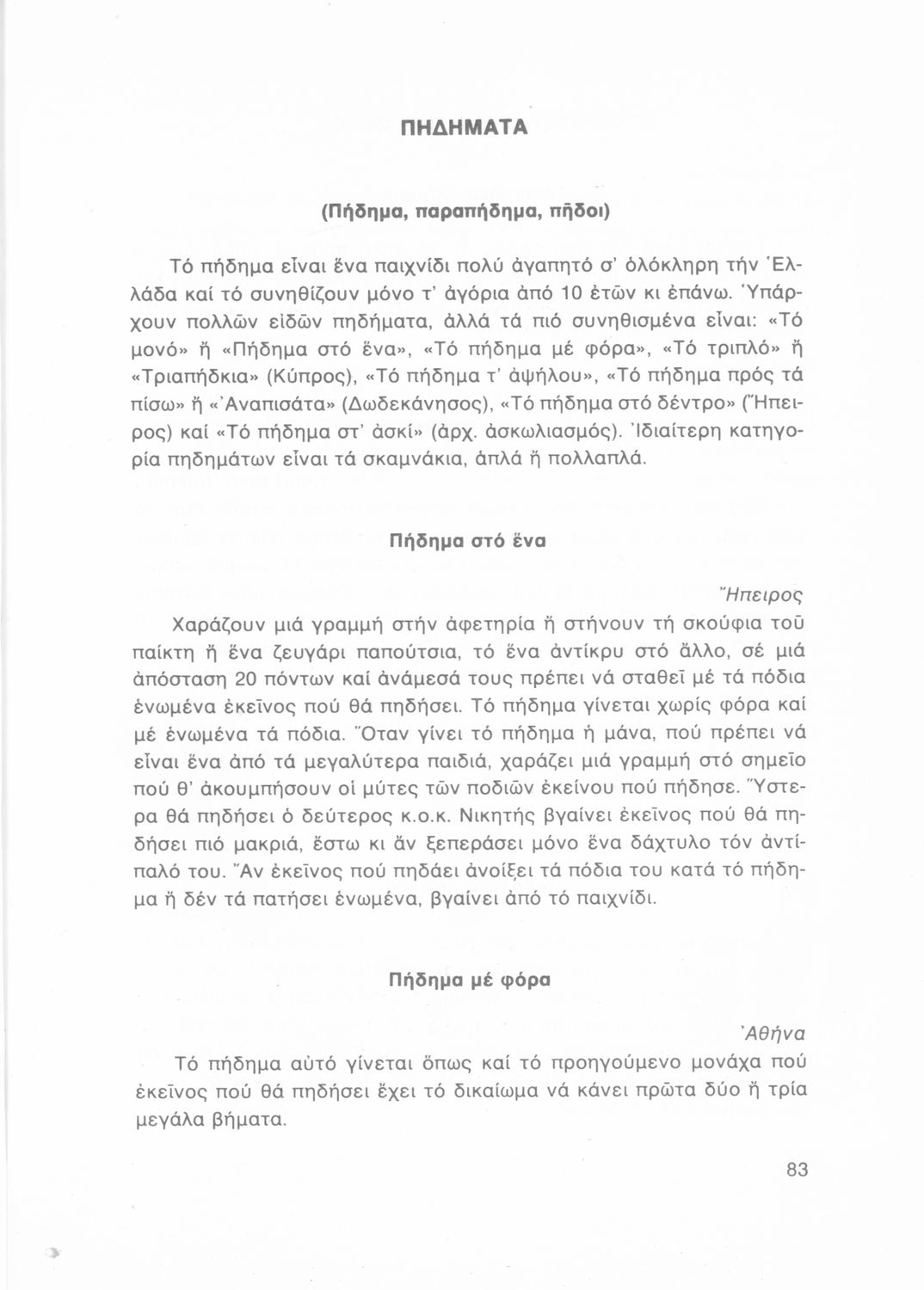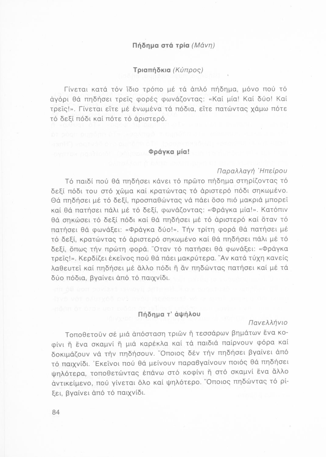 Εκπαιδευτικό βοήθημα για την Πρωτοβάθμια Εκπαίδευση. Το βιβλίο είναι μια συλλογή παραδοσιακών παιχνιδιών από όλη την Ελλάδα και τιμήθηκε με βραβείο από την Ακαδημία Αθηνών το 1978.