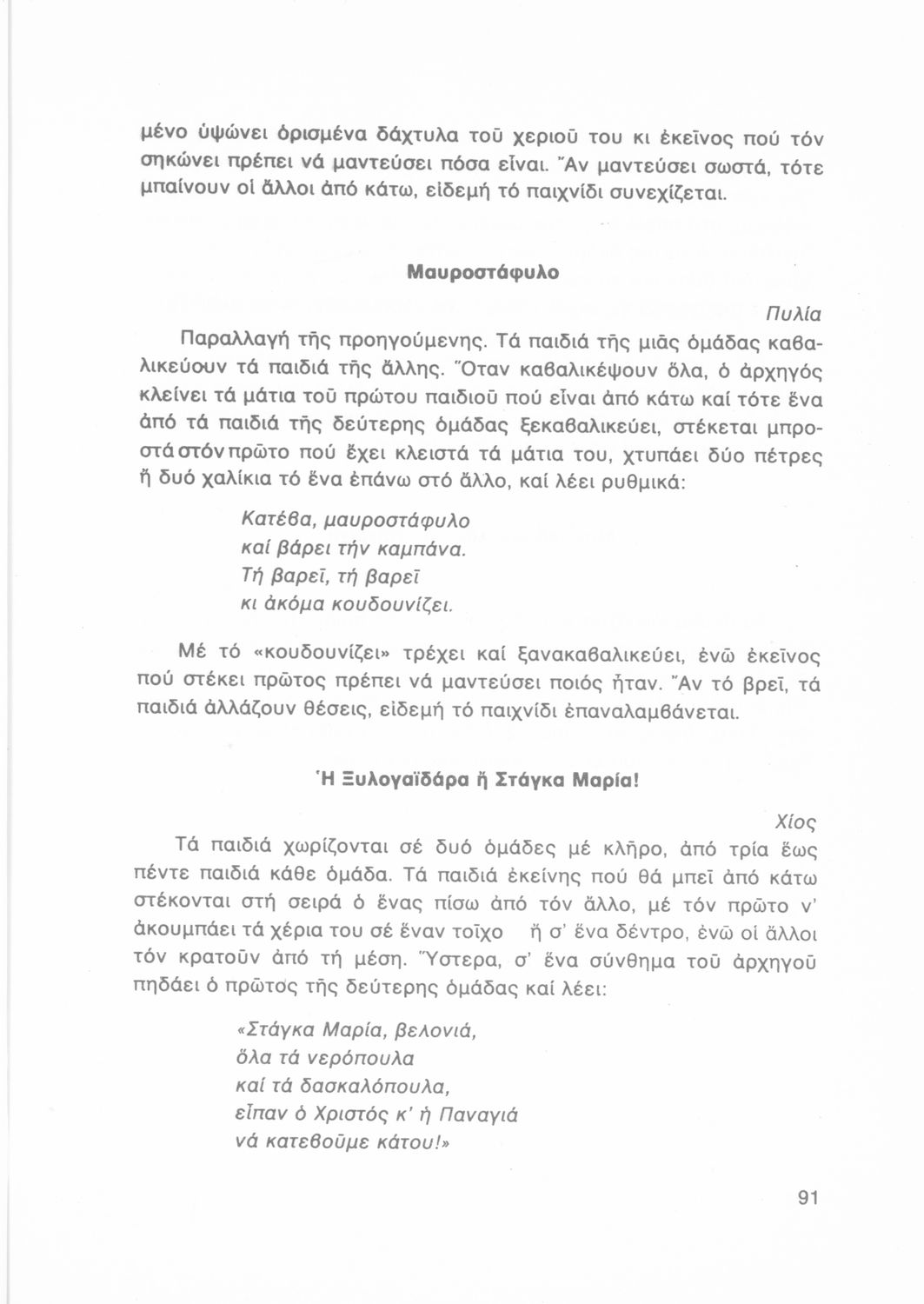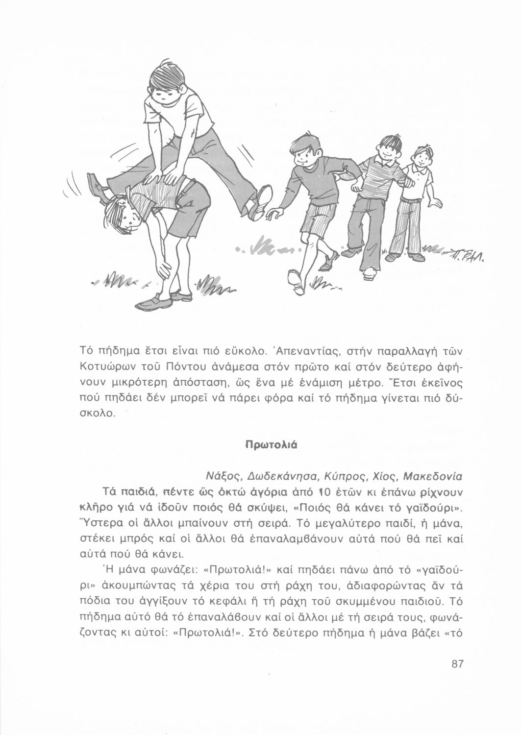 Παρουσίαση περιεχομένου: Εκπαιδευτικό βοήθημα για την Πρωτοβάθμια Εκπαίδευση. Το βιβλίο είναι μια συλλογή παραδοσιακών παιχνιδιών από όλη την Ελλάδα και τιμήθηκε με βραβείο από την Ακαδημία Αθηνών το 1978.