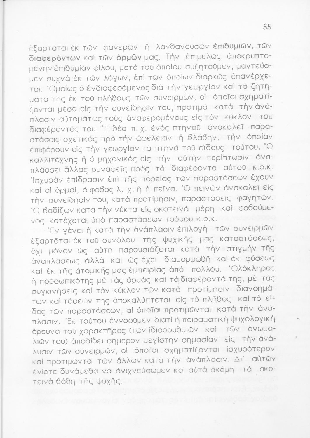Σχολικό εγχειρίδιο Ψυχολογίας για την Ε΄ Γυμνασίου χωρισμένο σε δύο τμήματα που μελετούν τα γνωστικά φαινόμενα και τα συναισθήματα. Περιέχει παράρτημα για τη φυσιολογική βάση των ψυχικών φαινομένων.