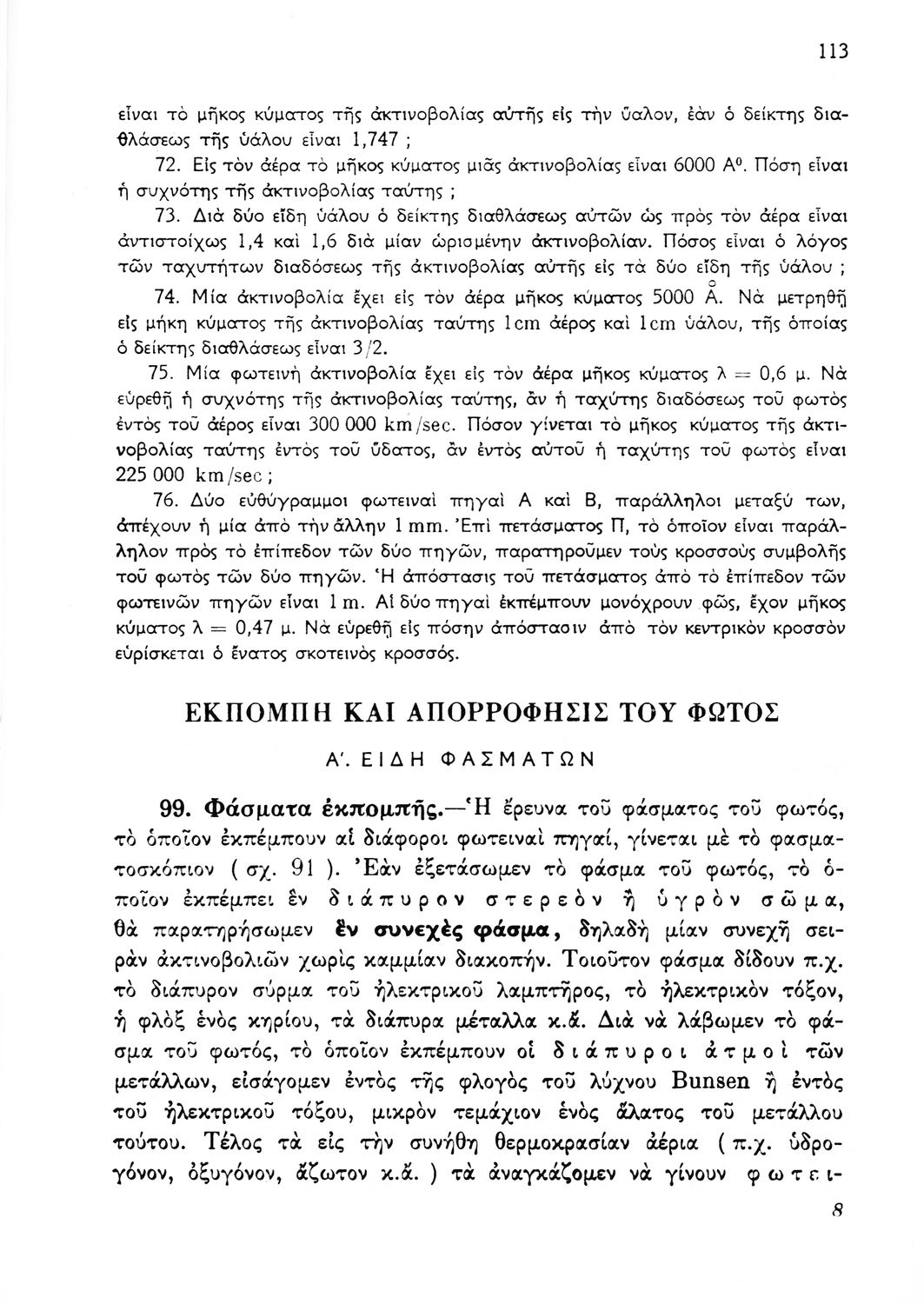 Βαθμίδα εκπαίδευσης: Δευτεροβάθμια Τάξη: Ε' Γυμνασίου / ΣΤ' Γυμνασίου Μάθημα: Φυσική Γλώσσα: Καθαρεύουσα Παρουσίαση περιεχομένου: Σχολικό εγχειρίδιο Φυσικής Πειραματικής Ε΄ και ΣΤ΄ Γυμνασίου που εστιάζει στα φυσικά φαινόμενα της οπτικής, του μαγνητισμού, του ηλεκτρισμού, και της πυρηνικής φυσικής. Φέρει το σύμβολο της δικτατορίας. |