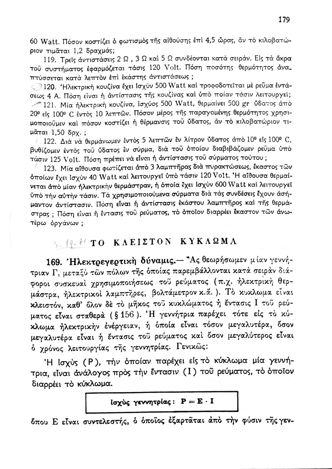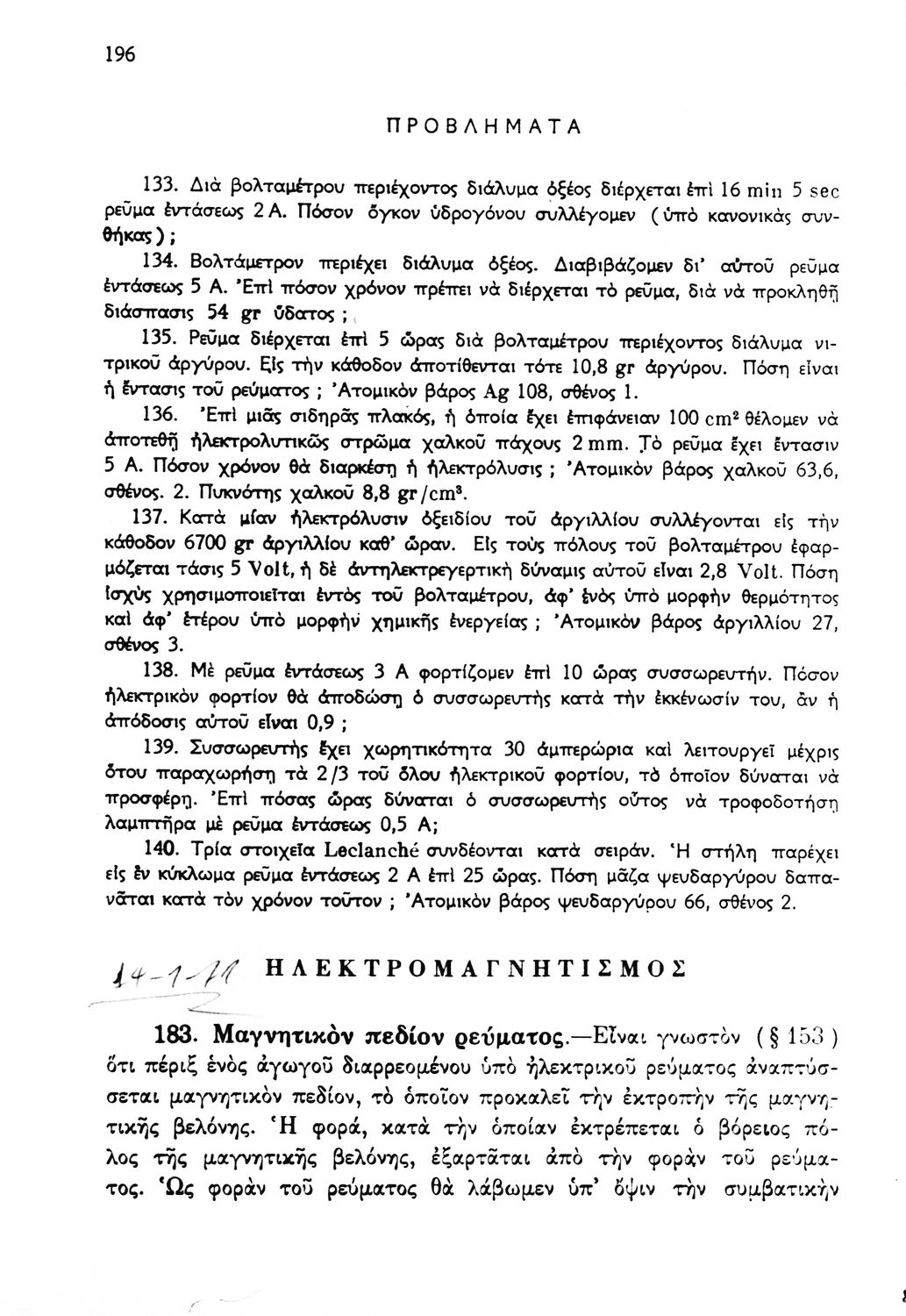 Βαθμίδα εκπαίδευσης: Δευτεροβάθμια Τάξη: Ε' Γυμνασίου / ΣΤ' Γυμνασίου Μάθημα: Φυσική Γλώσσα: Καθαρεύουσα Παρουσίαση περιεχομένου: Σχολικό εγχειρίδιο Φυσικής Πειραματικής Ε΄ και ΣΤ΄ Γυμνασίου που εστιάζει στα φυσικά φαινόμενα της οπτικής, του μαγνητισμού, του ηλεκτρισμού, και της πυρηνικής φυσικής. Φέρει το σύμβολο της δικτατορίας. |
