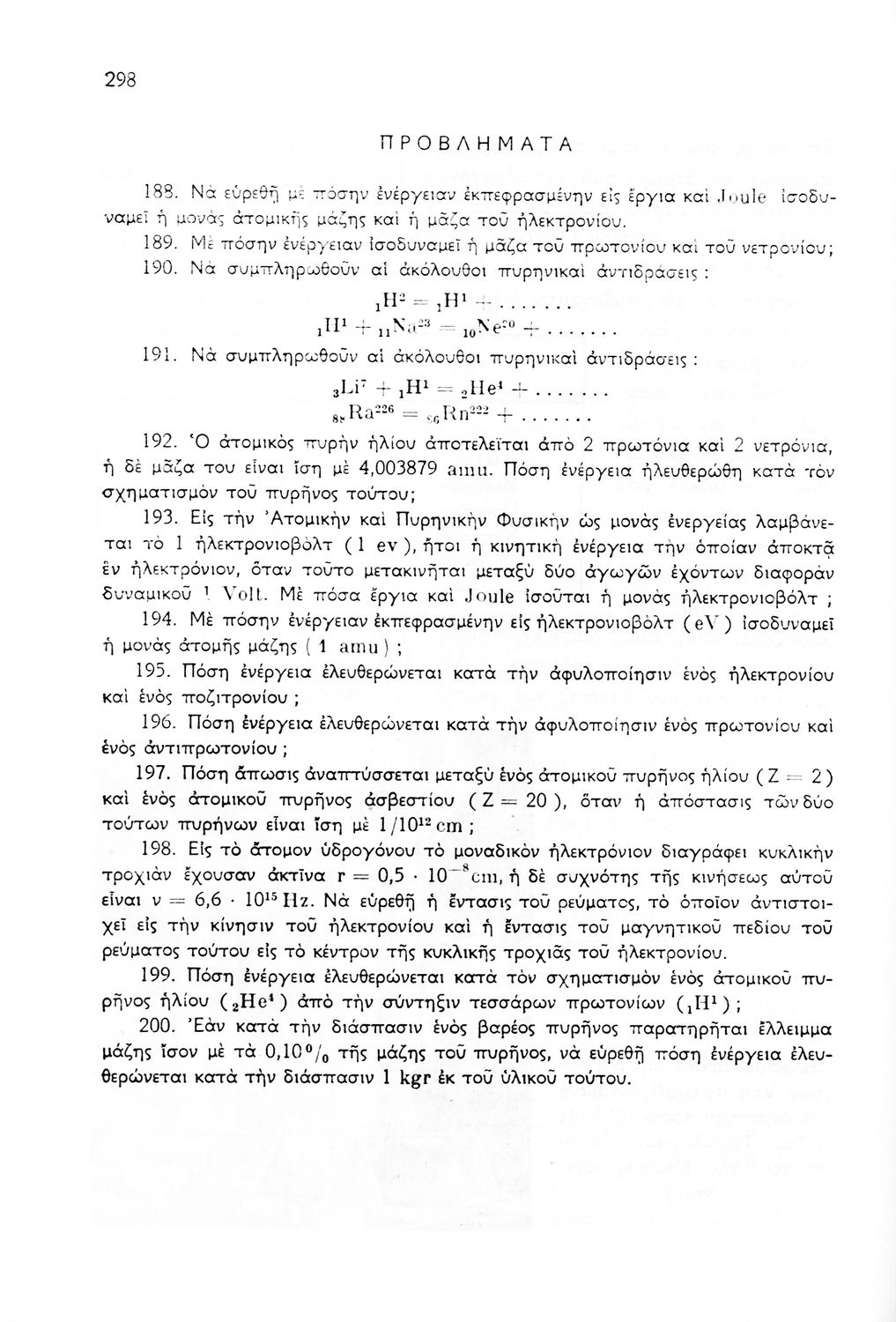 Βαθμίδα εκπαίδευσης: Δευτεροβάθμια Τάξη: Ε' Γυμνασίου / ΣΤ' Γυμνασίου Μάθημα: Φυσική Γλώσσα: Καθαρεύουσα Παρουσίαση περιεχομένου: Σχολικό εγχειρίδιο Φυσικής Πειραματικής Ε΄ και ΣΤ΄ Γυμνασίου που εστιάζει στα φυσικά φαινόμενα της οπτικής, του μαγνητισμού, του ηλεκτρισμού, και της πυρηνικής φυσικής. Φέρει το σύμβολο της δικτατορίας. |